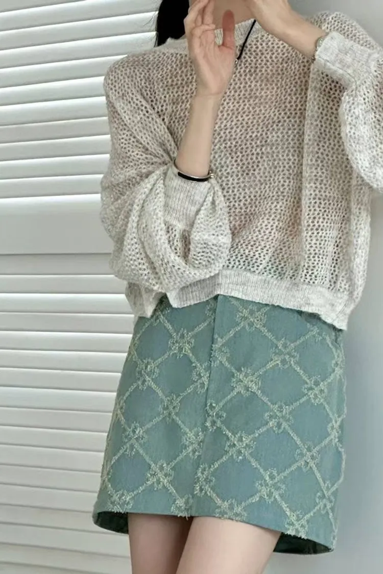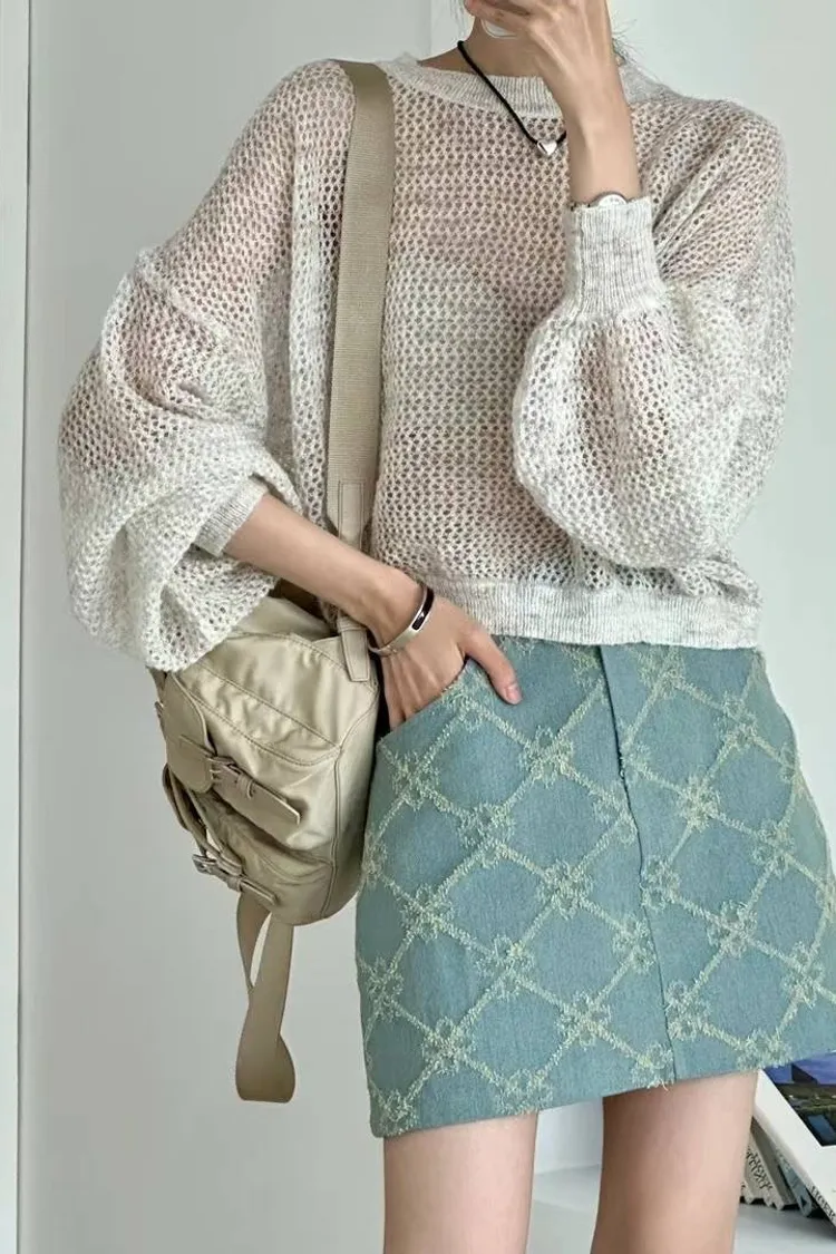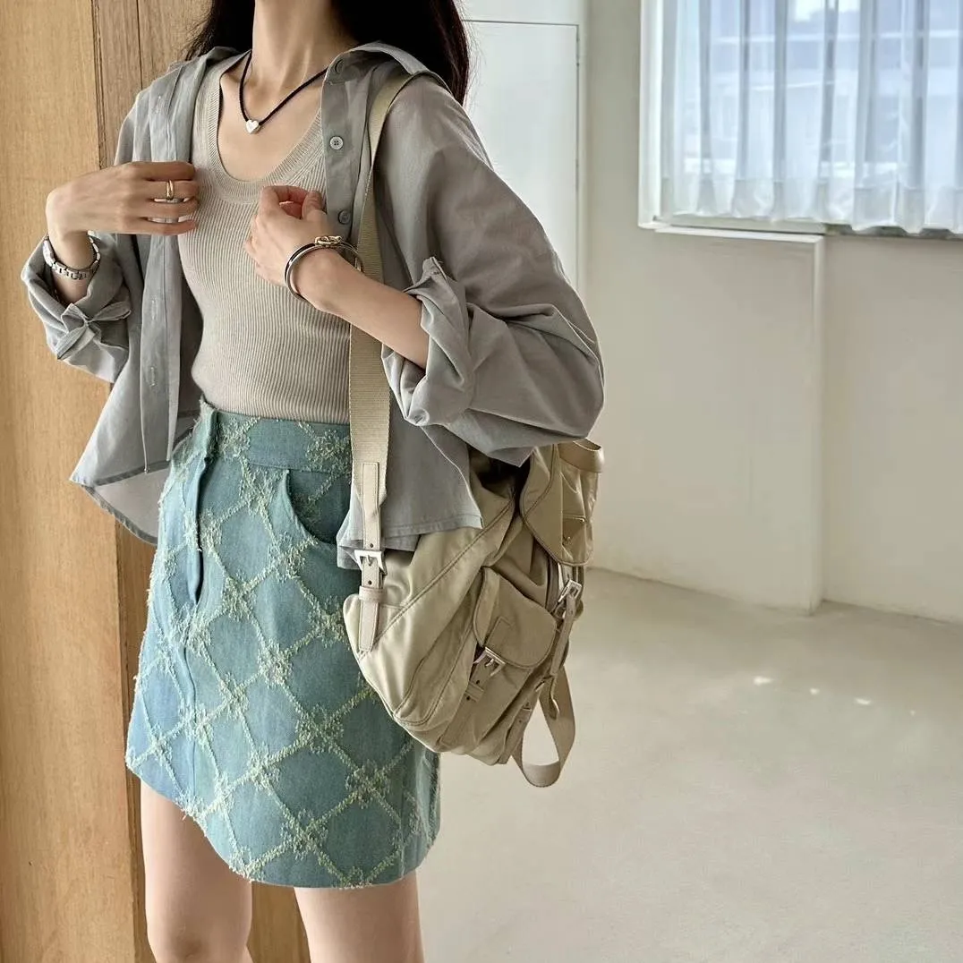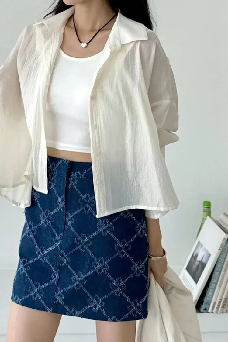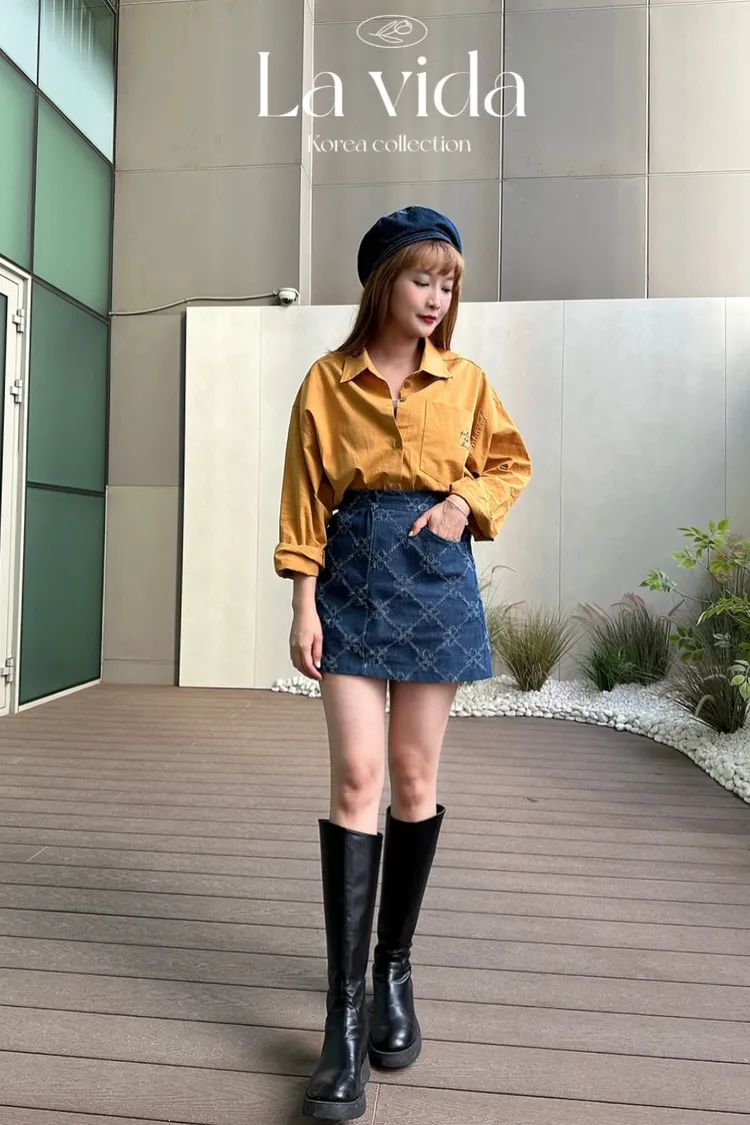 CS721極軟薄款牛仔棉花朵菱格短裙 淺藍 深藍 線上價$740 官網價$770