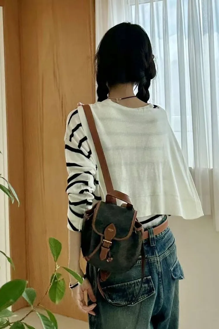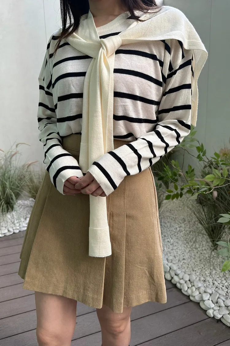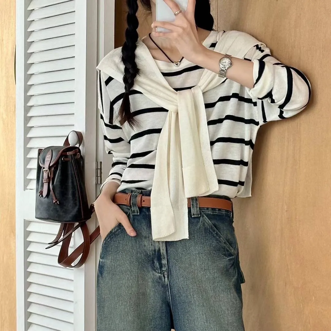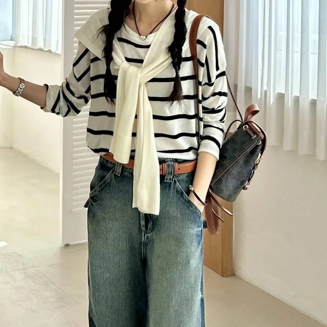 CS722超舒服披肩條紋薄款休閒套裝(上衣+披肩) 白 黑 線上價$720 官網價$750