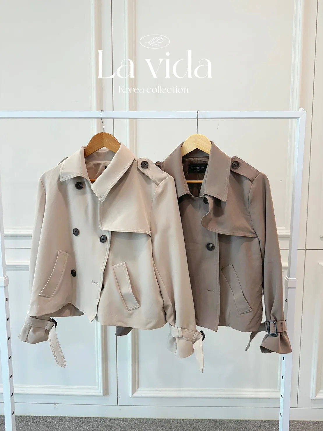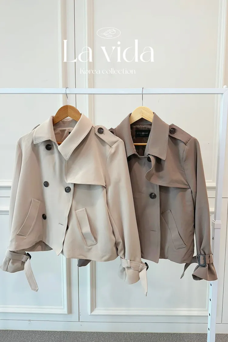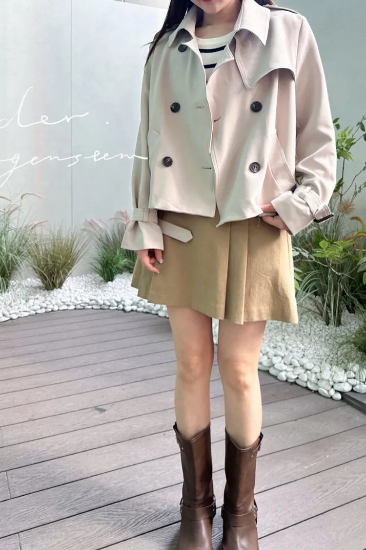 CS724雙排釦短版風衣外套 米 咖 黑 線上價$1290 官網價$1320