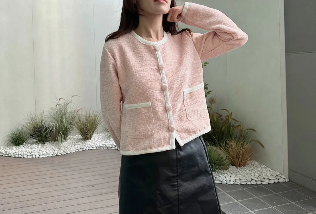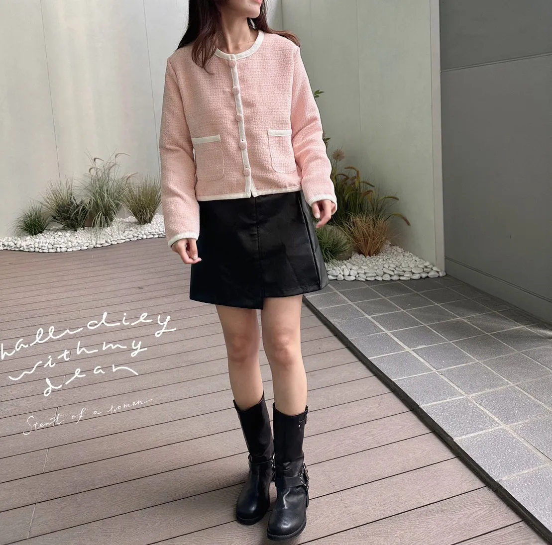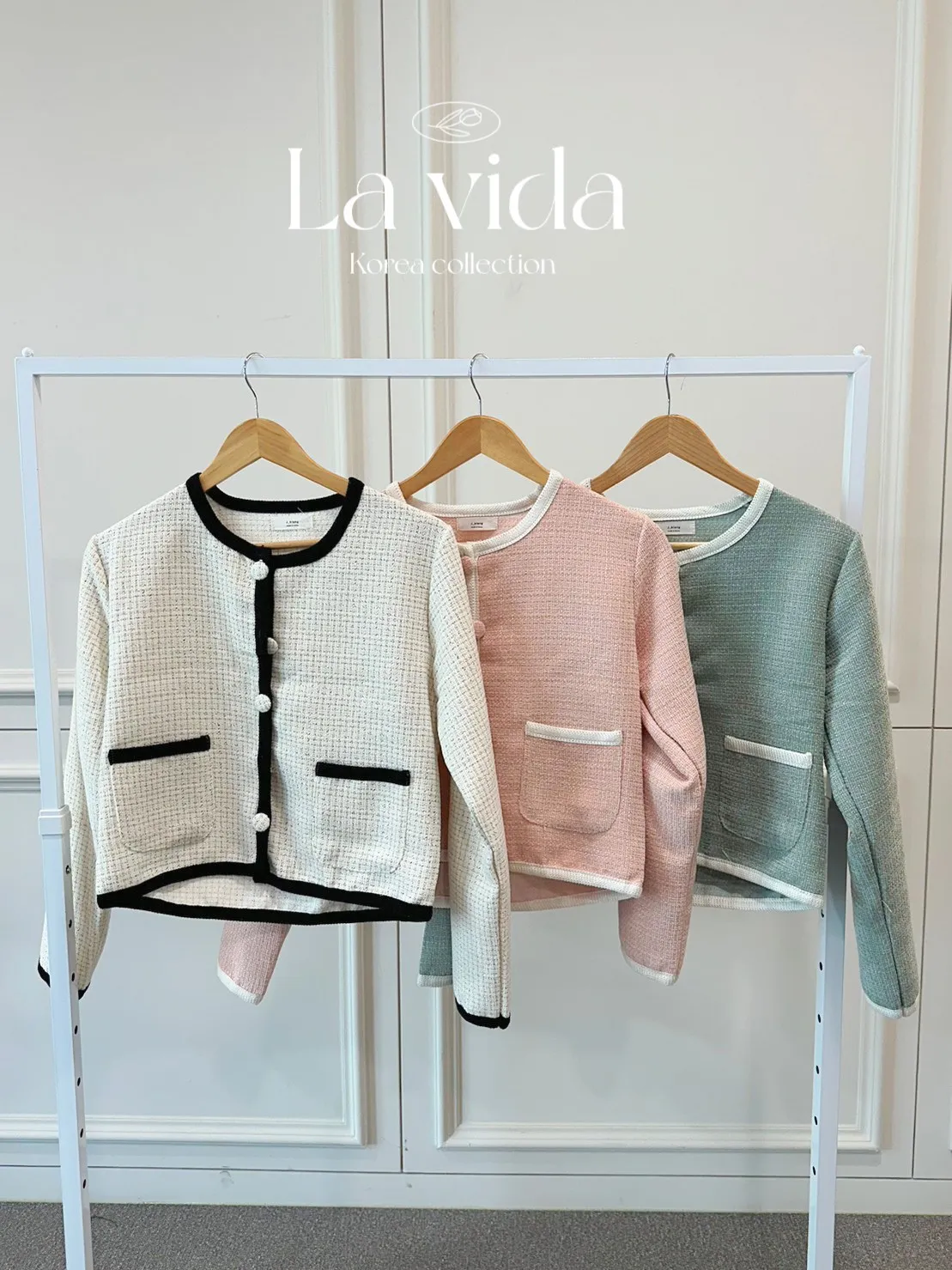 CS727薄款小香風雙口袋外套(j blang) 白 綠 粉 線上價$690 官網價$720