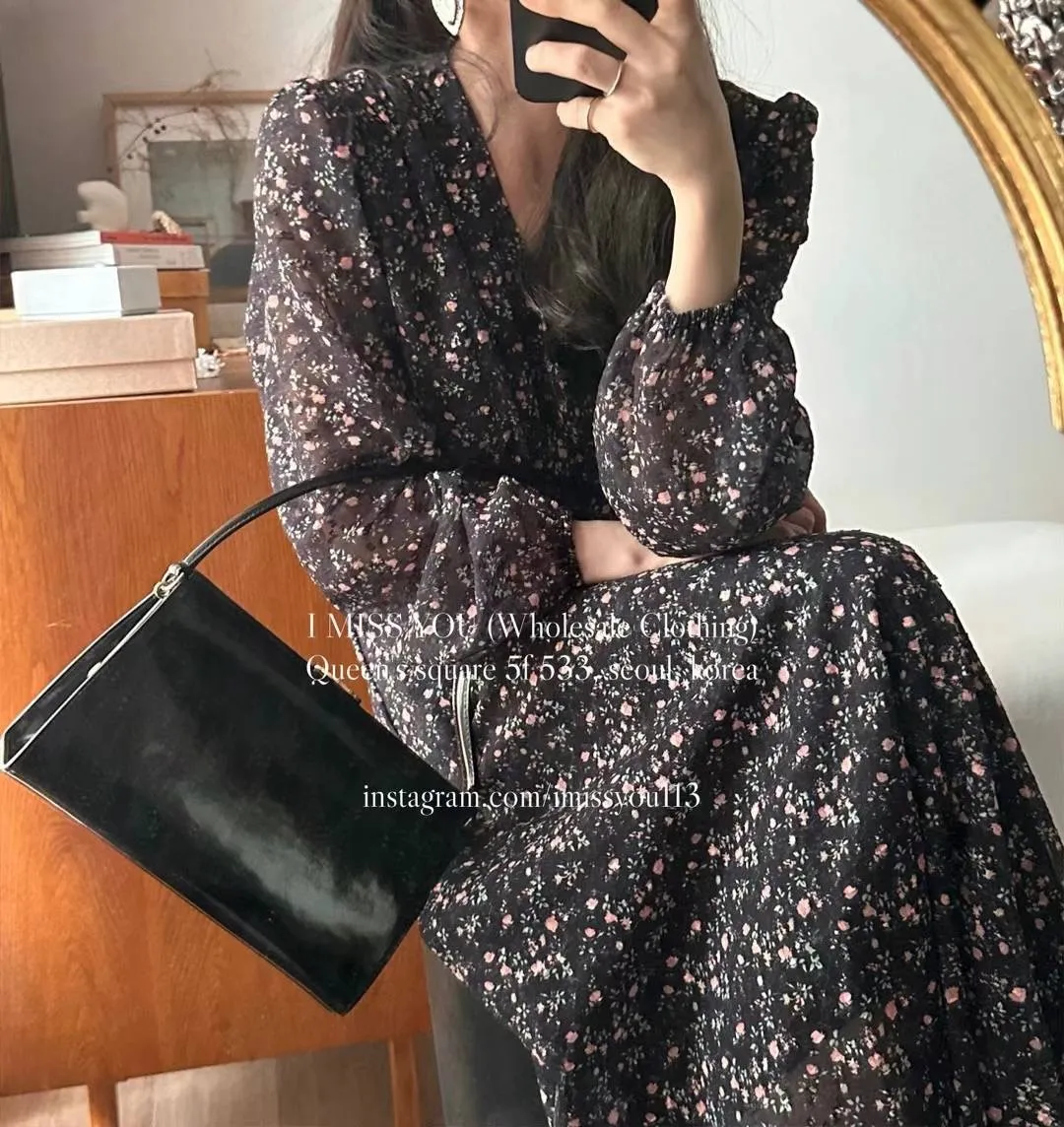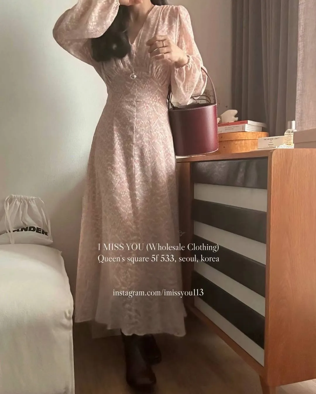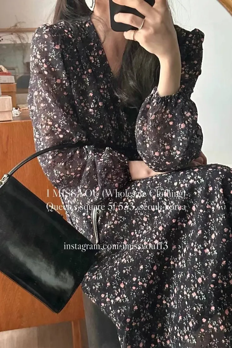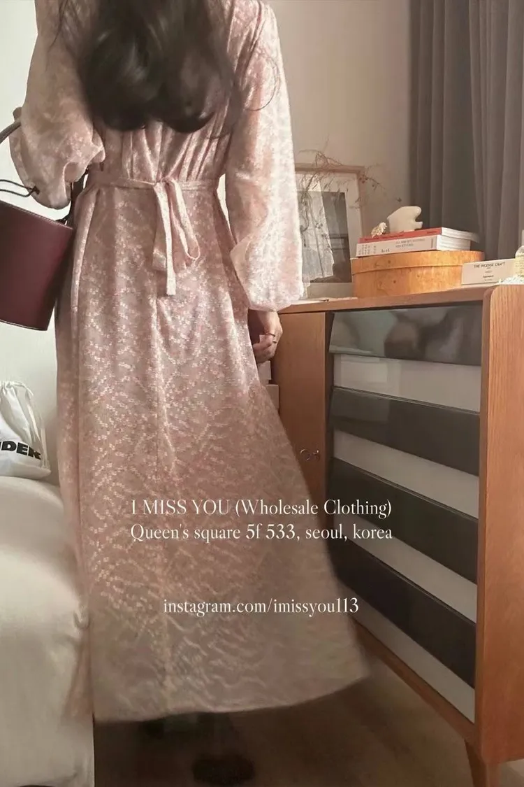 雪紡 寬腰帶 後拉鍊穿脫 V領設計 車縫中線 輕飄感