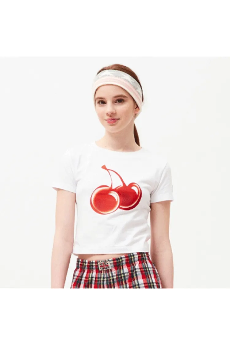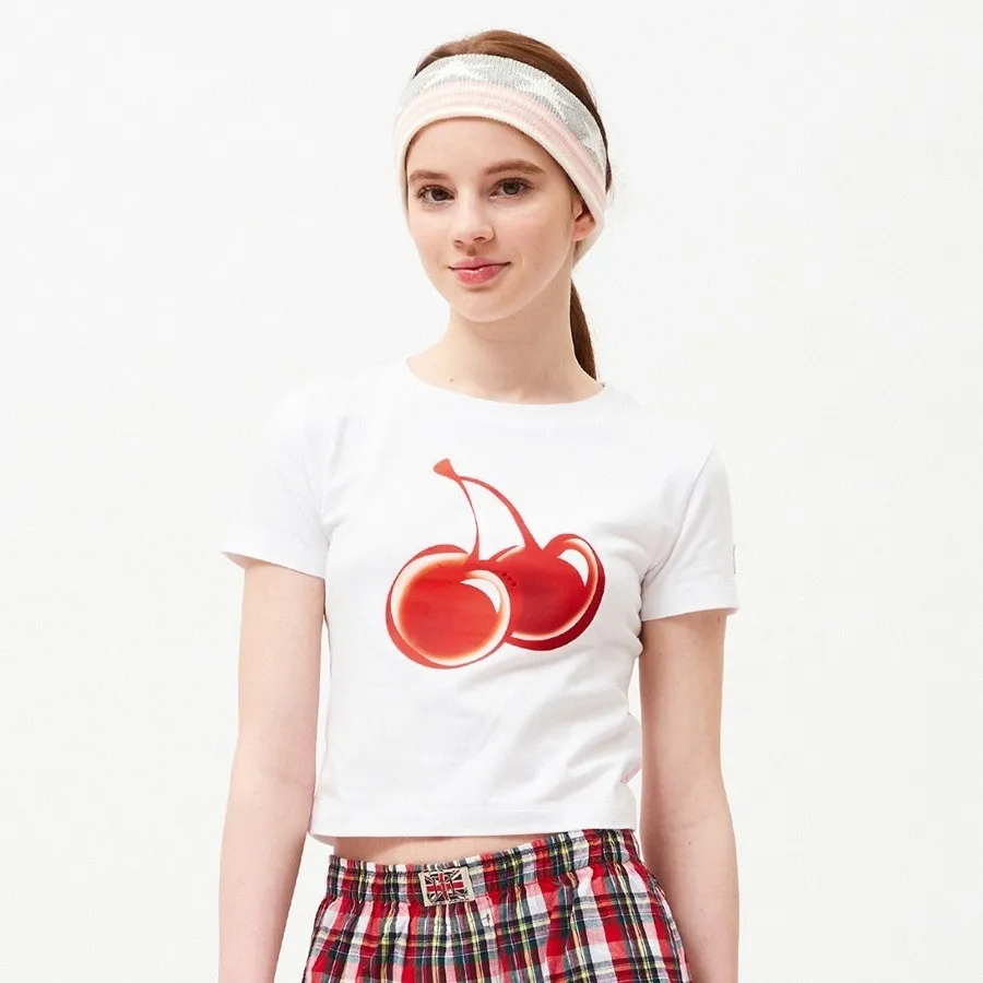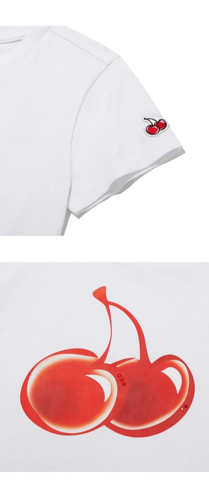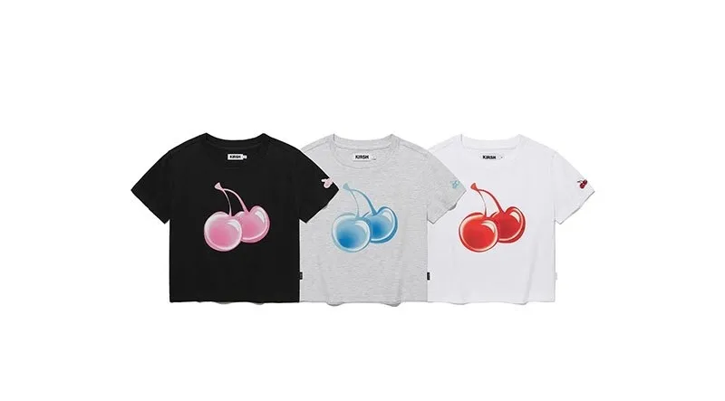CS765韓國Kirsh水鑽櫻桃短版上衣 白 灰 黑 線上價$699 官網價$729