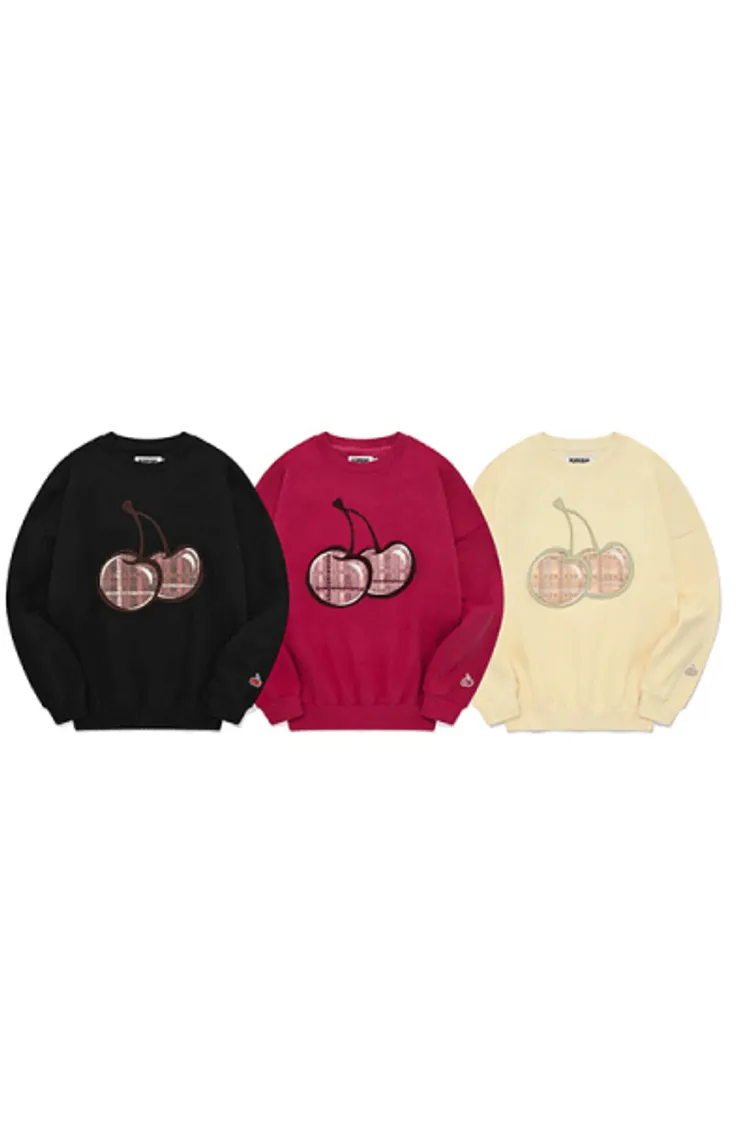 CS774韓國Kirsh新款格紋櫻桃大學T 奶油 紅 黑 線上價$1330 官網價$1360