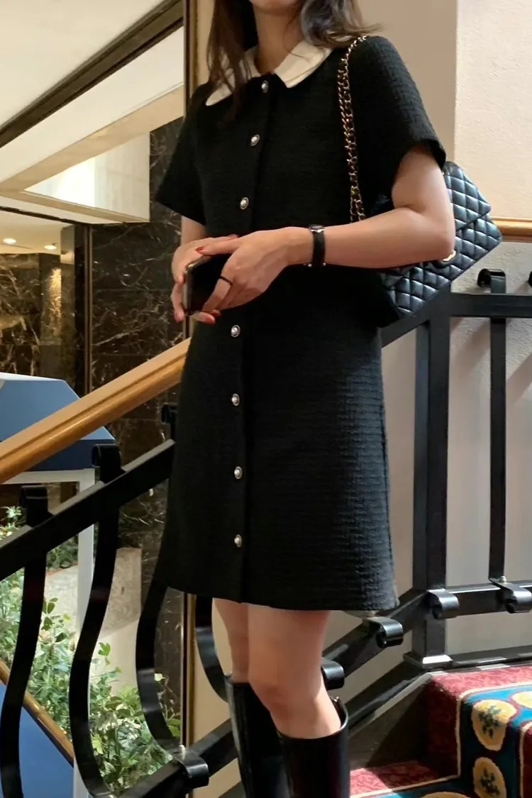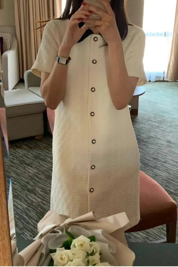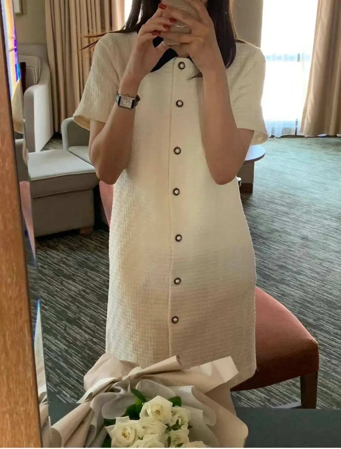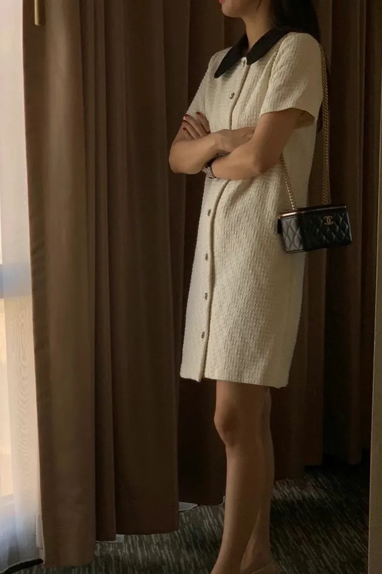 棉 立體針織感面料 珍珠復古釦 釦子穿脫