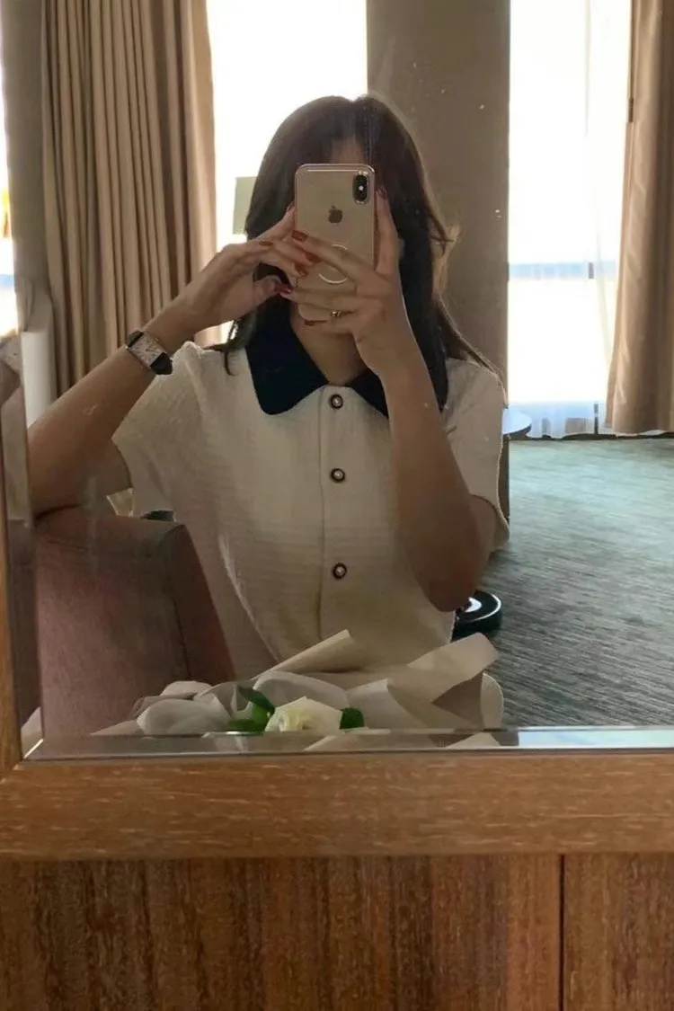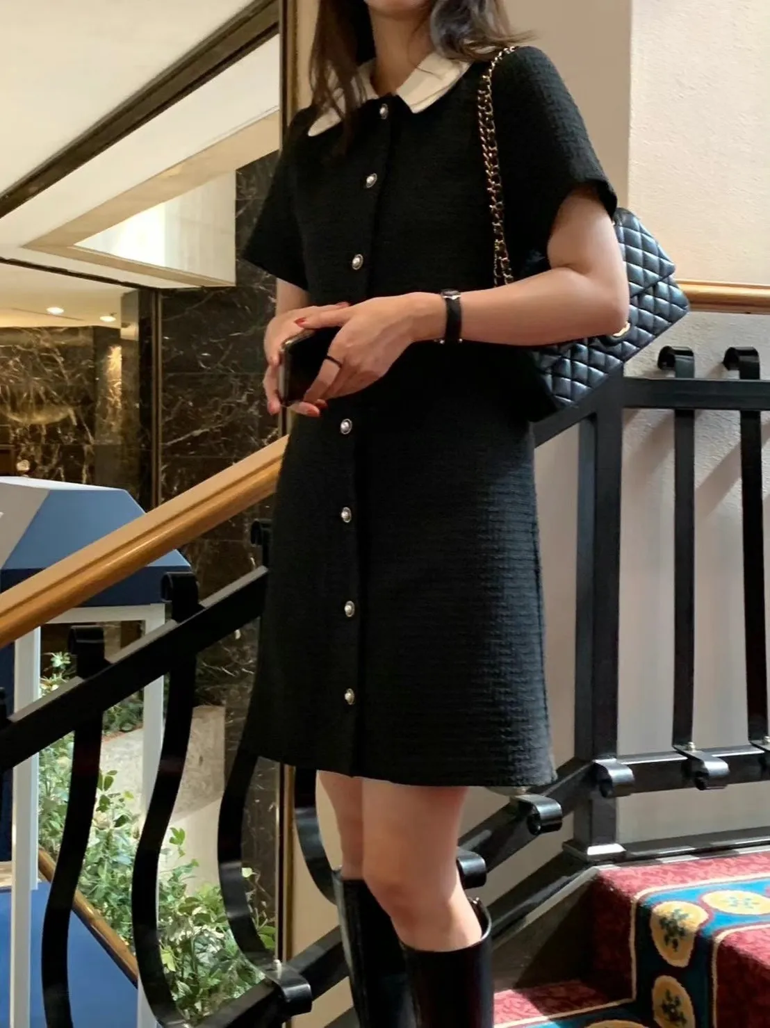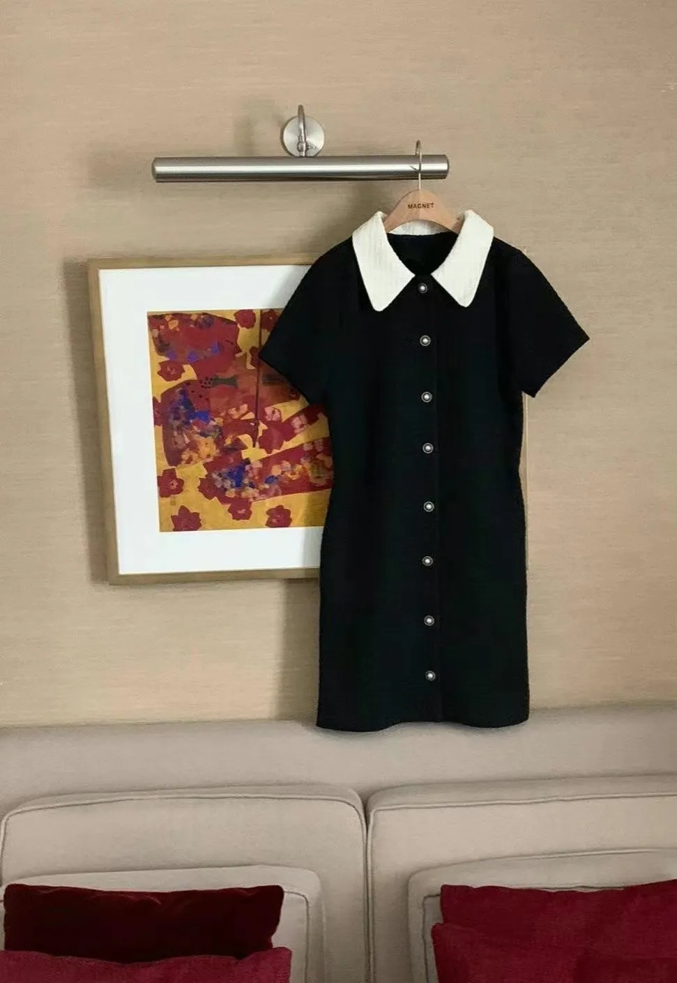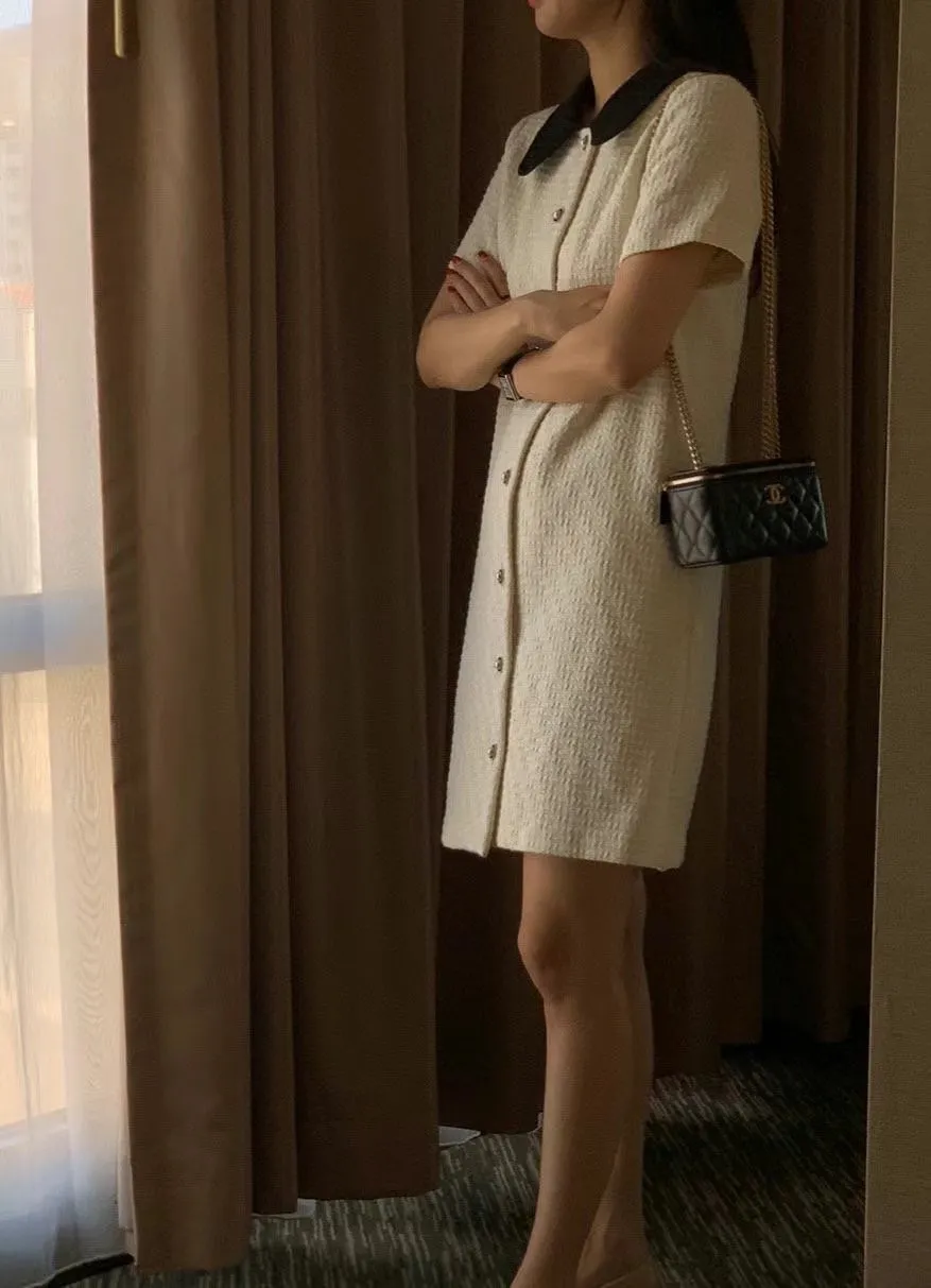 棉 立體針織感面料 珍珠復古釦 釦子穿脫