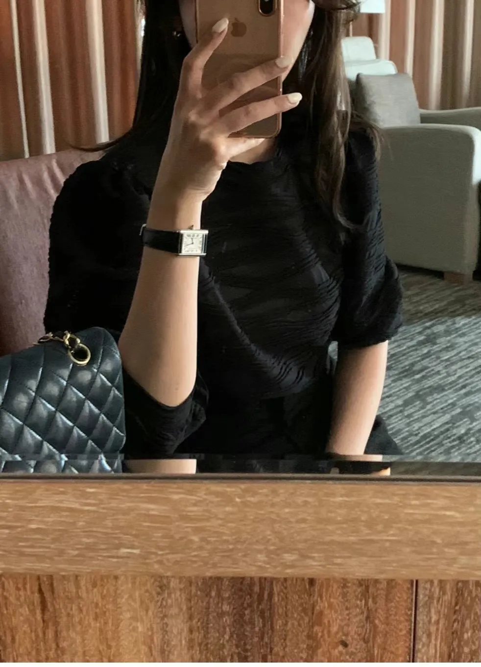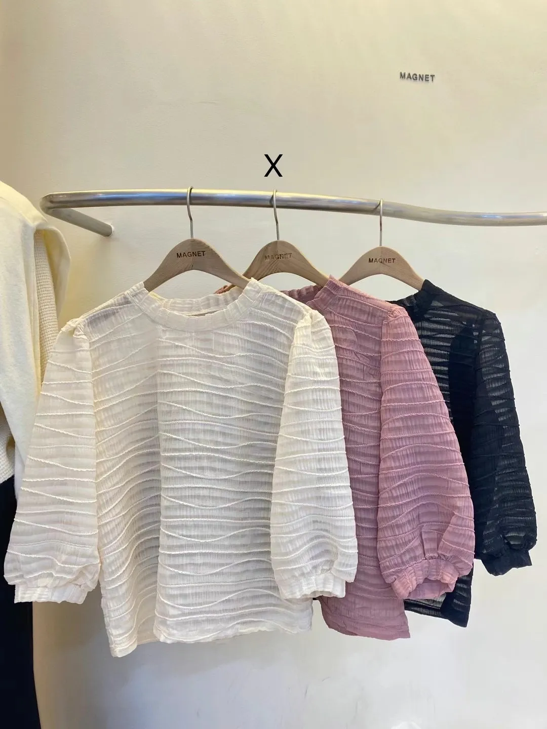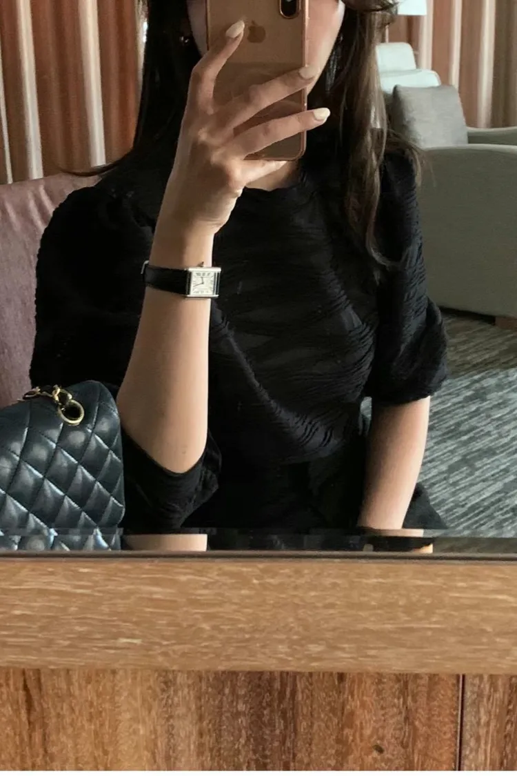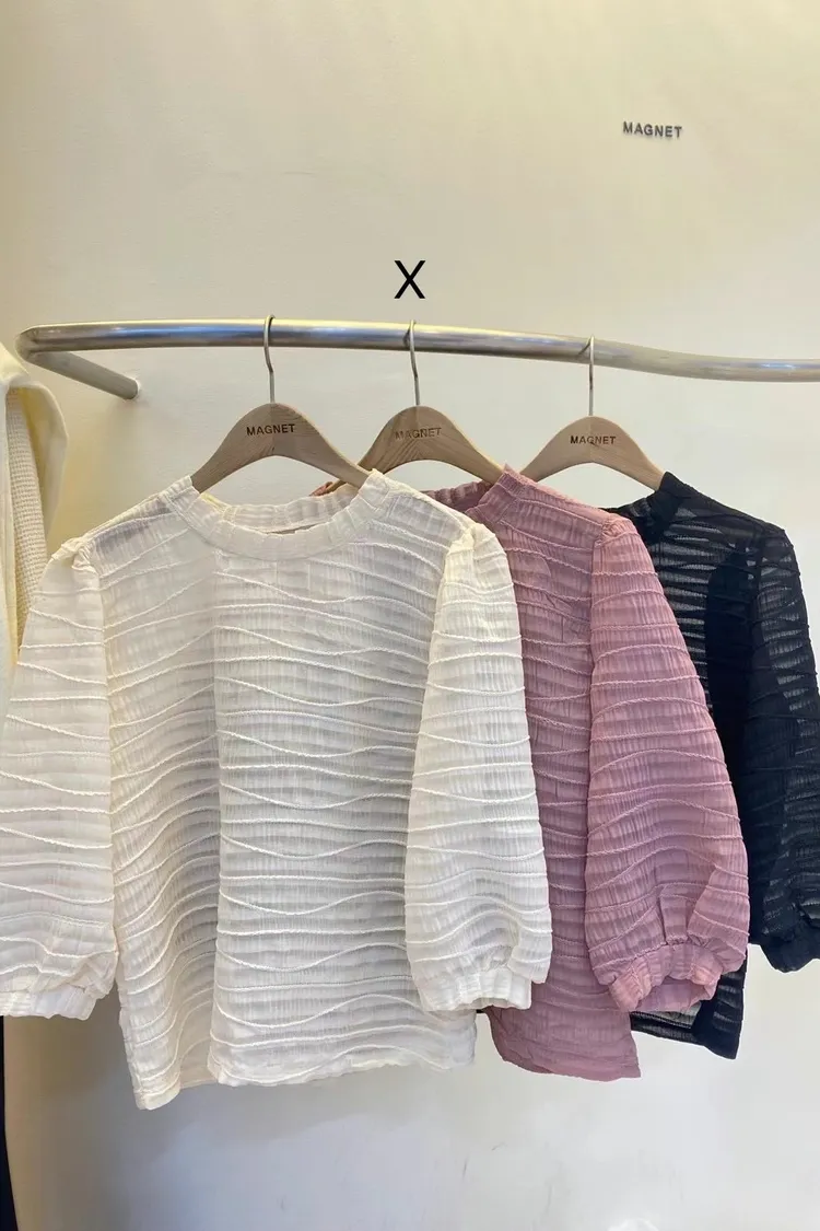 CS805秀氣修身剪裁波浪上衣 米 黑 線上價$740 官網價$770