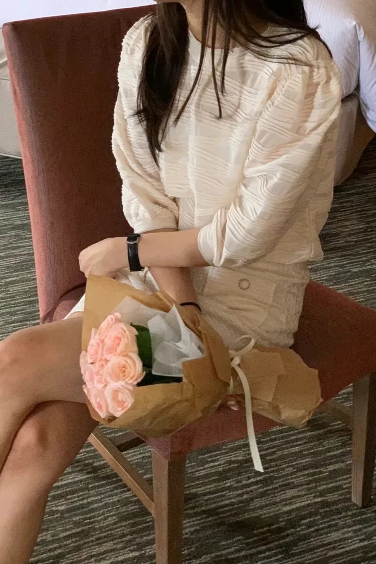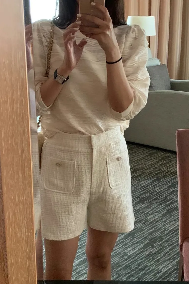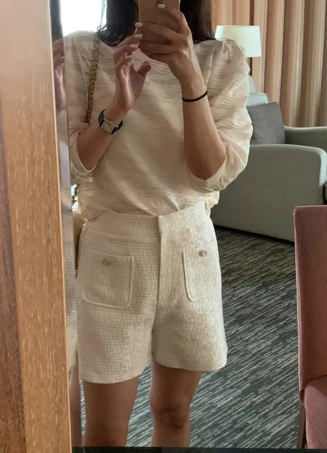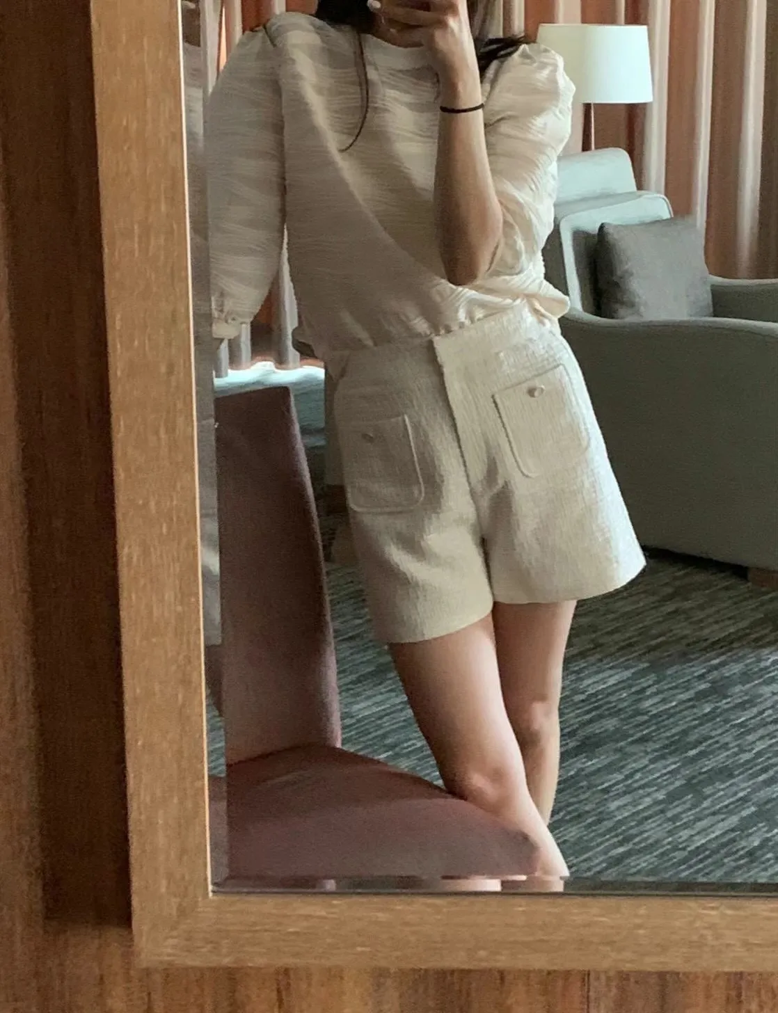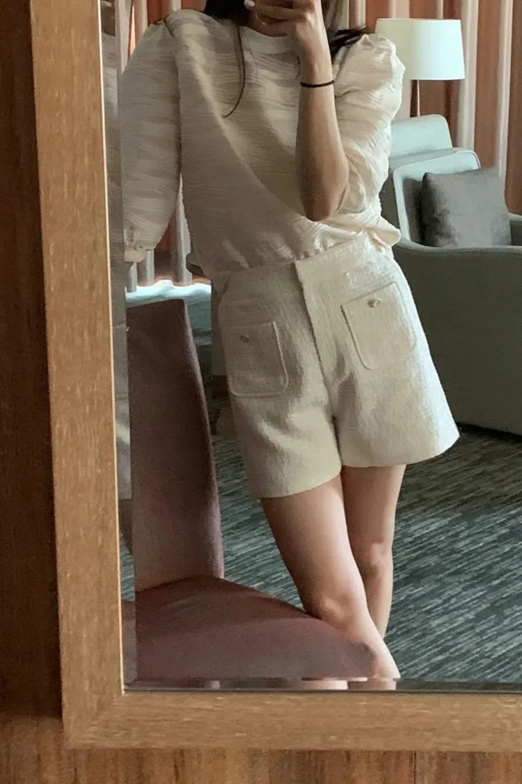 CS805秀氣修身剪裁波浪上衣 米 黑 線上價$740 官網價$770