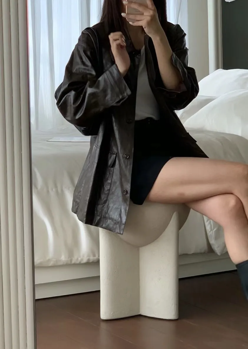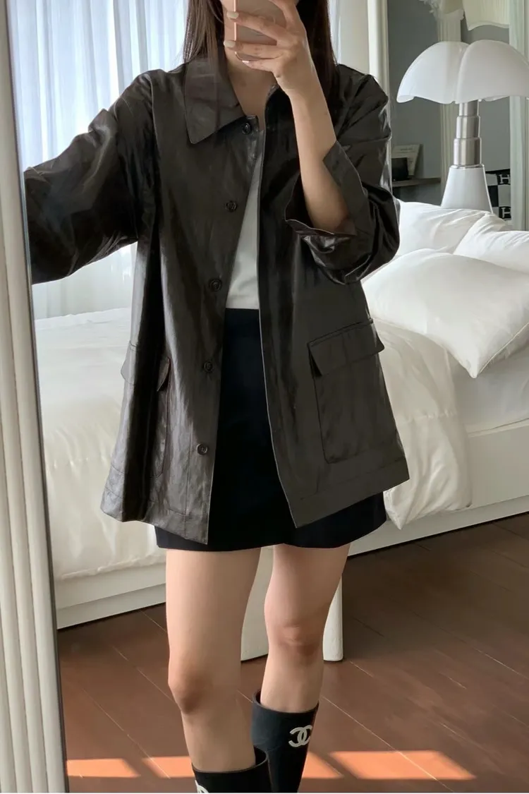 CS807率性中長版皮衣外套 咖 黑 奶茶 線上價$2290 官網價$2320