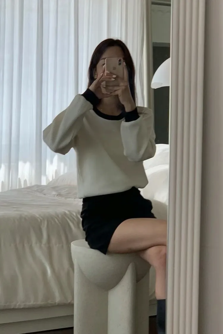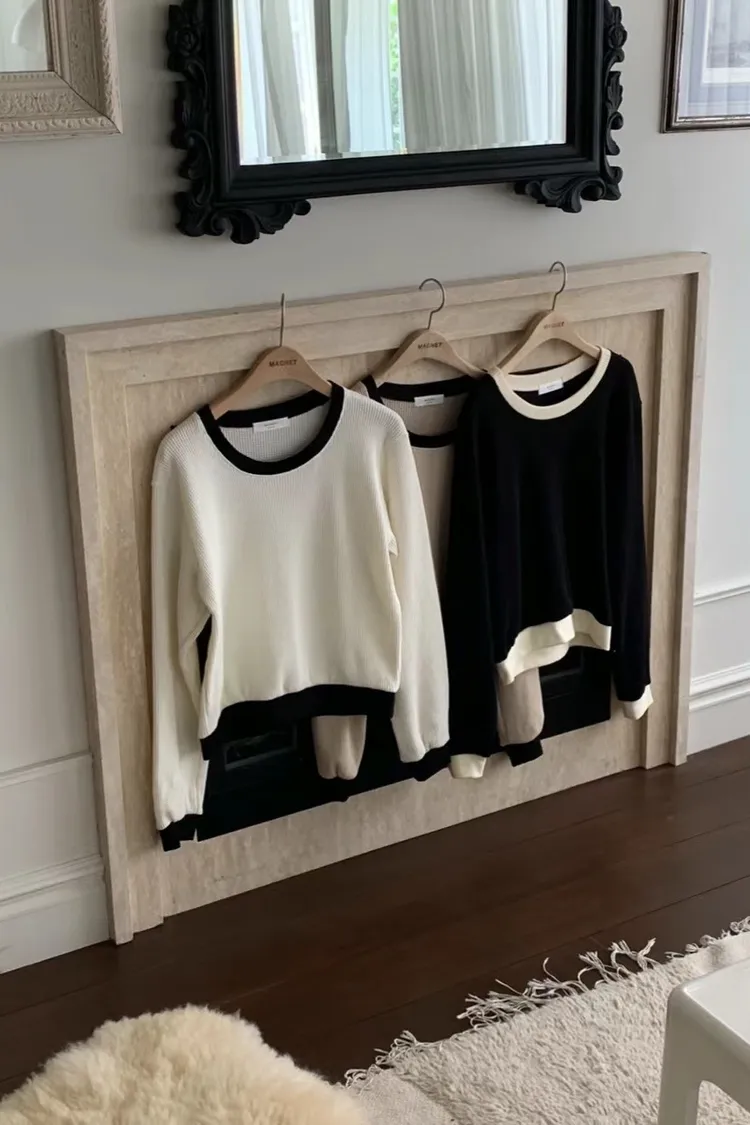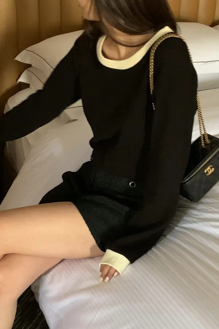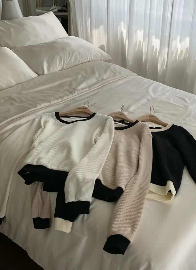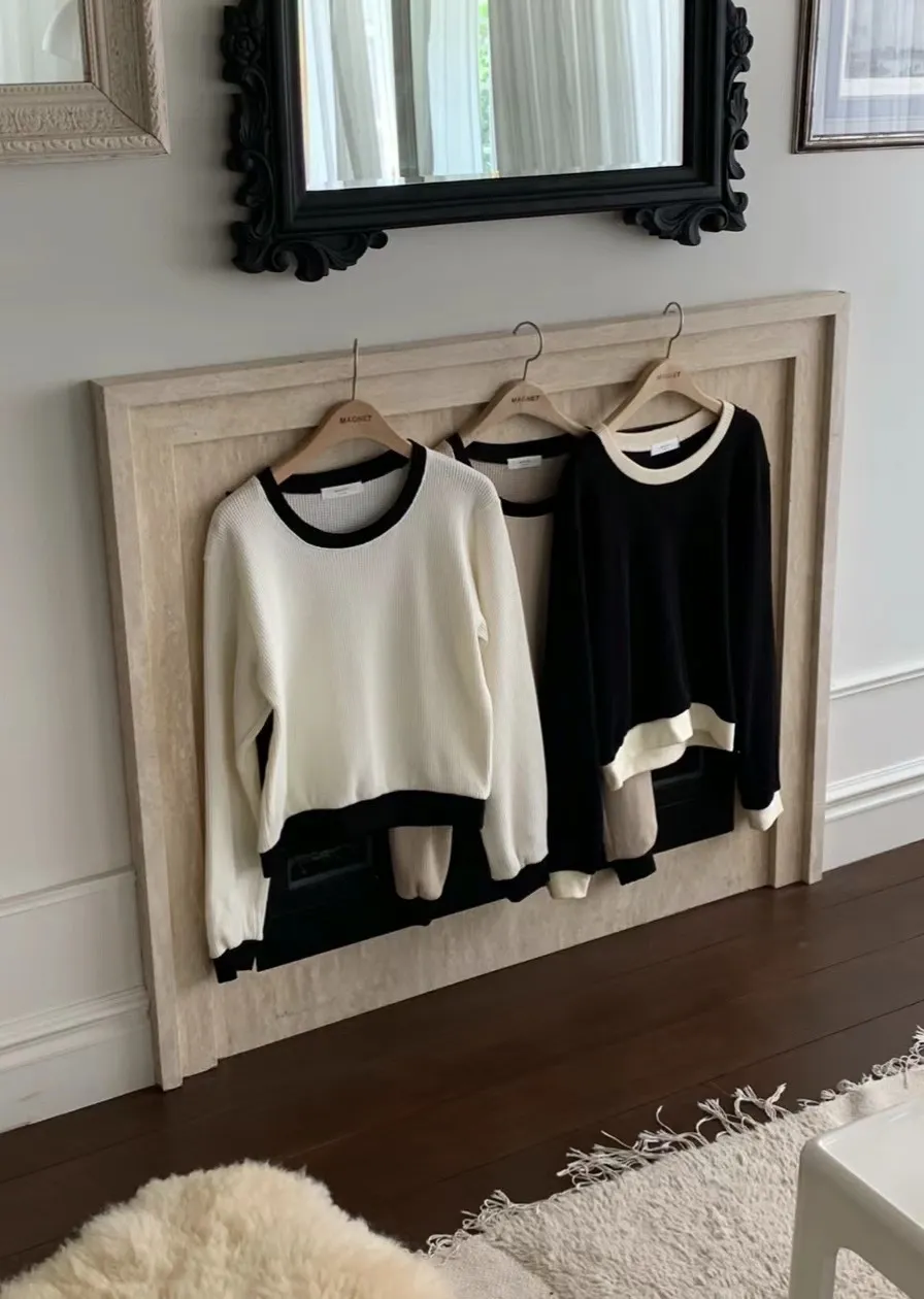 CS808優雅跳色圓領棉針織上衣 米 黑 奶茶 線上價$820 官網價$850