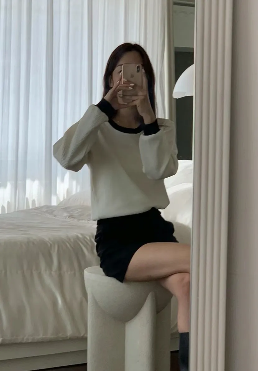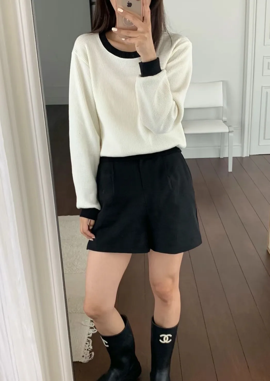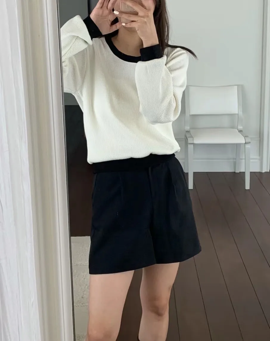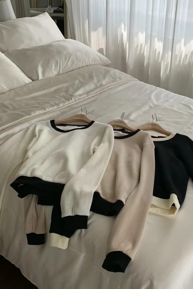 CS808優雅跳色圓領棉針織上衣 米 黑 奶茶 線上價$820 官網價$850
