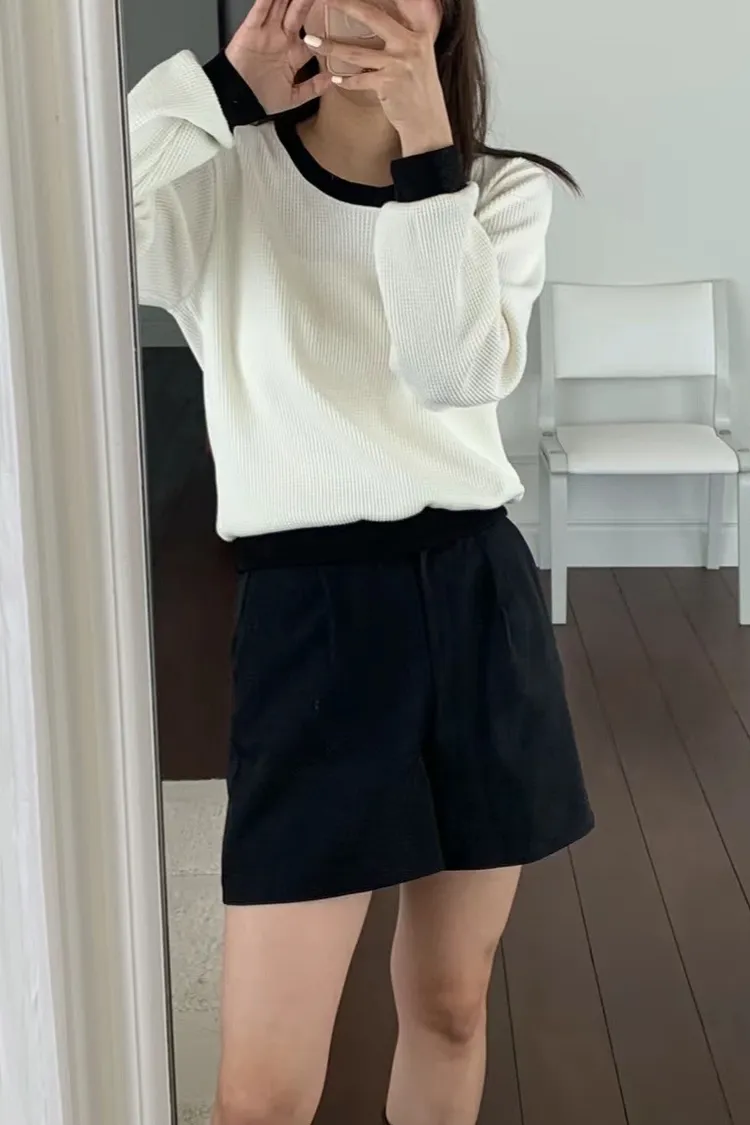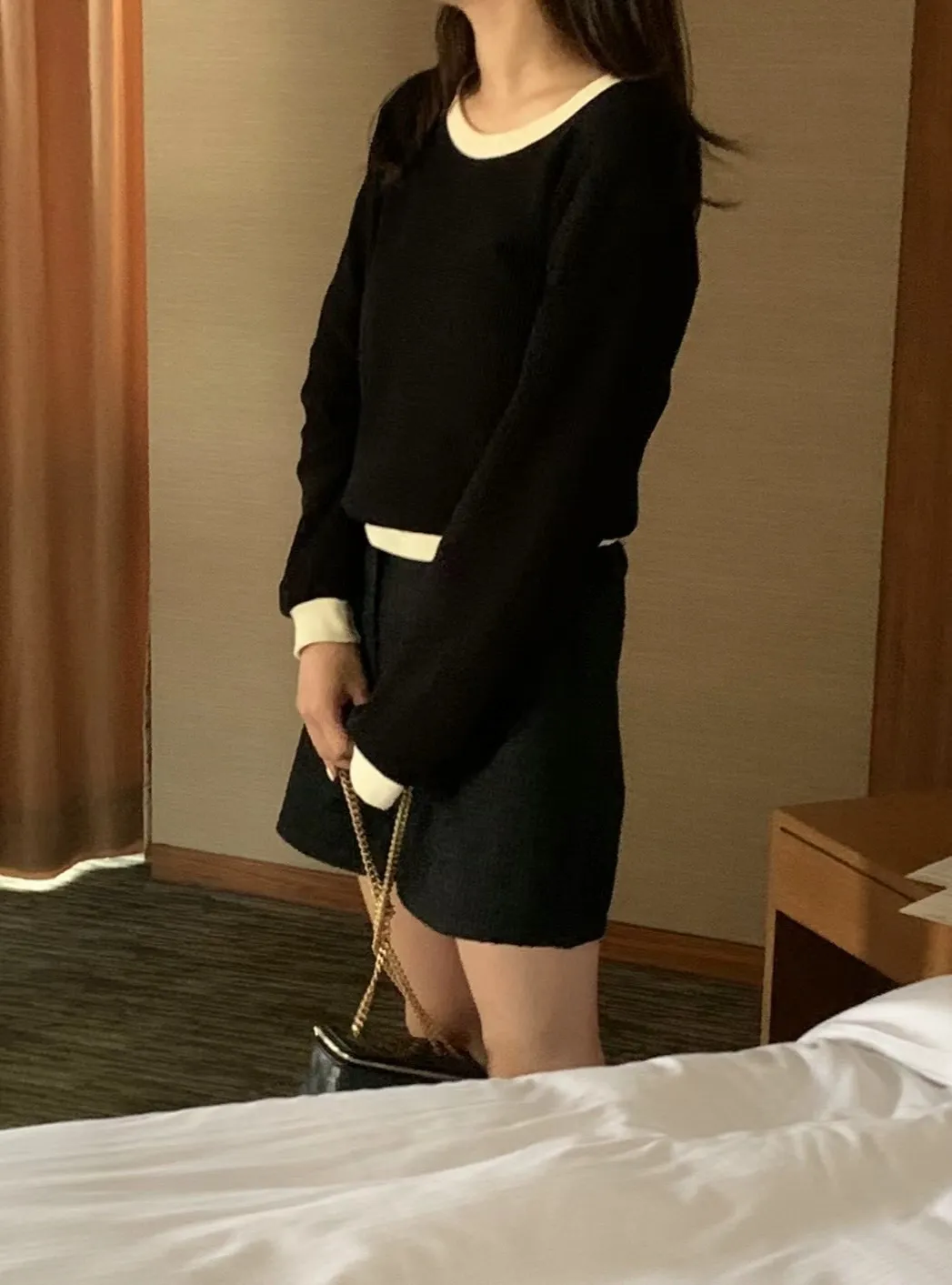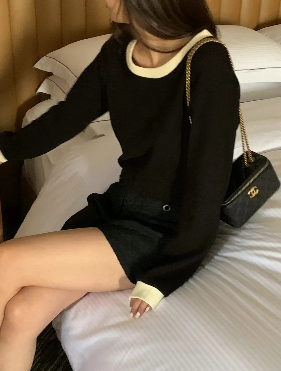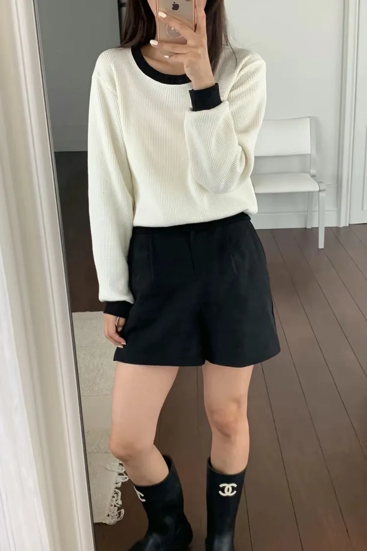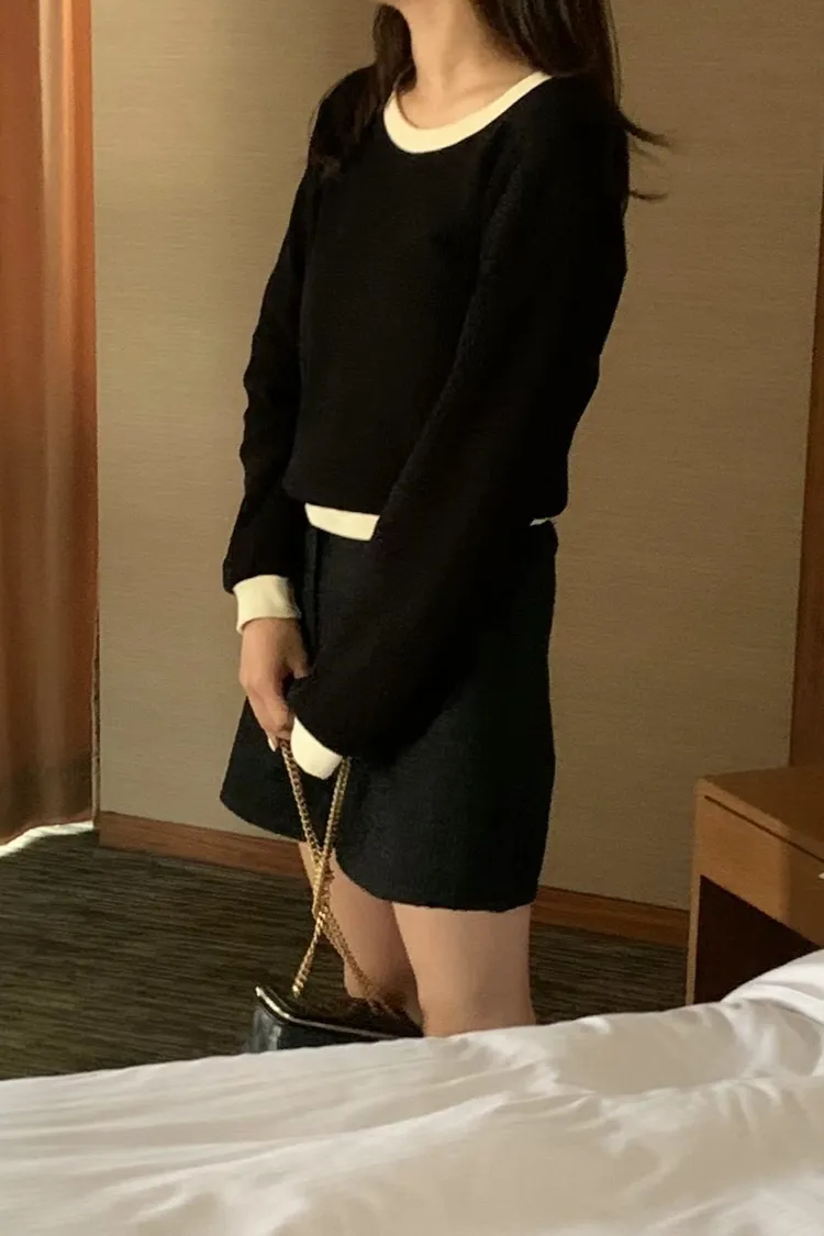CS808優雅跳色圓領棉針織上衣 米 黑 奶茶 線上價$820 官網價$850