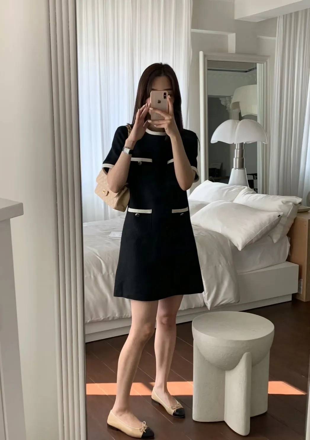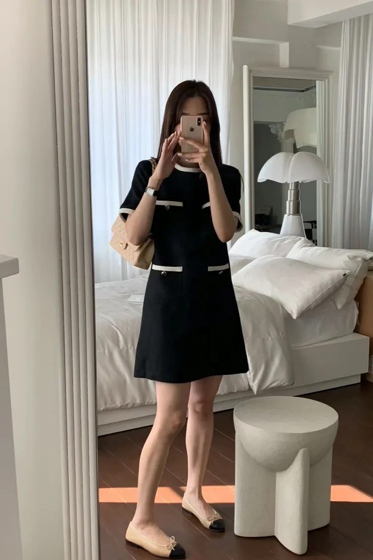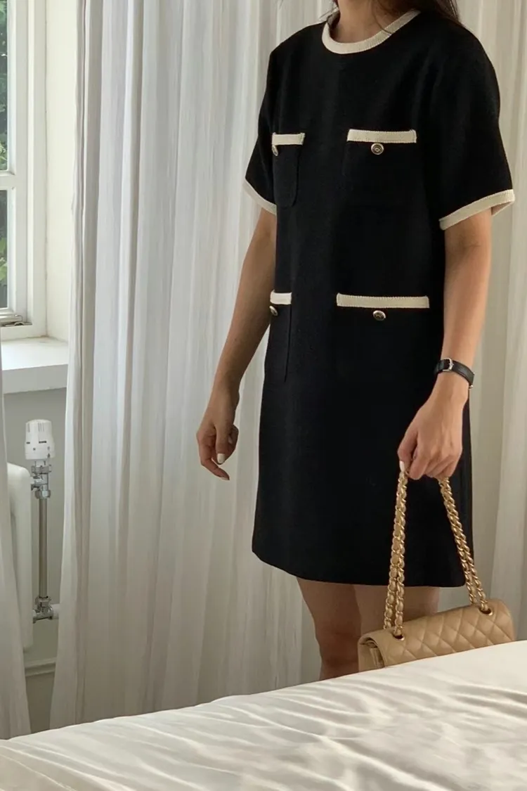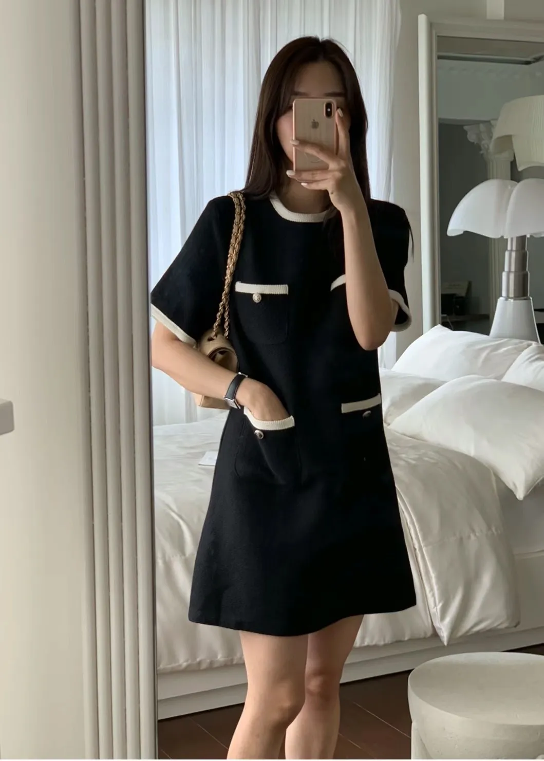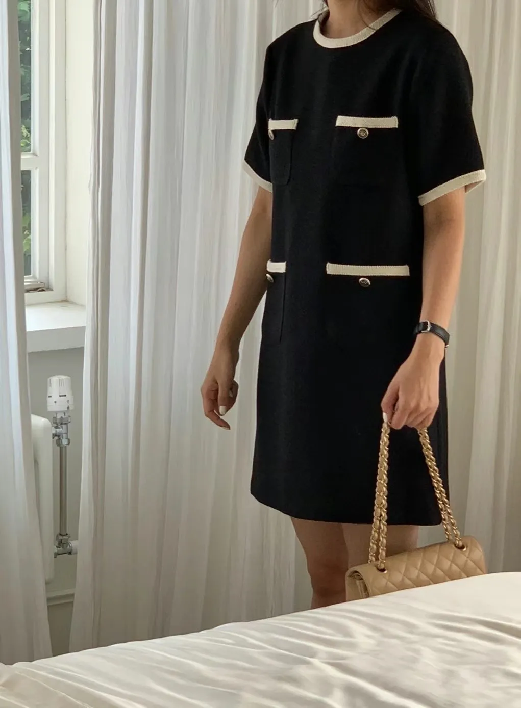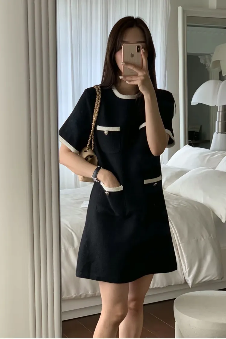 CS812許願款小香風四口袋連身洋裝 白 粉 黑 線上價$1760 官網價$1790