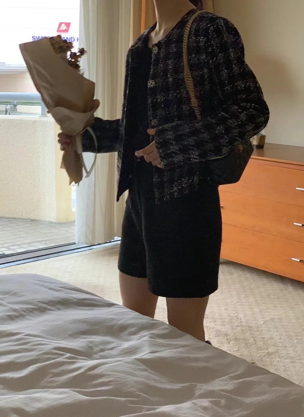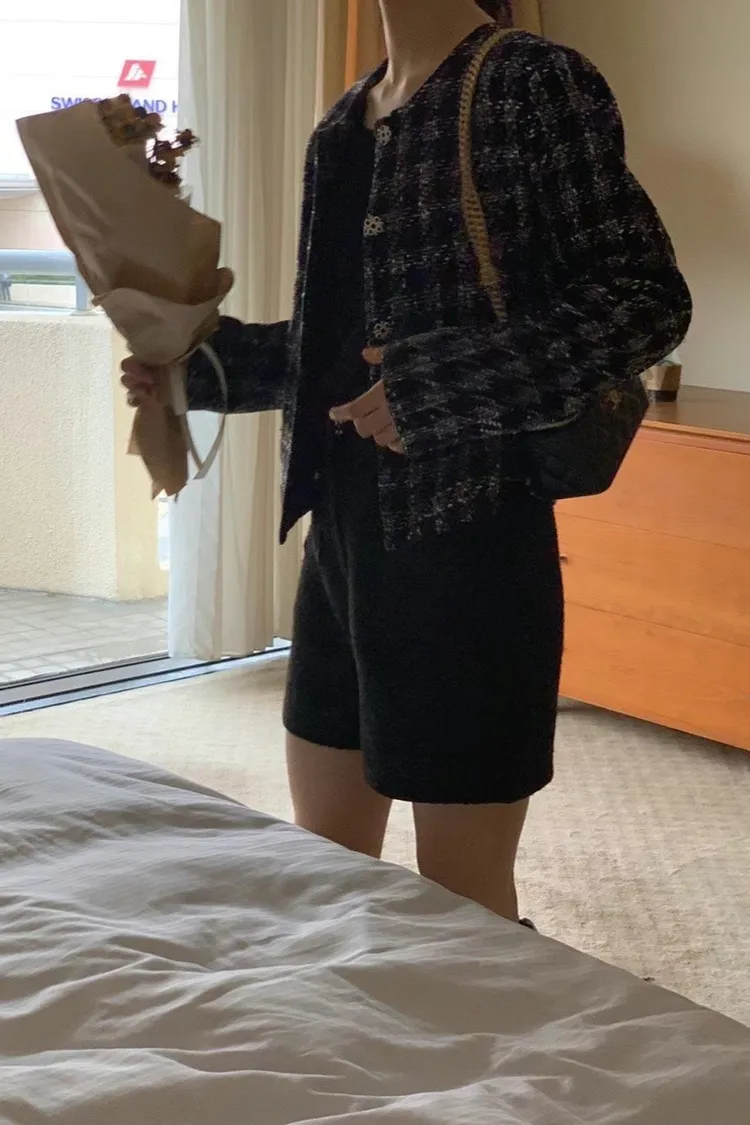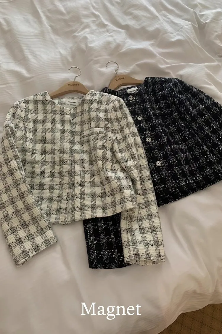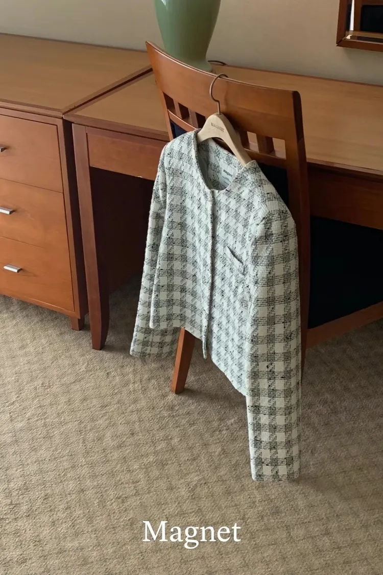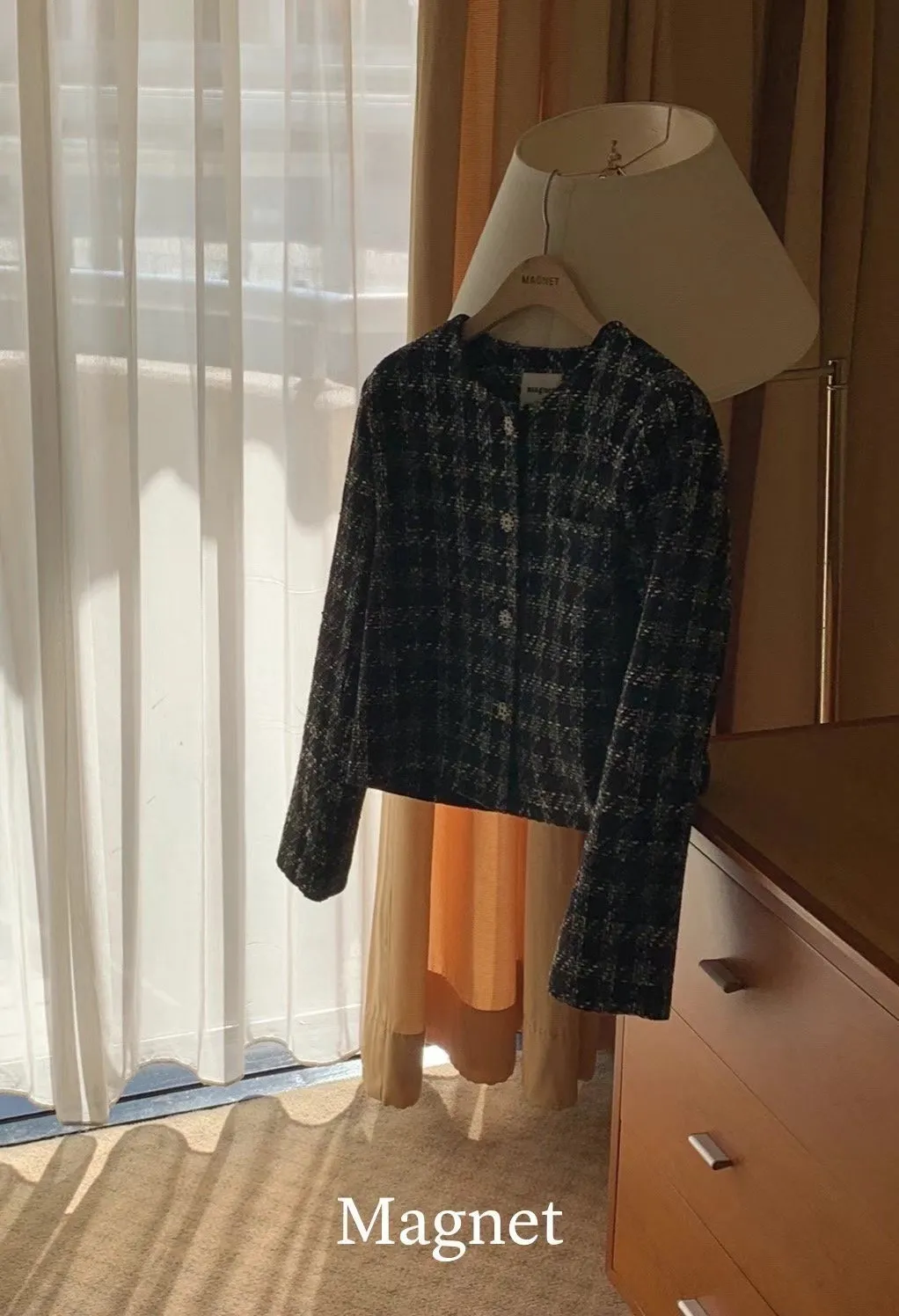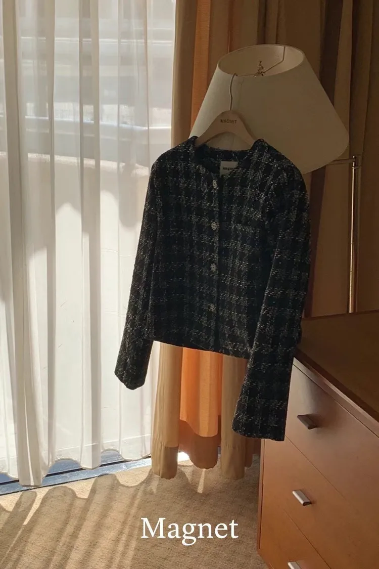 縲縈13+壓克力70+聚酯17 圓領薄款 藝術簍空精緻美釦 微微墊肩