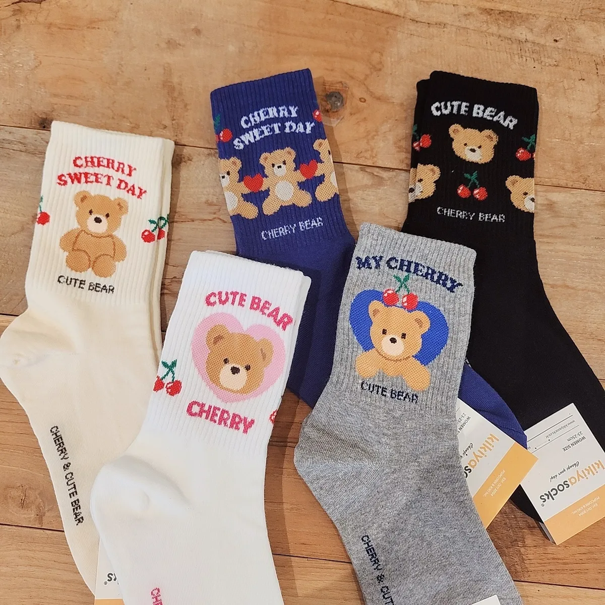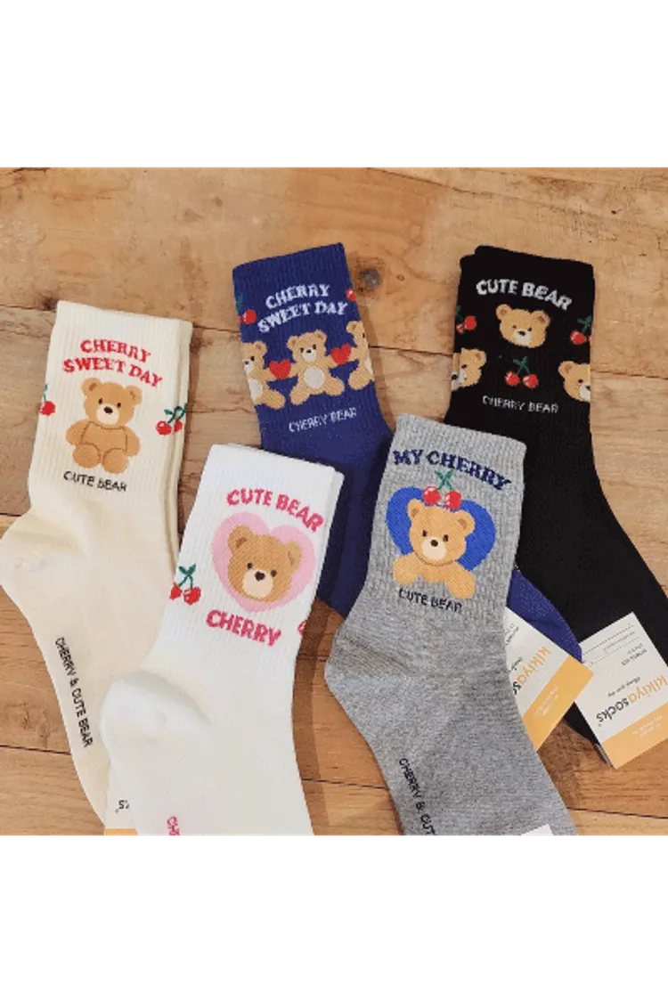 CS820可愛櫻桃熊熊系列襪 白 米 灰 藍 黑 $39包色$175