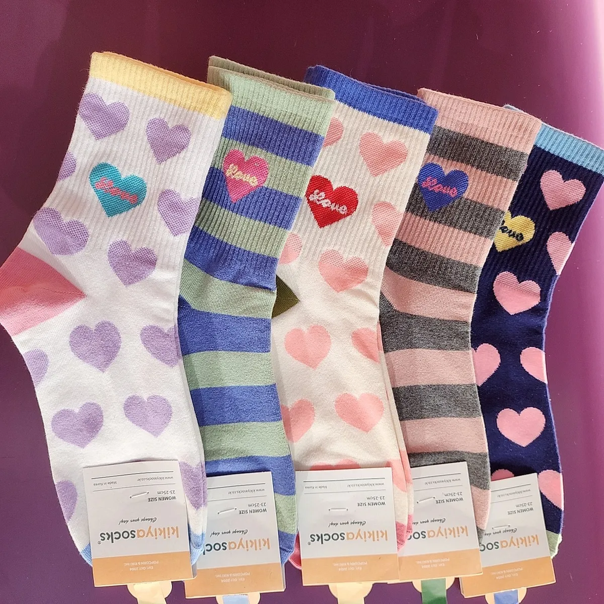 CS825愛心愛心條紋襪(上方分色) 粉 綠 黃 淺藍 深藍 $39 包色$175
