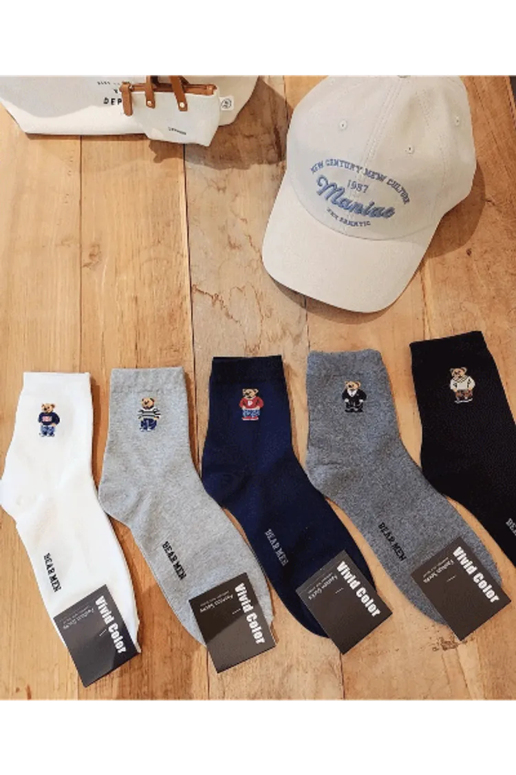 CS833男款熊熊襪 白 藍 黑 深灰 淺灰 $39 包色$175