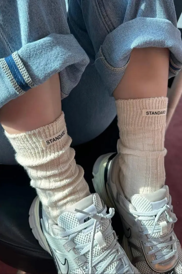 CS842英文羊毛襪 米 黑 粉 黃 綠 藍 灰 咖 $130