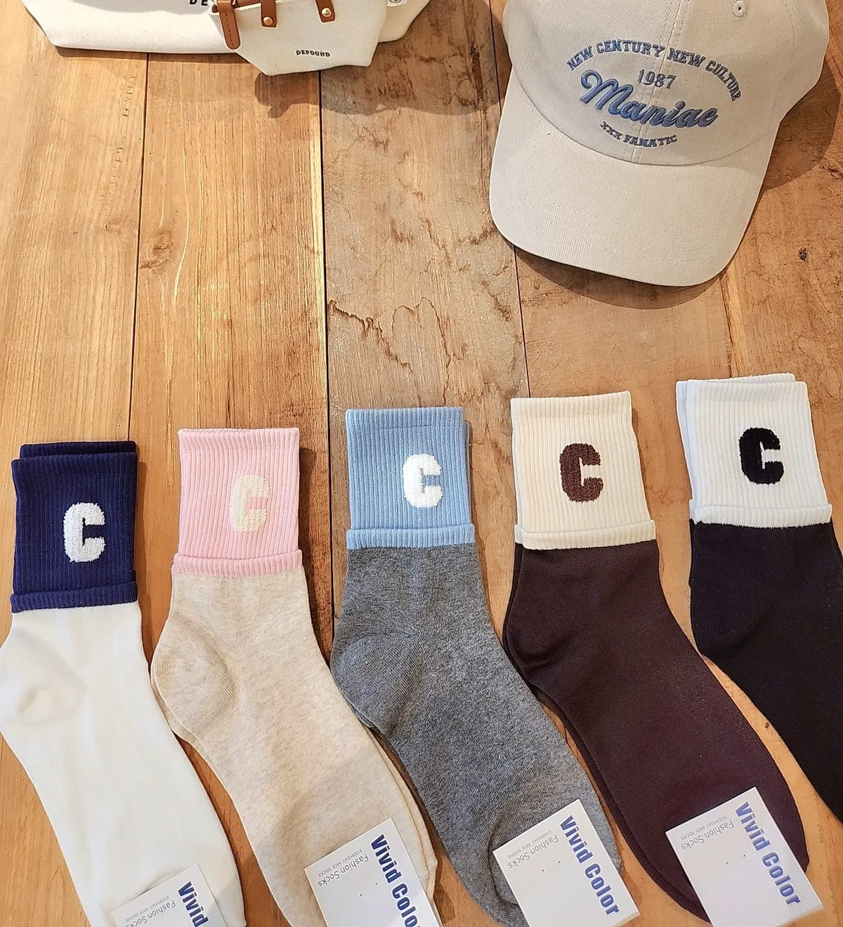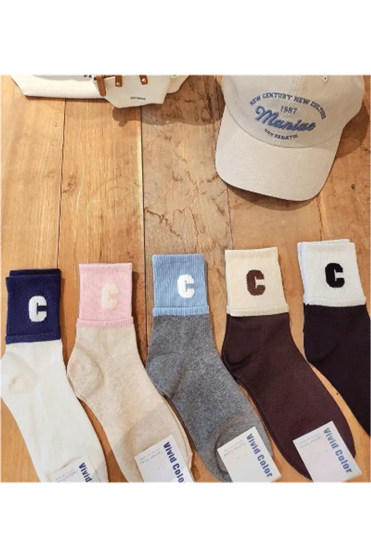 CS847英文C 跳色襪 白 粉 淺藍 深藍 奶茶 $39 包色$175