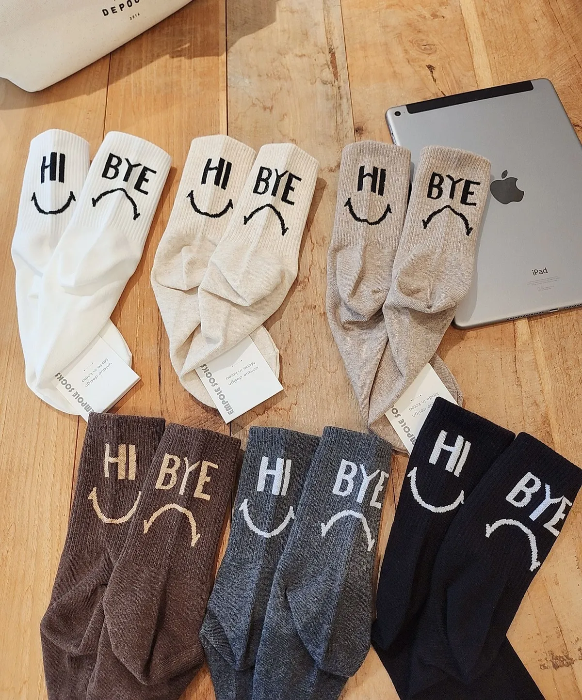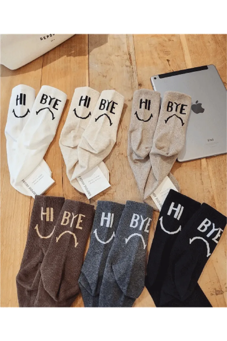 CS856 可愛hi妳好bye再見掰掰襪 白 奶茶 淺咖 深咖 黑 灰 $39 包色$210