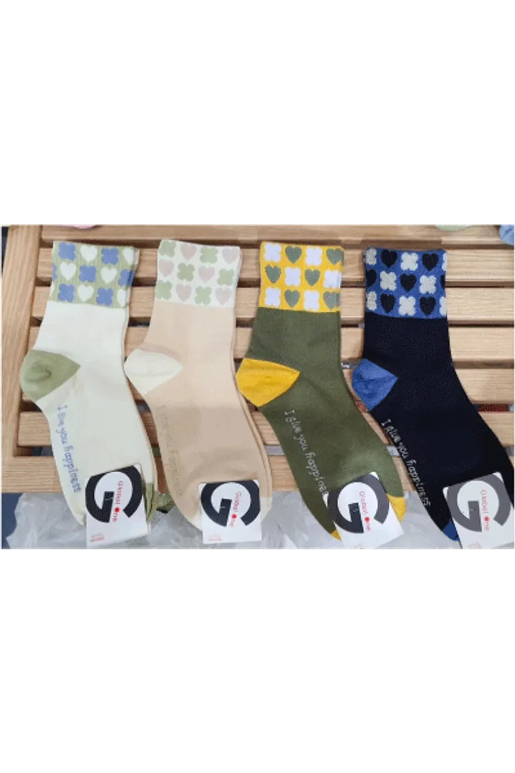 CS858快樂幸運草拚色襪 米 奶茶 綠 黑 $39 包色$140