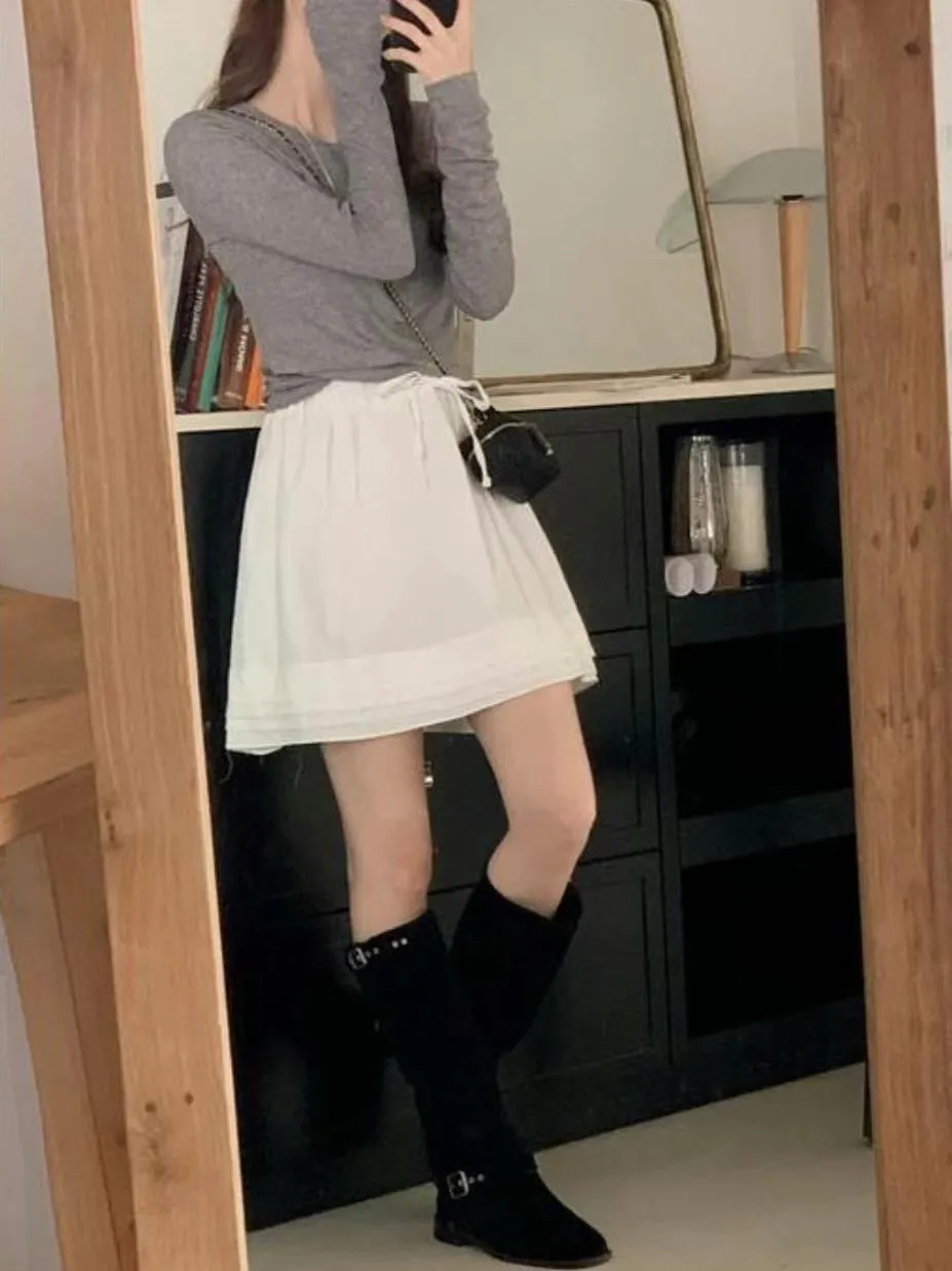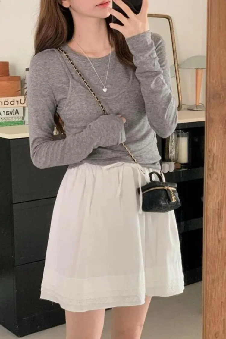 CS867雙層布蕾絲下擺Aline美裙 白 黑 線上價$790 官網價$820
