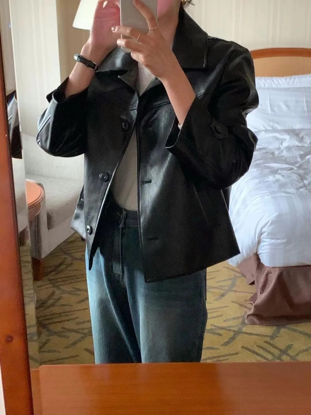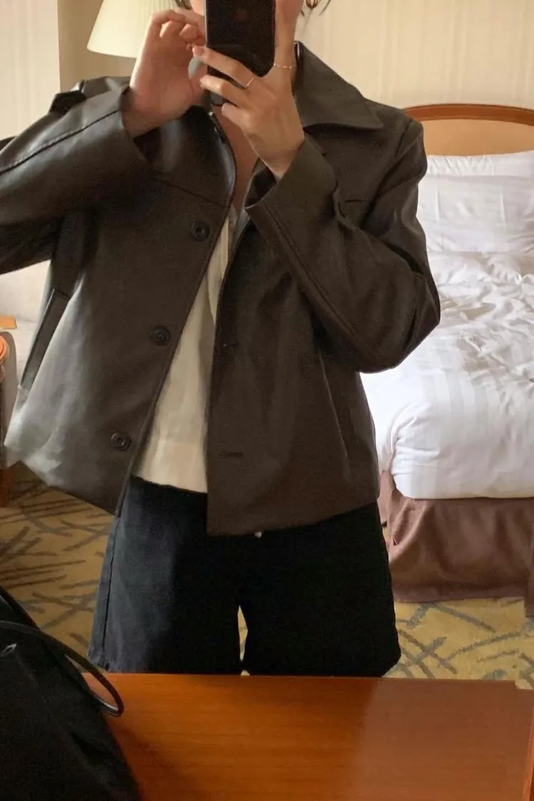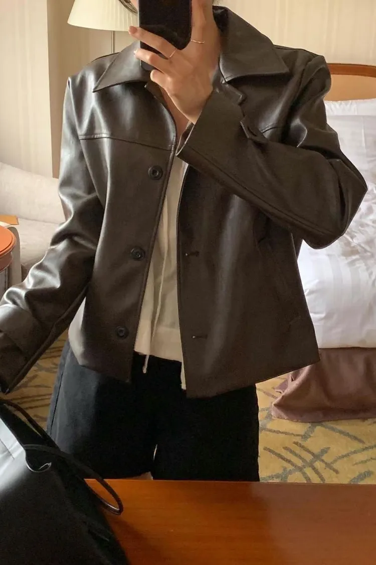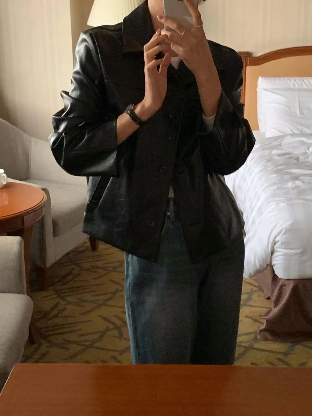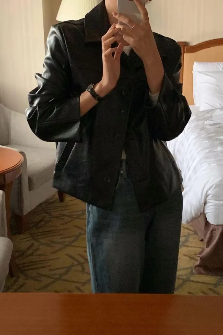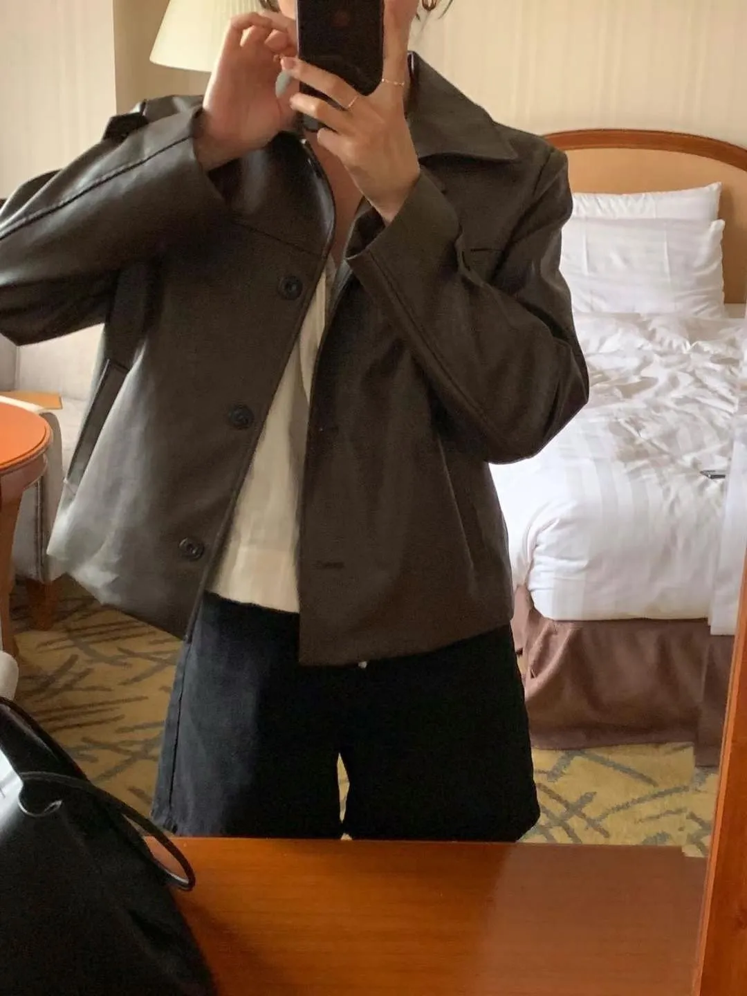 CS873輕盈質感百搭皮外套 咖 黑 線上價$1390 官網價$1420