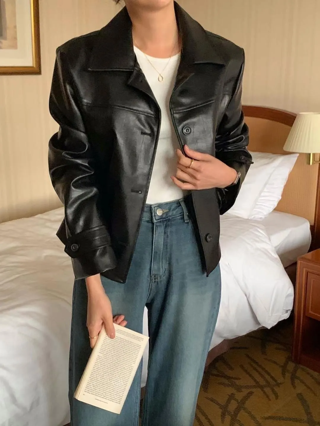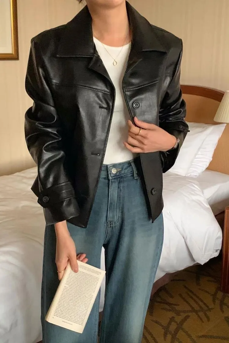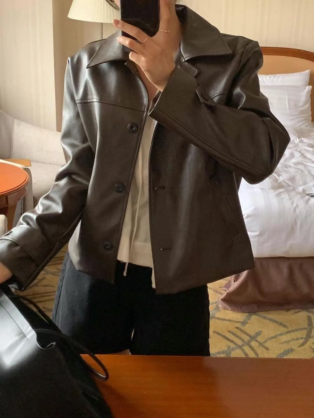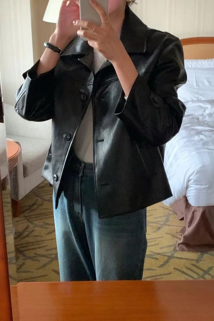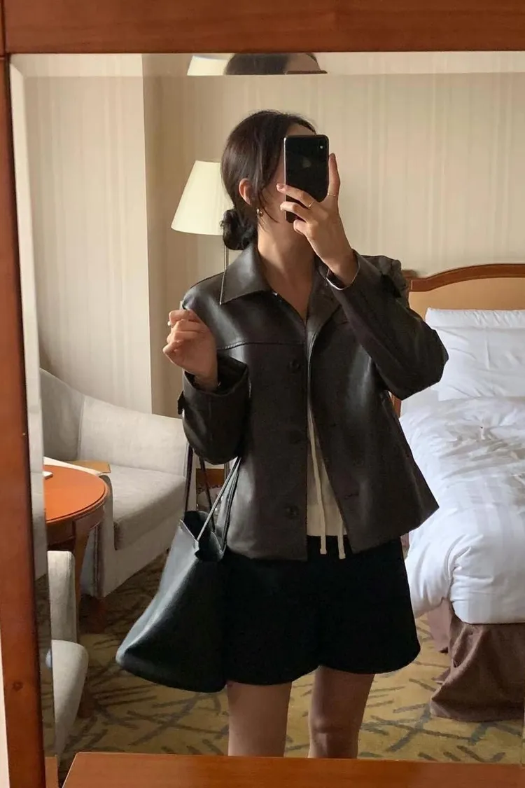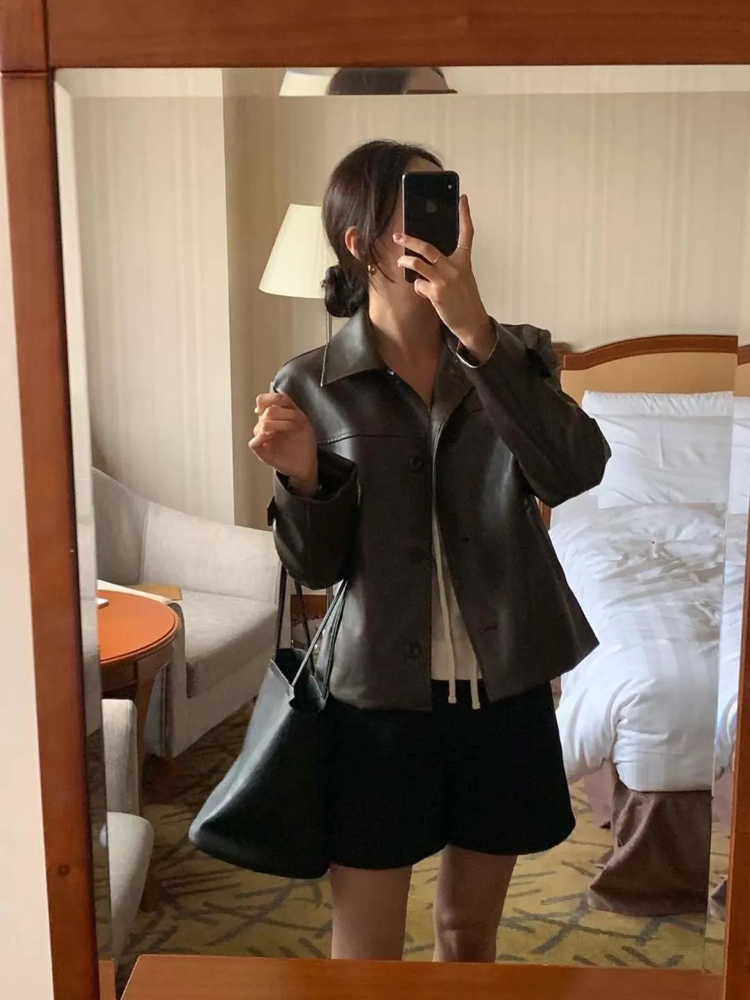 CS873輕盈質感百搭皮外套 咖 黑 線上價$1390 官網價$1420