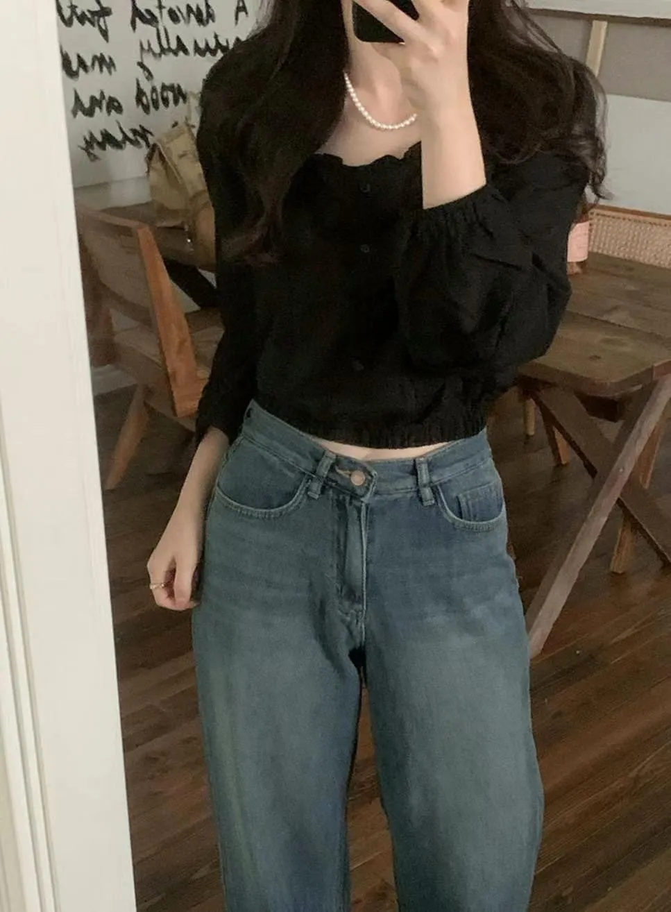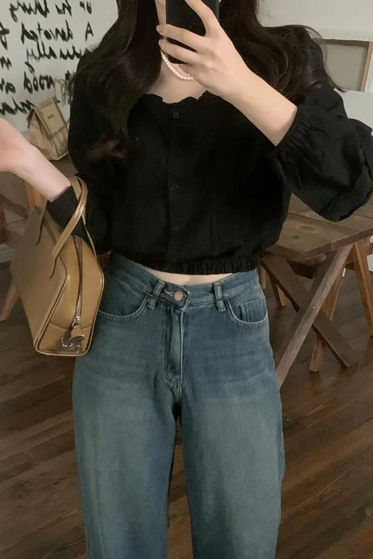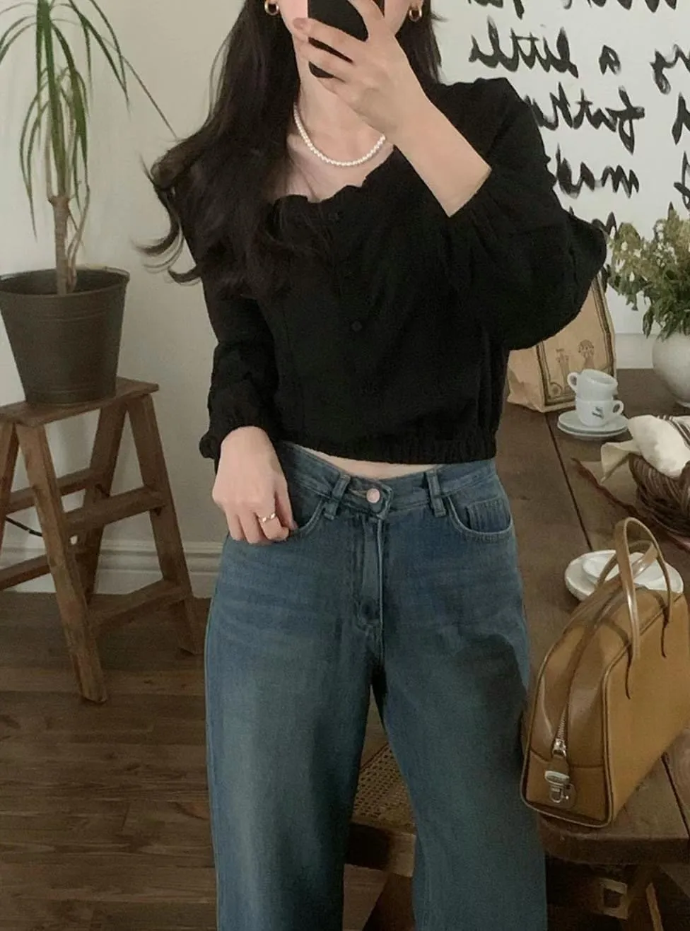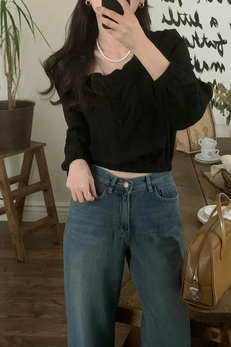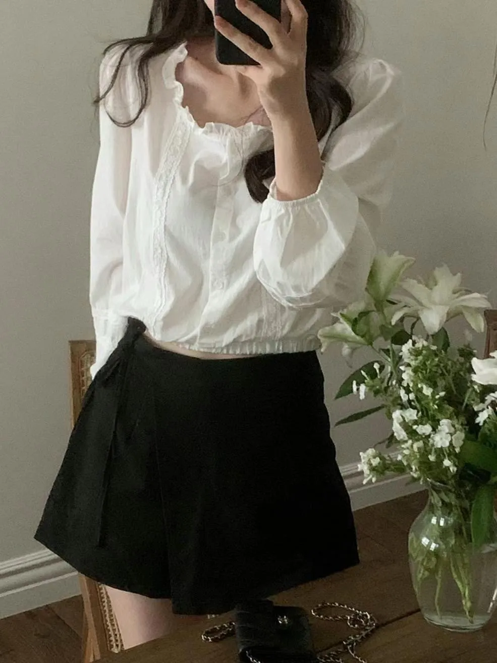 CS883薄款荷葉領棉蕾絲鑲嵌美上衣 白 黑 線上價$790 官網價$820
