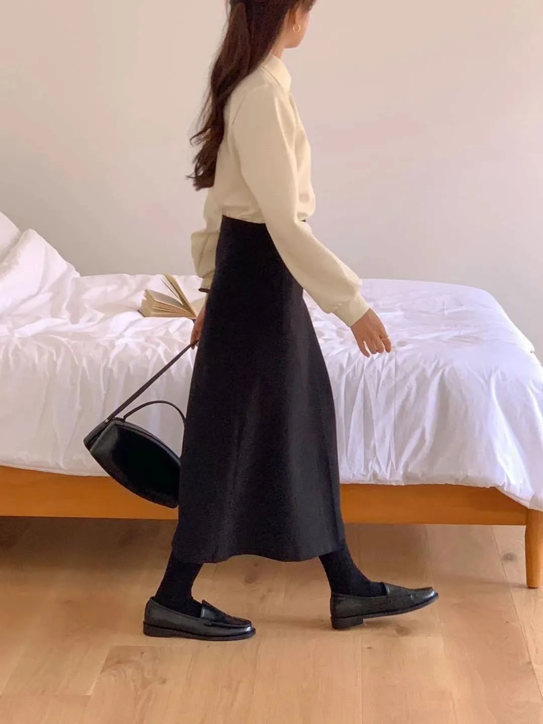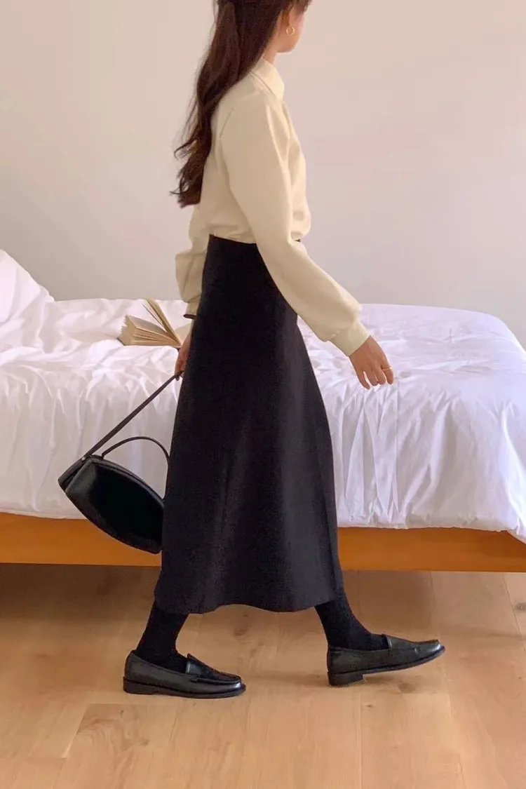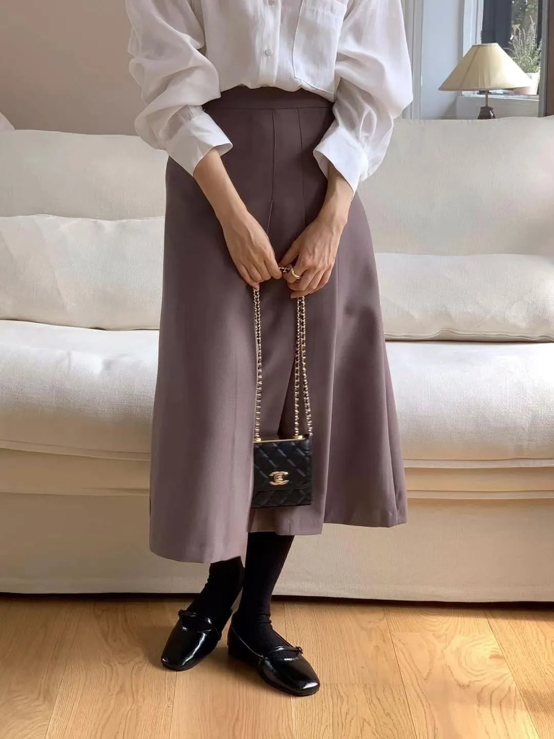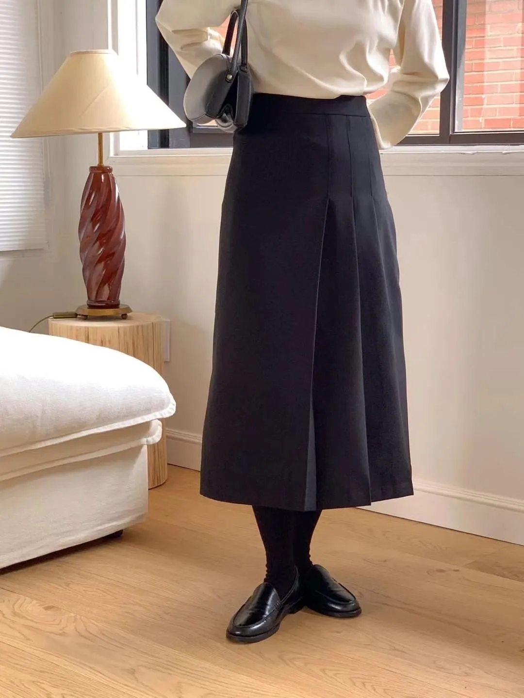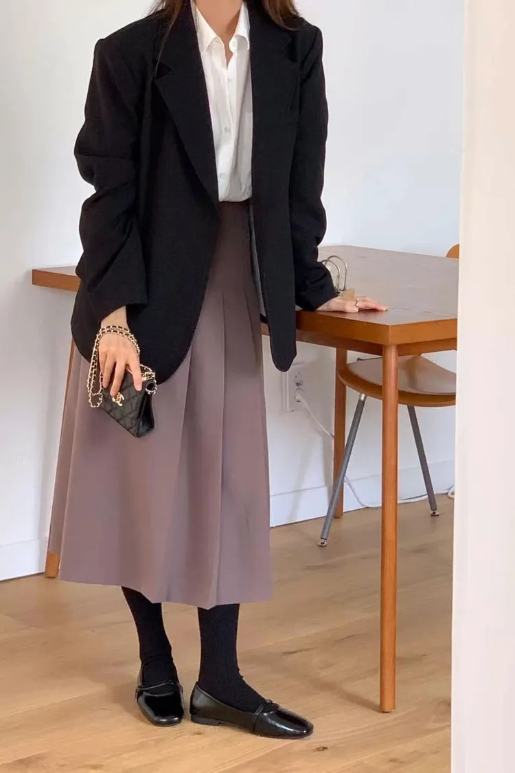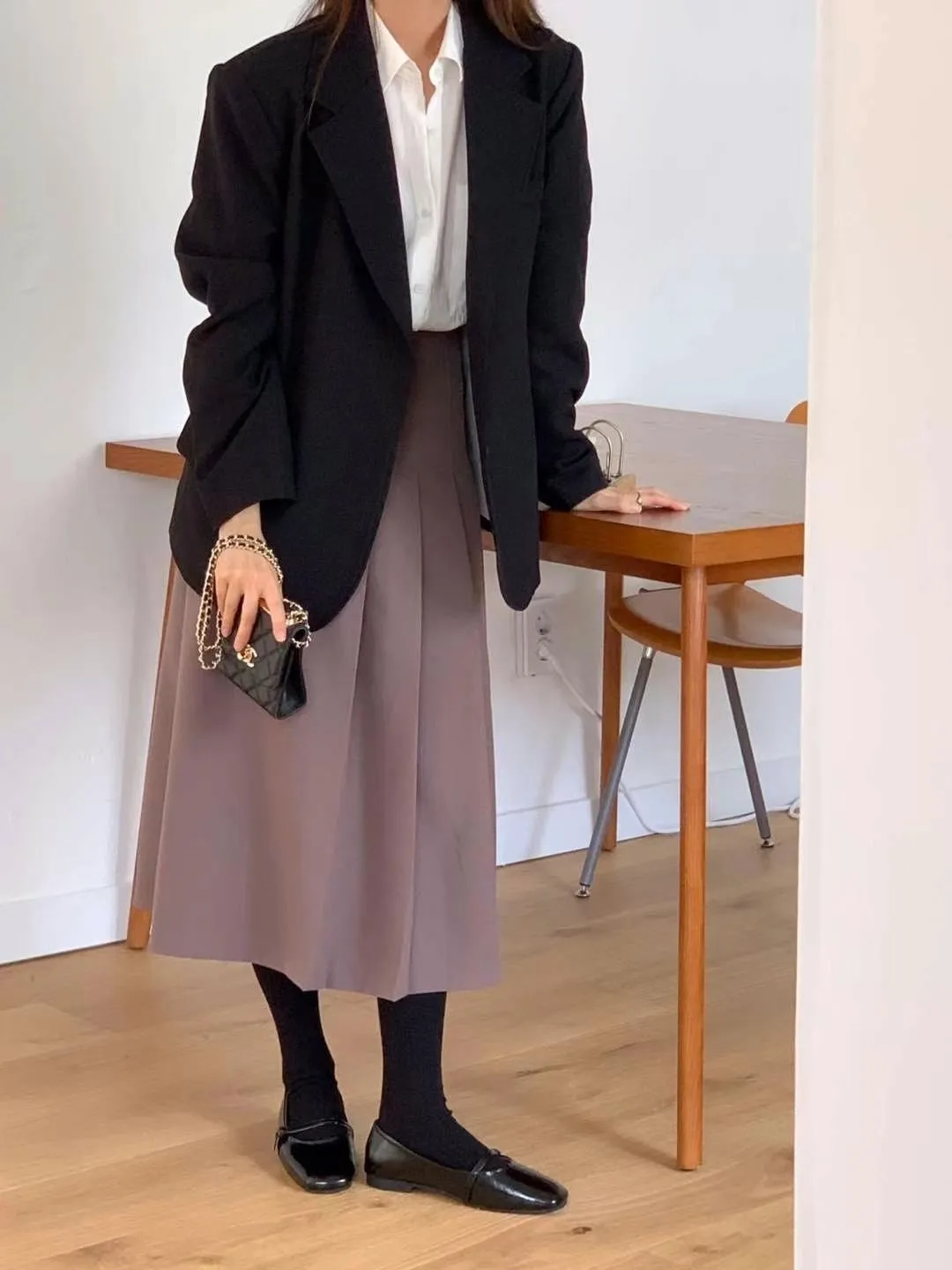 CS885單面側寬百褶微光澤質感裙 咖 黑 S M 線上價$879 官網價$899