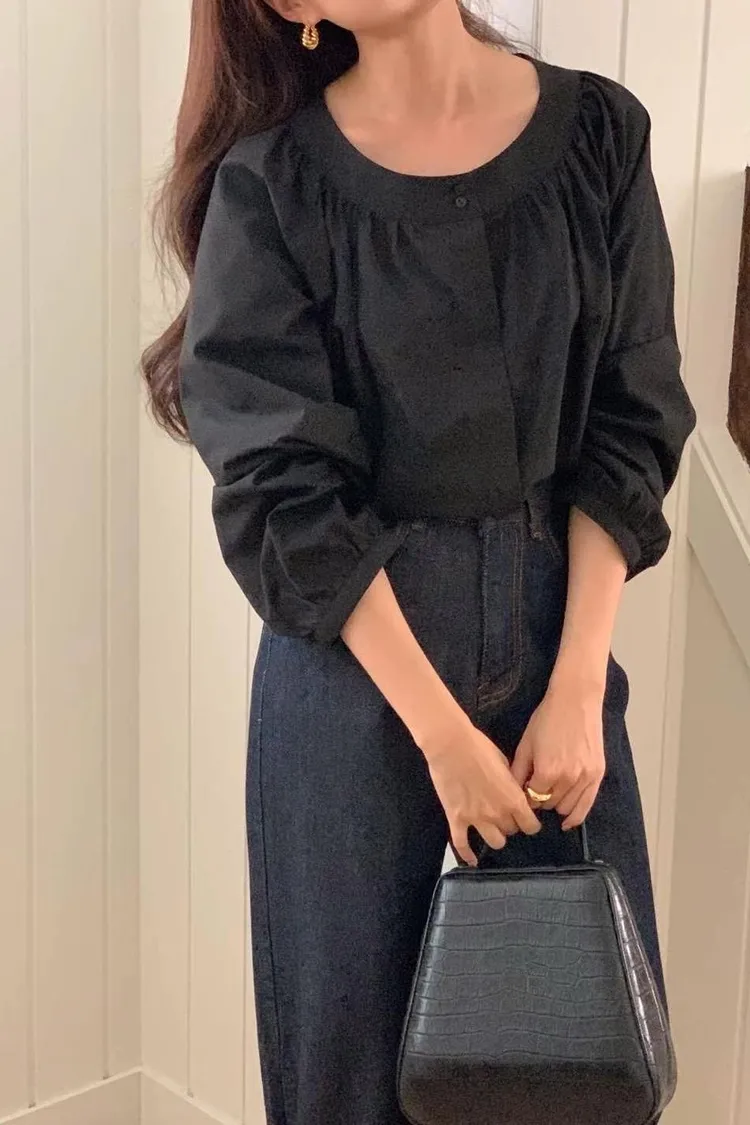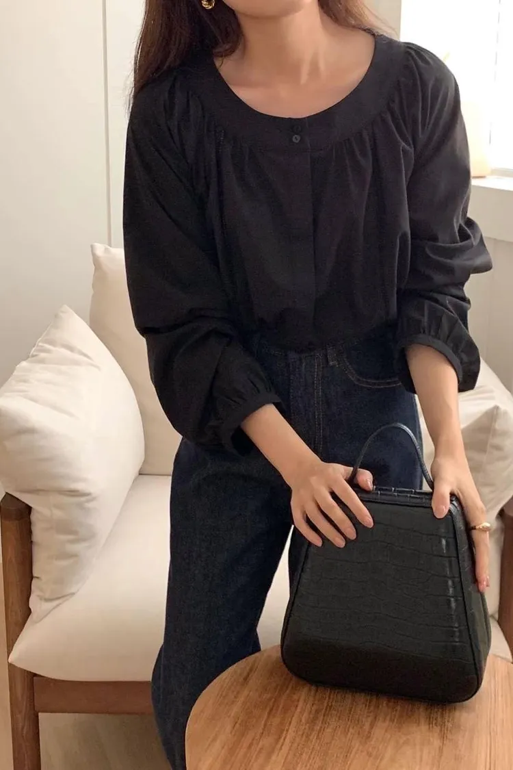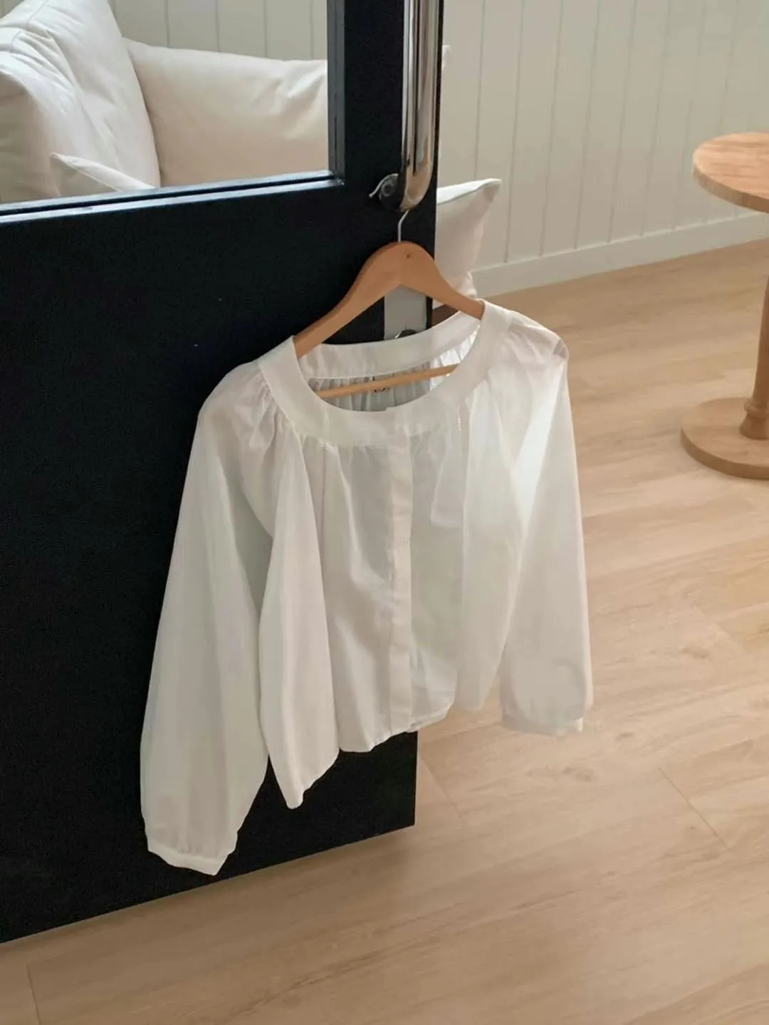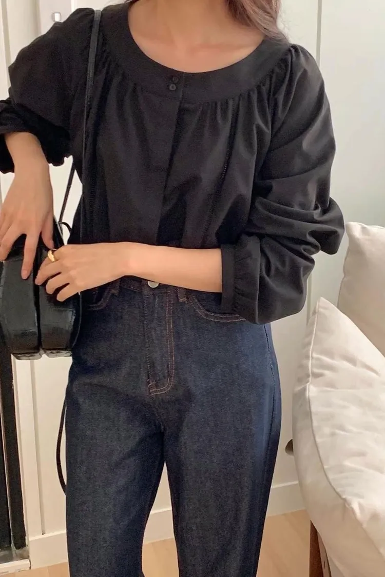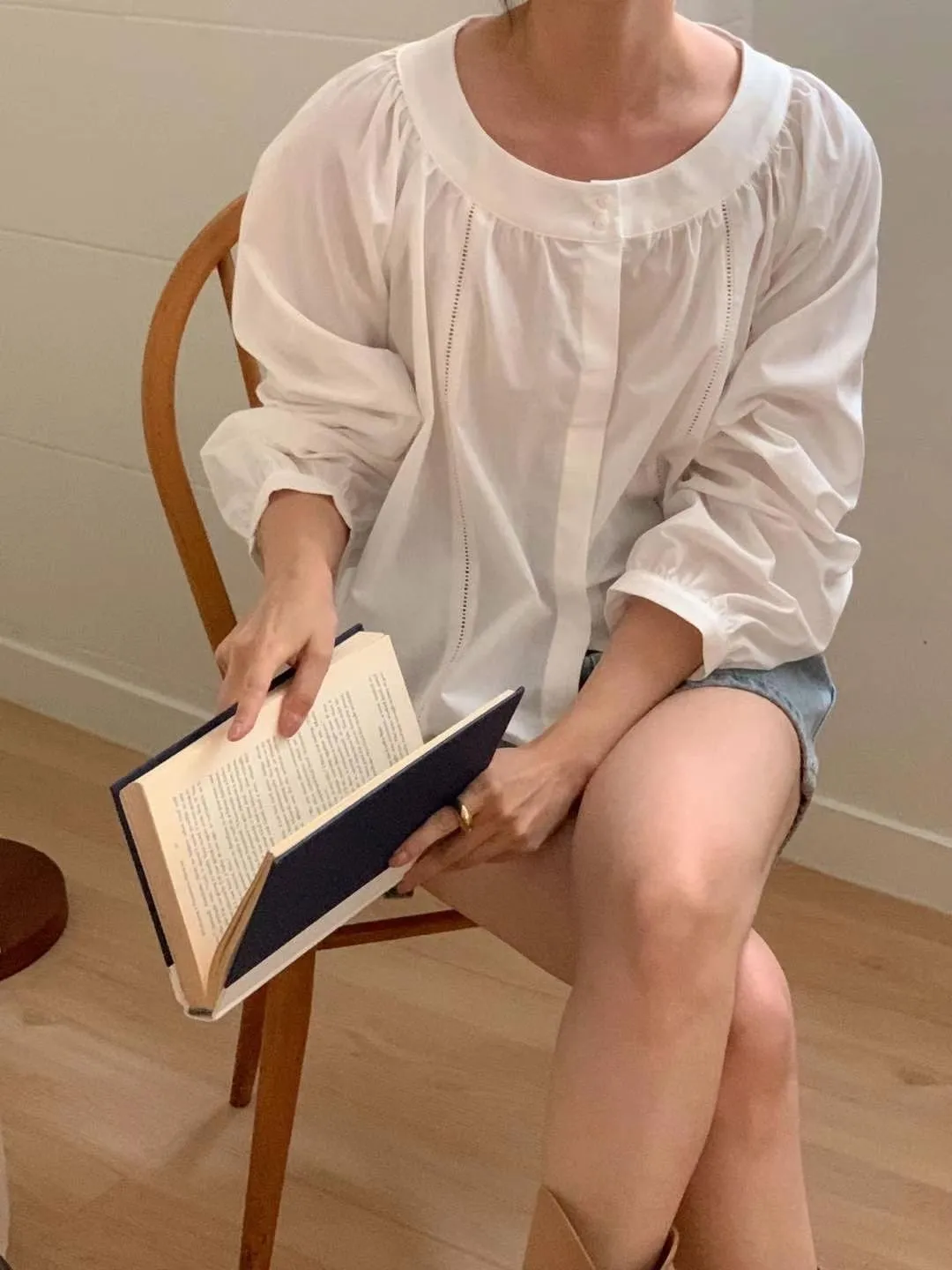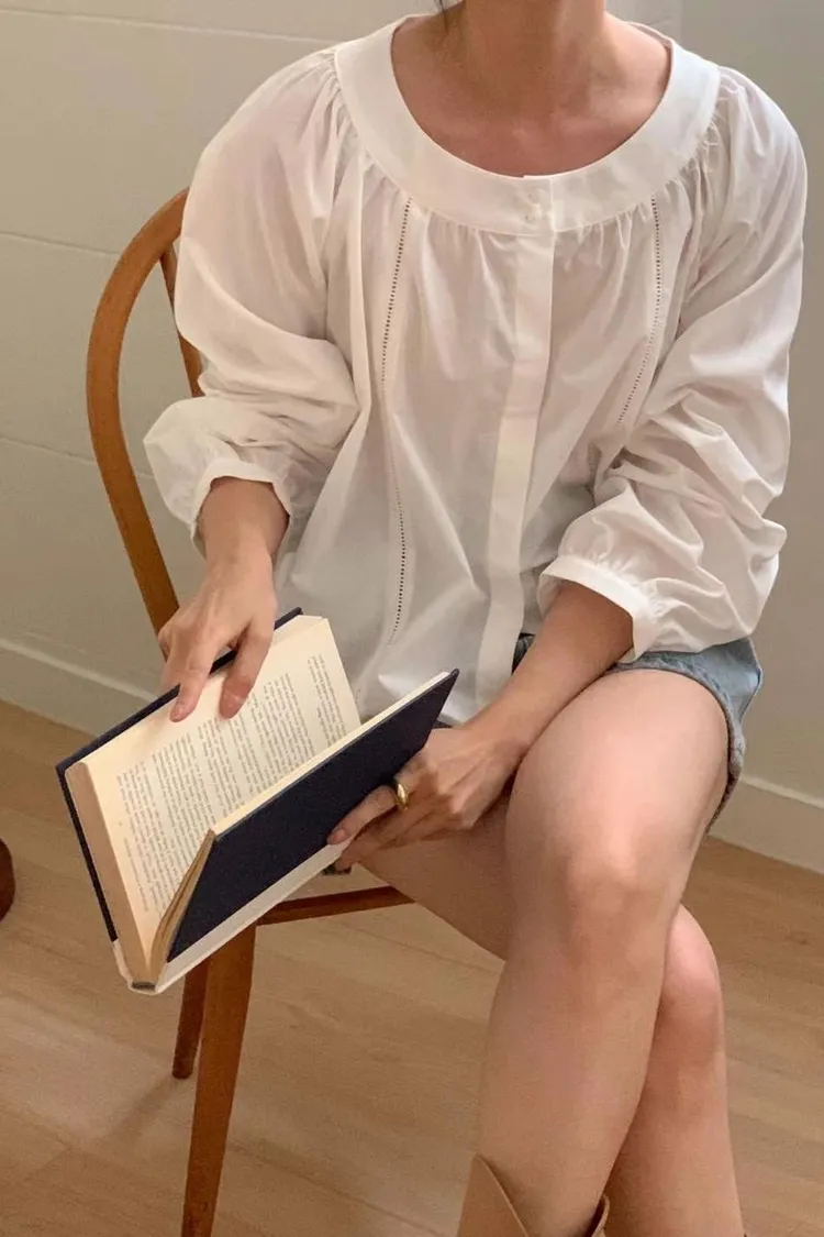 CS889圓領美皺褶階梯蕾絲排釦上衣 白 黑 線上價$769 官網價$799