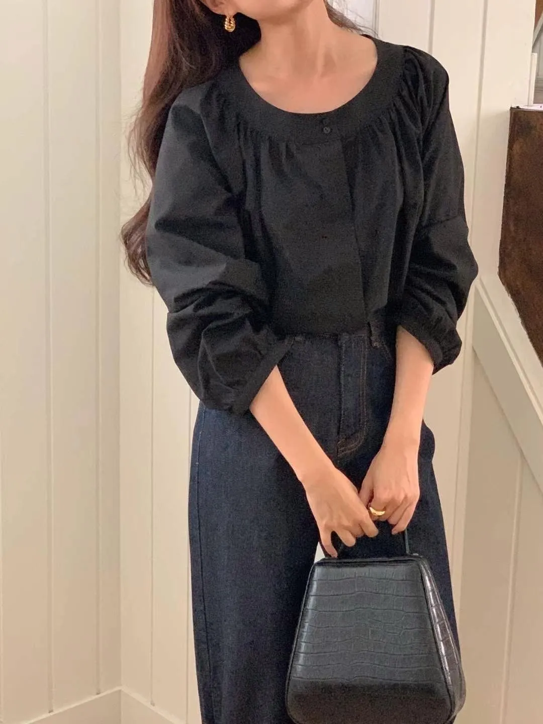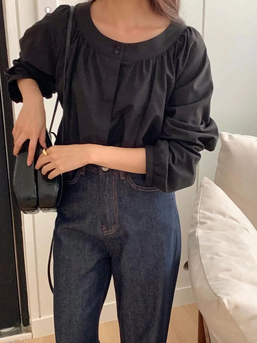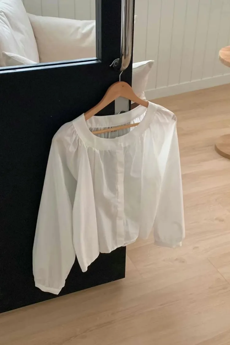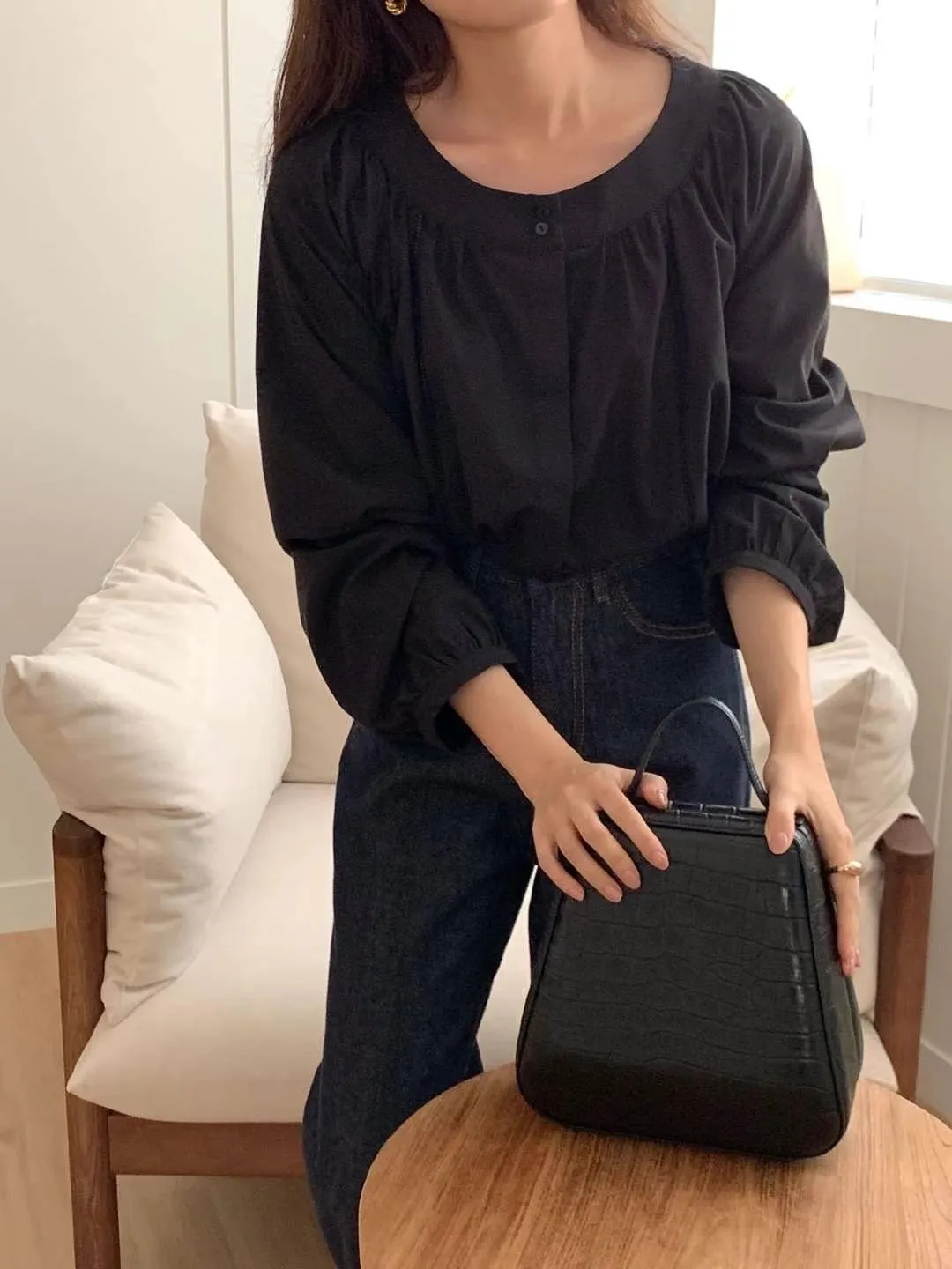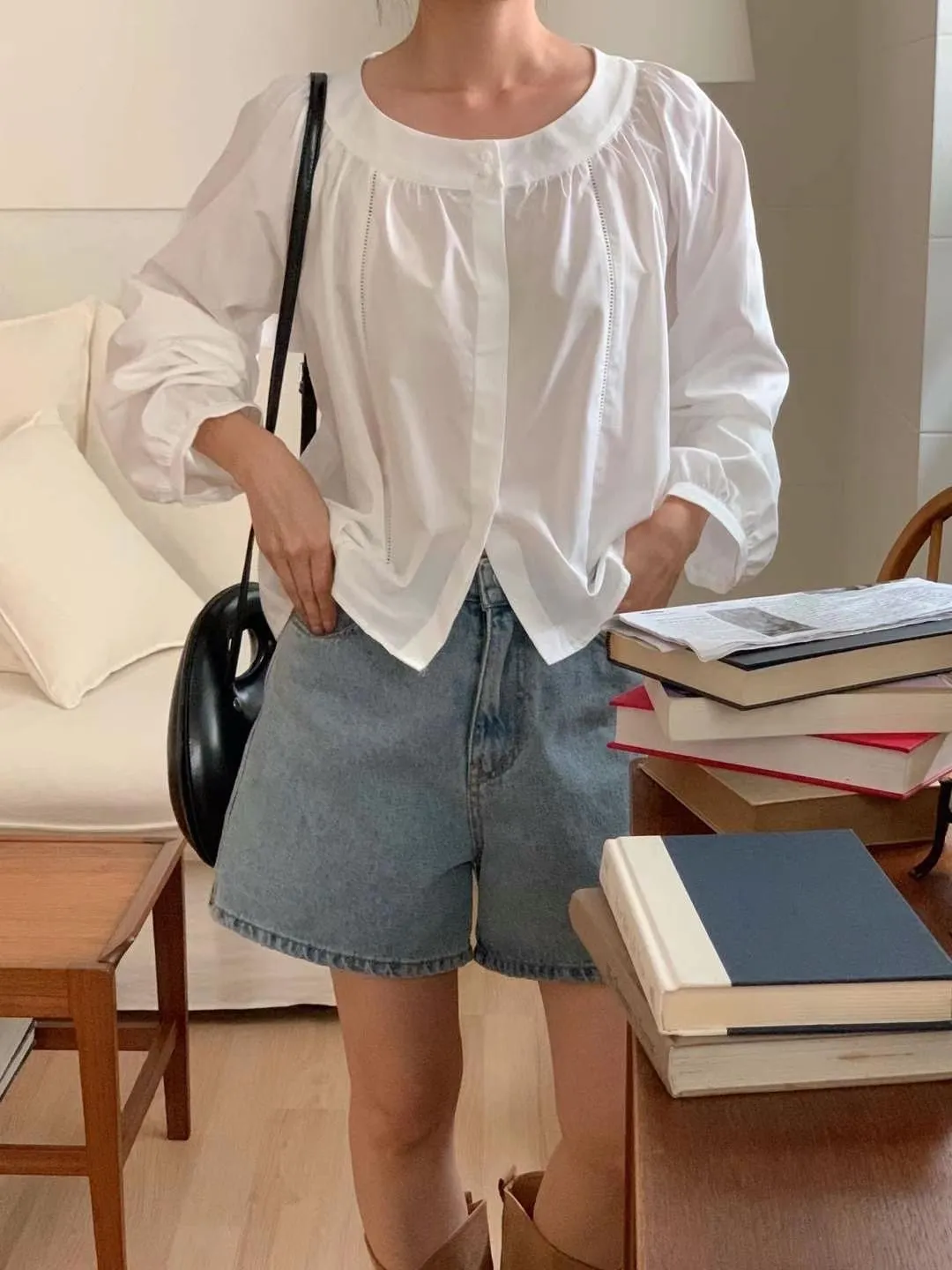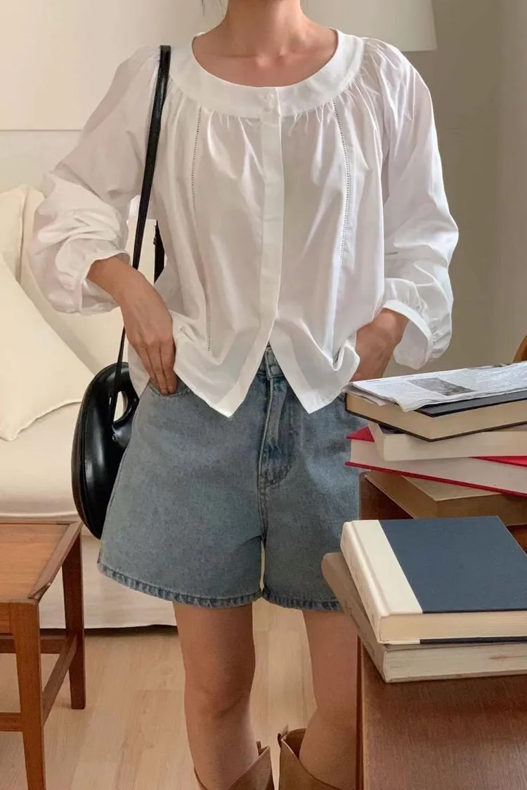 CS889圓領美皺褶階梯蕾絲排釦上衣 白 黑 線上價$769 官網價$799