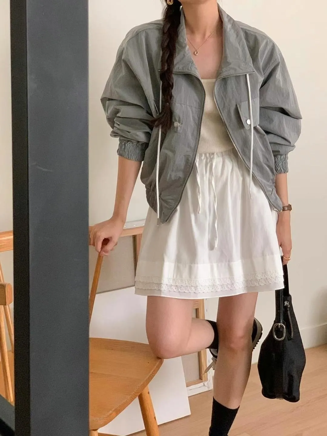 CS891許願款輕盈短版飛行外套 白 灰 黑 線上價$1300 官網價$1330