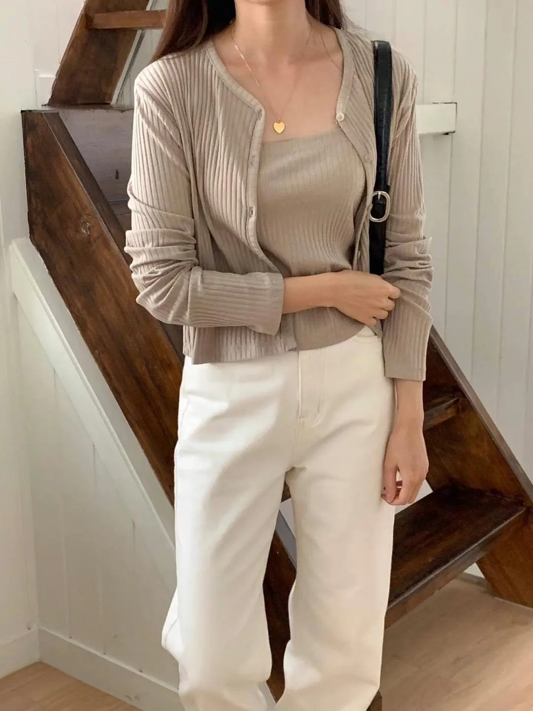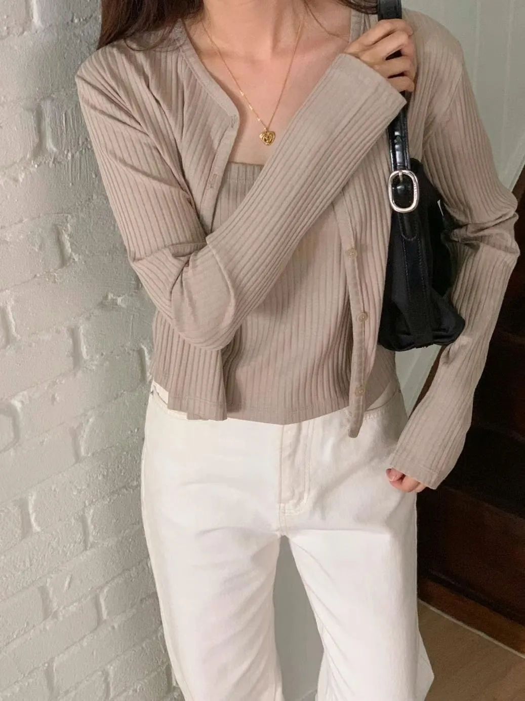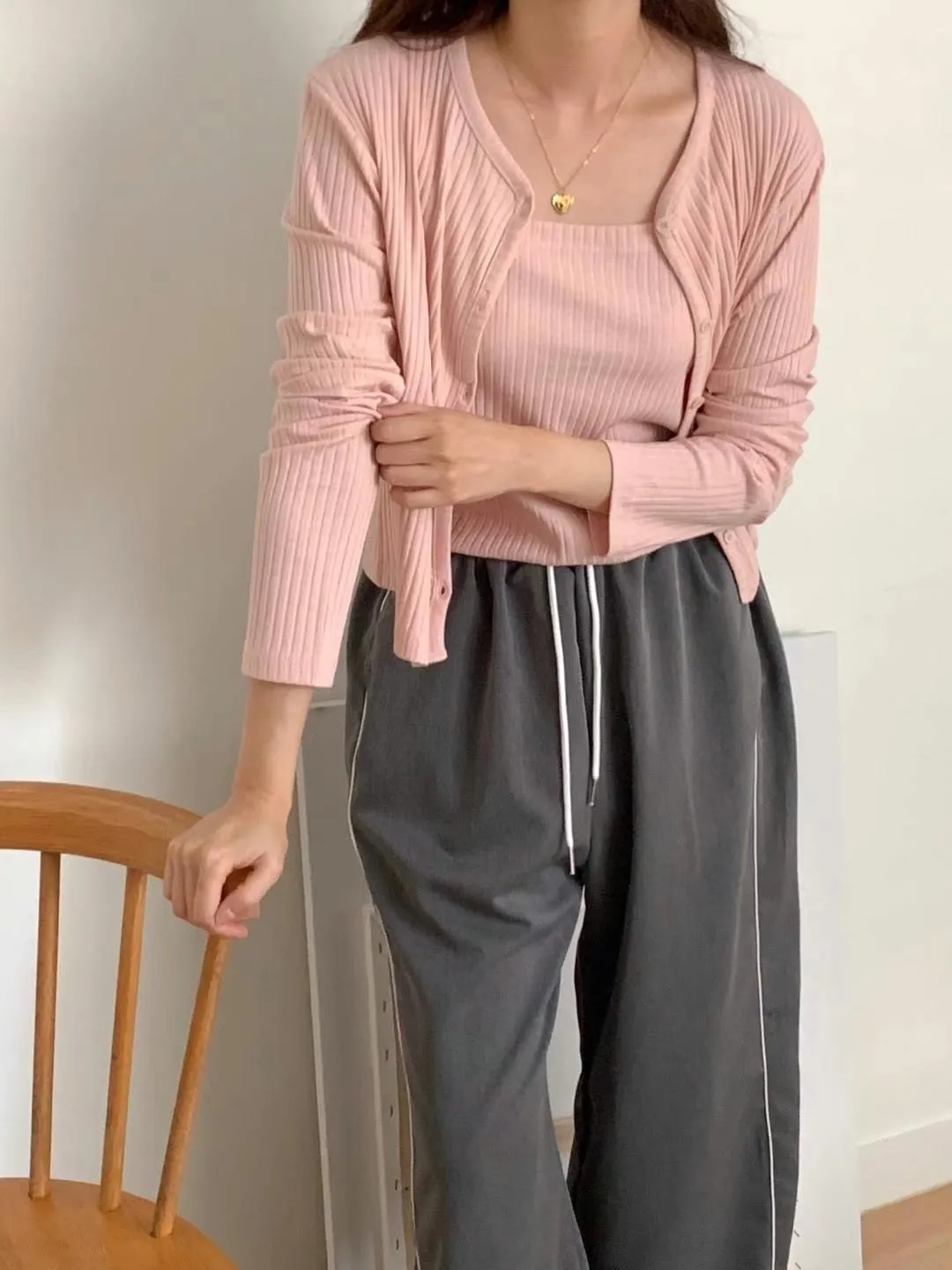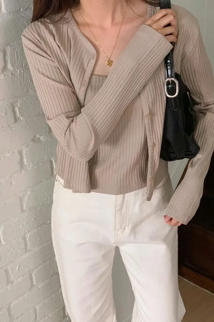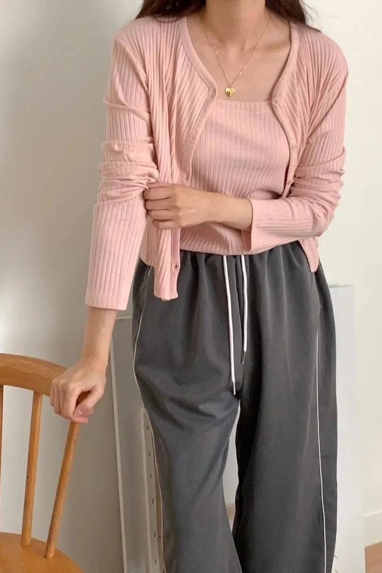 CS893莫代爾棉套裝組(小可愛+外套) 米 粉 奶茶 黑 線上價$630官網價$660