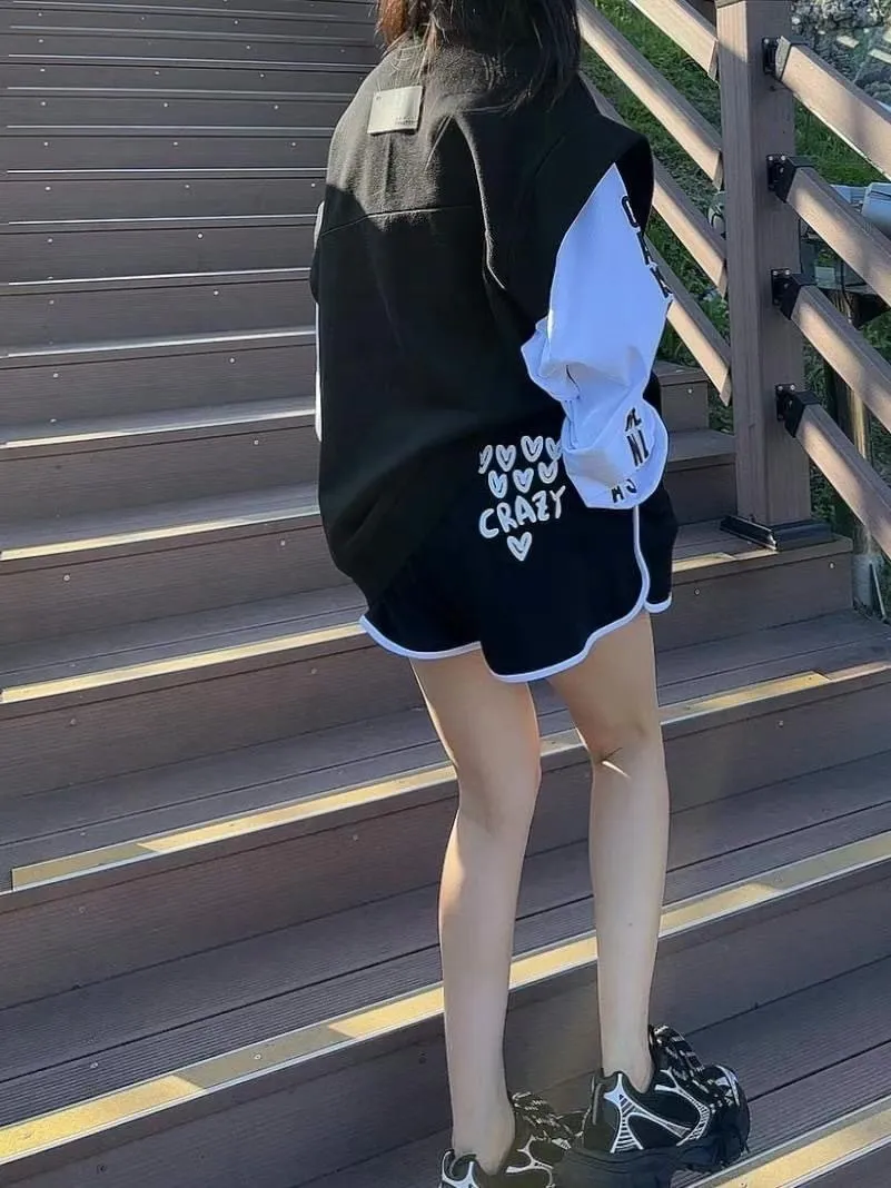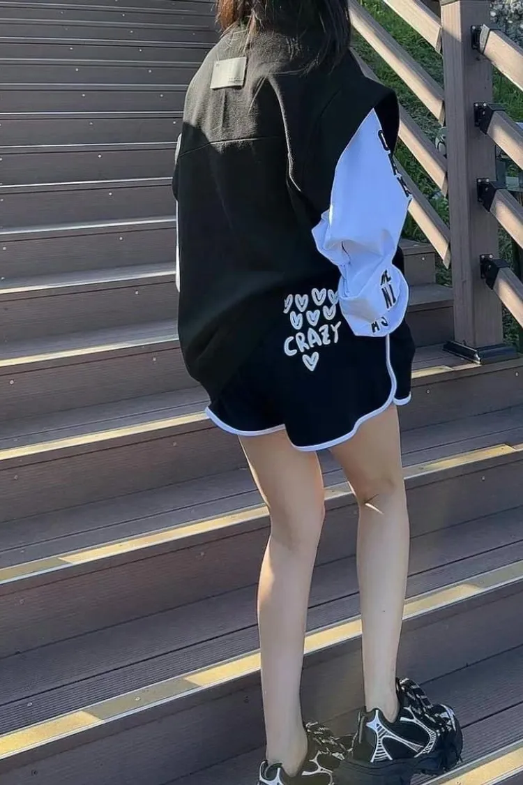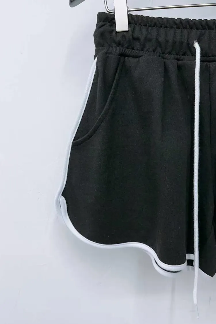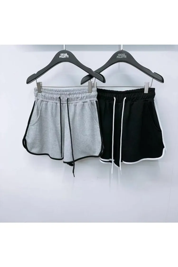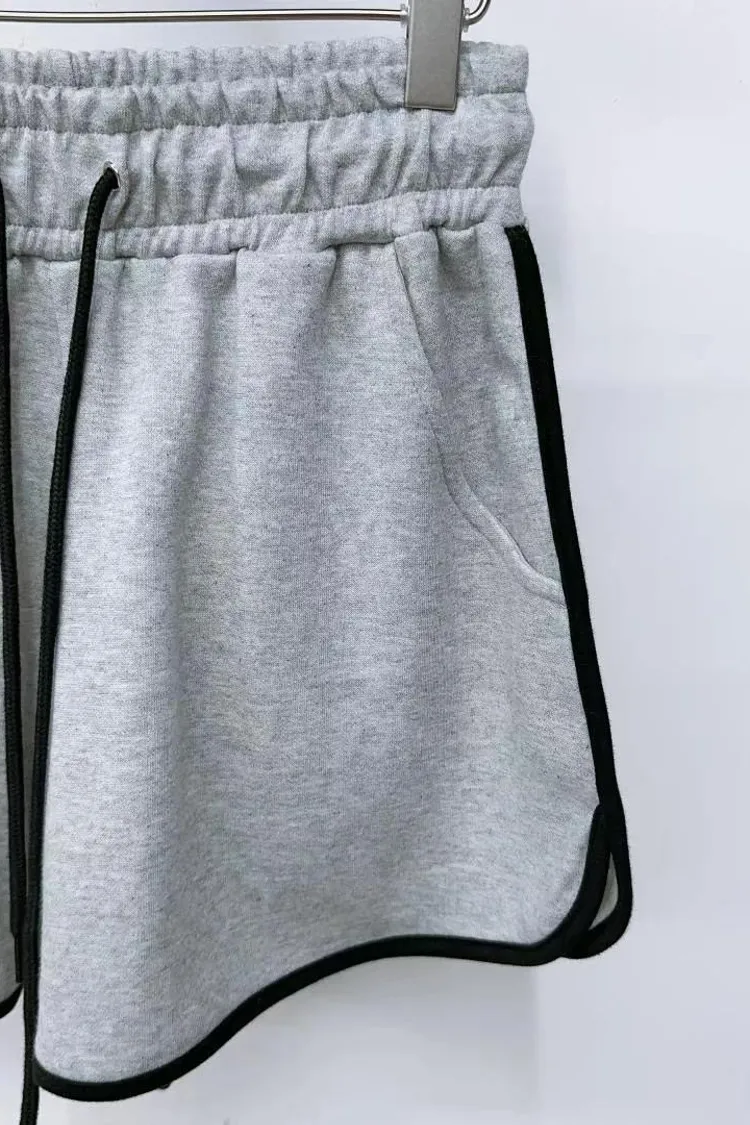 CS912套裝的腰抽繩滾邊跳色休閒短褲 灰 黑 線上價$510 官網價$560