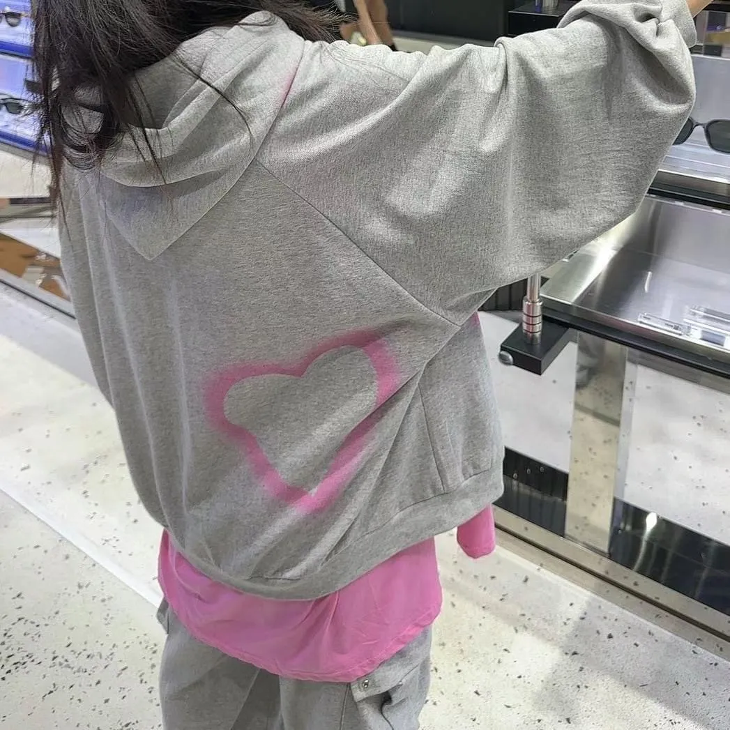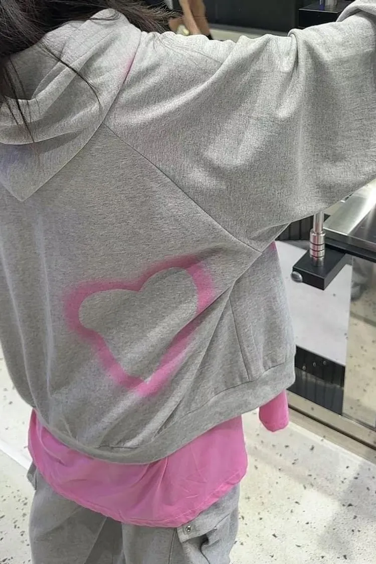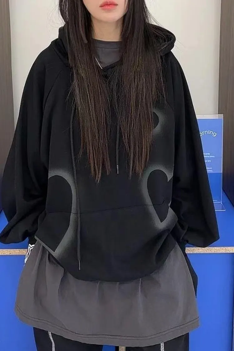 CS914噴漆塗鴉愛心潮流帽T 灰 黑 線上價$1070 官網價$1120