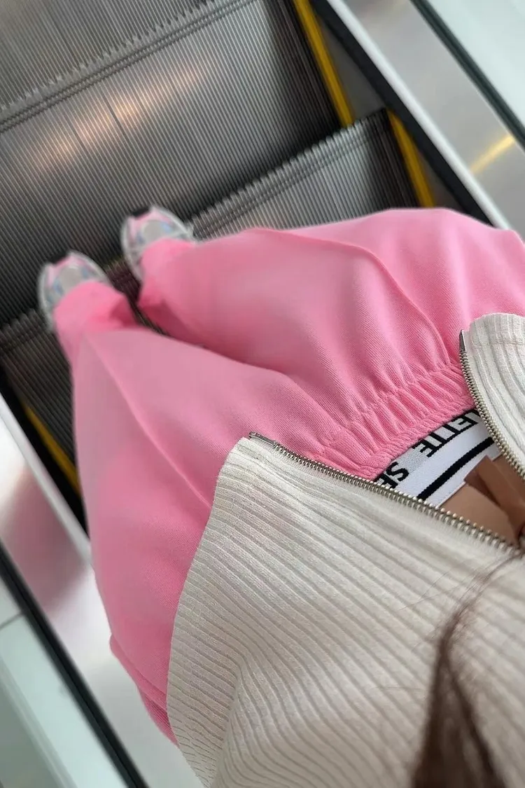 CS915英文跳色腰圈設計感長褲 粉 灰 黑 線上價$770 官網價$820