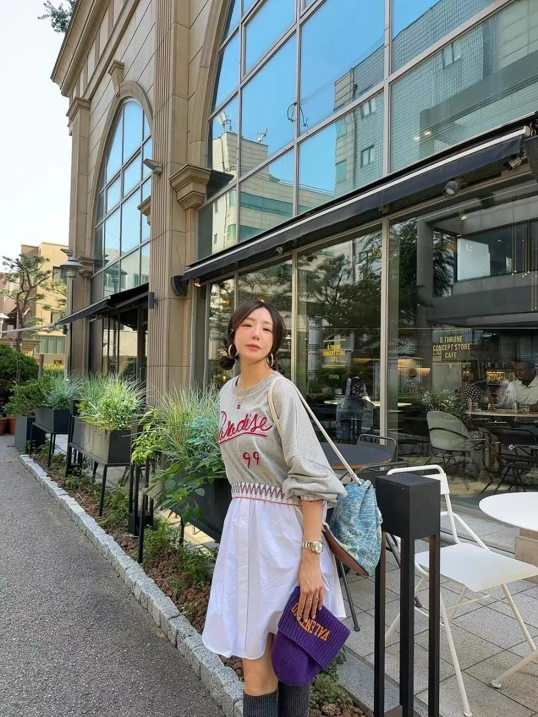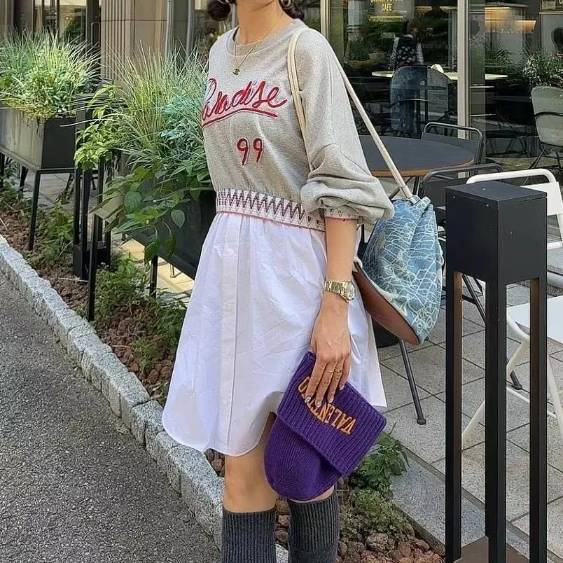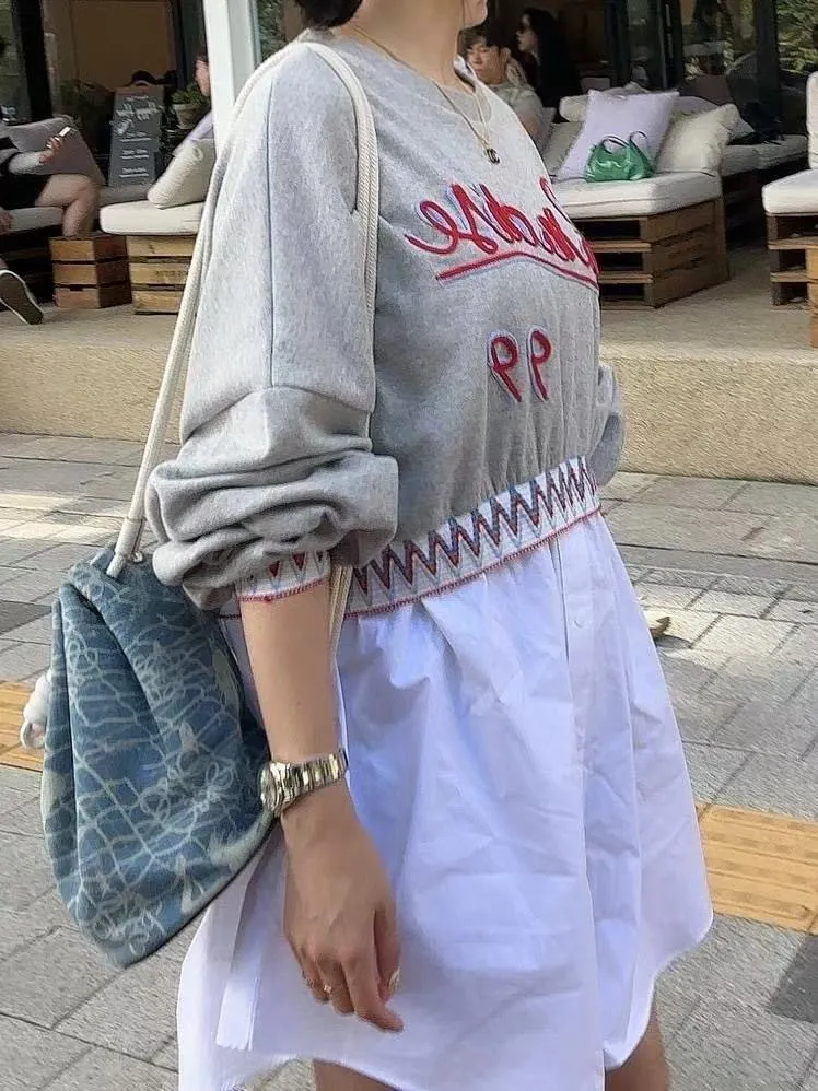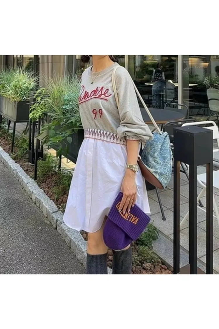 CS920立體雙色織線英文拼接洋裝 灰 藍 線上價$1140 官網價$1190