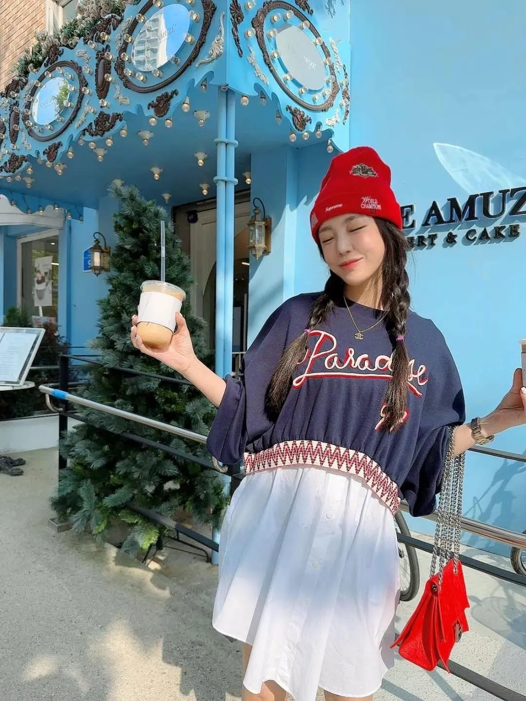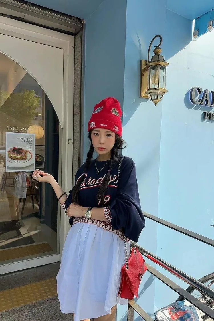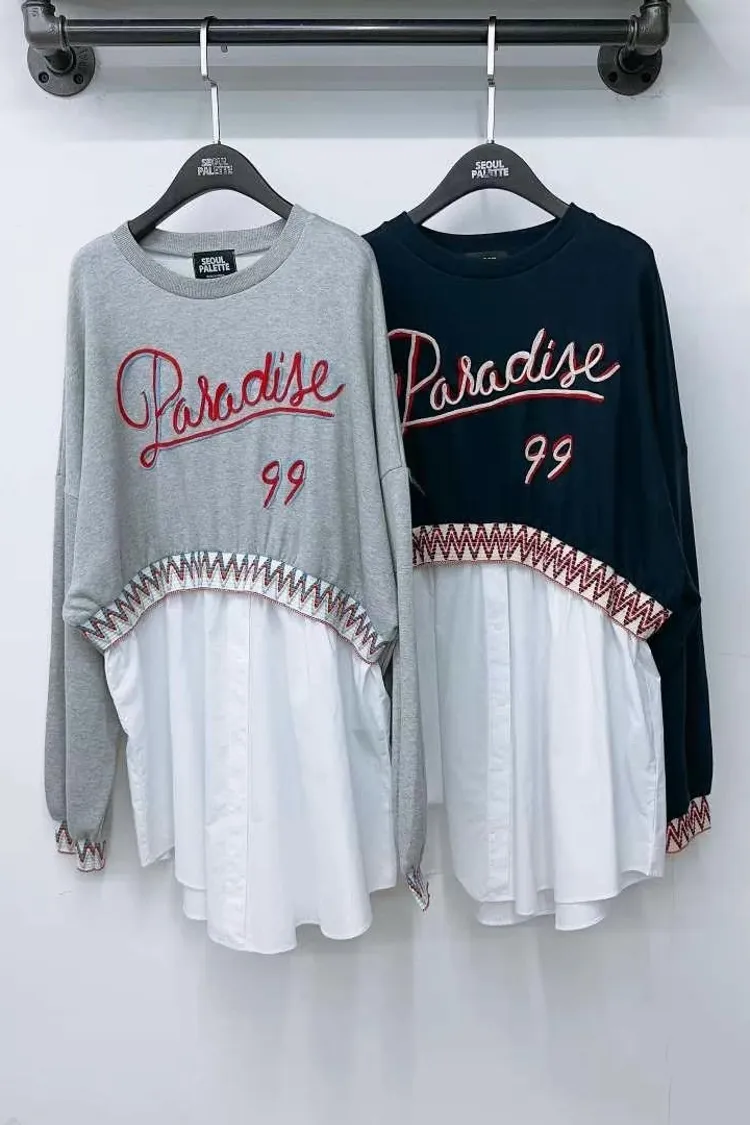 CS920立體雙色織線英文拼接洋裝 灰 藍 線上價$1140 官網價$1190