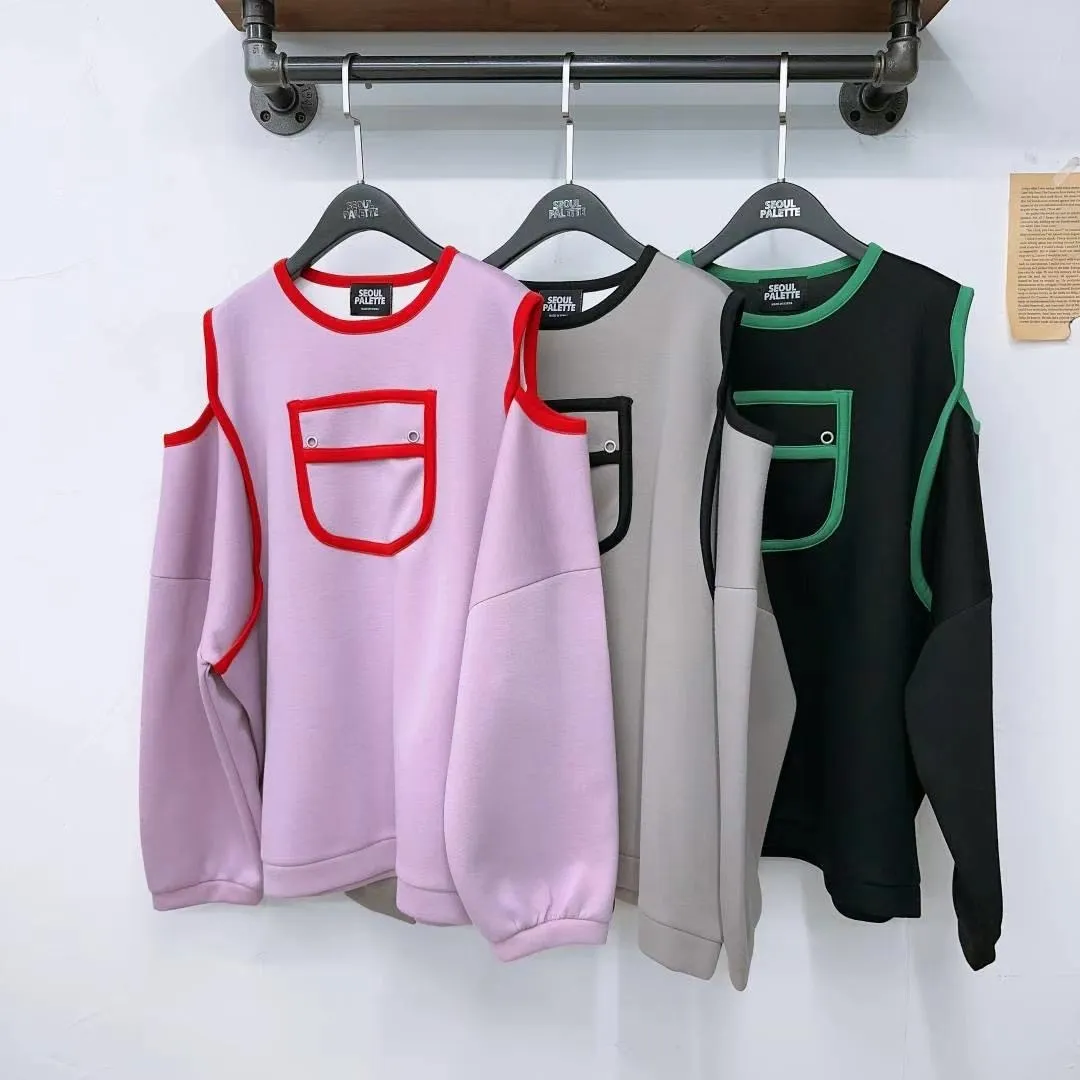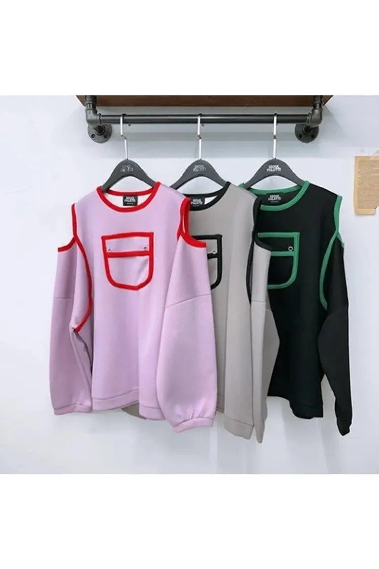 CS928熱銷款跳色口袋簍肩上衣 粉 咖 黑 線上價$910 官網價$960