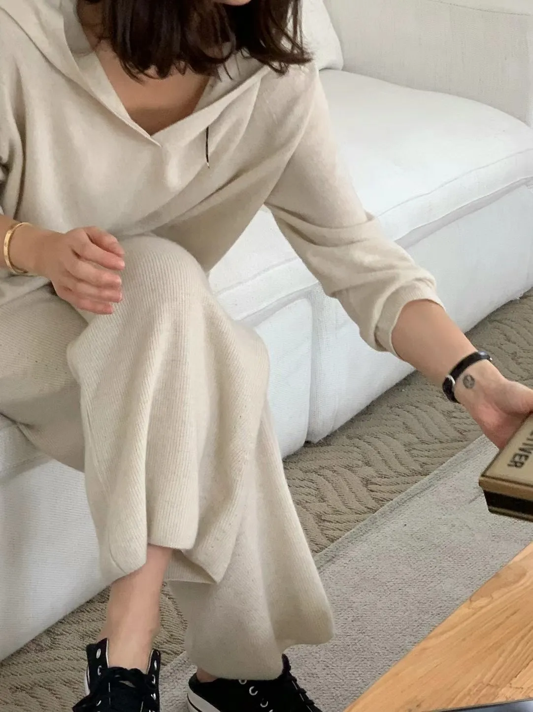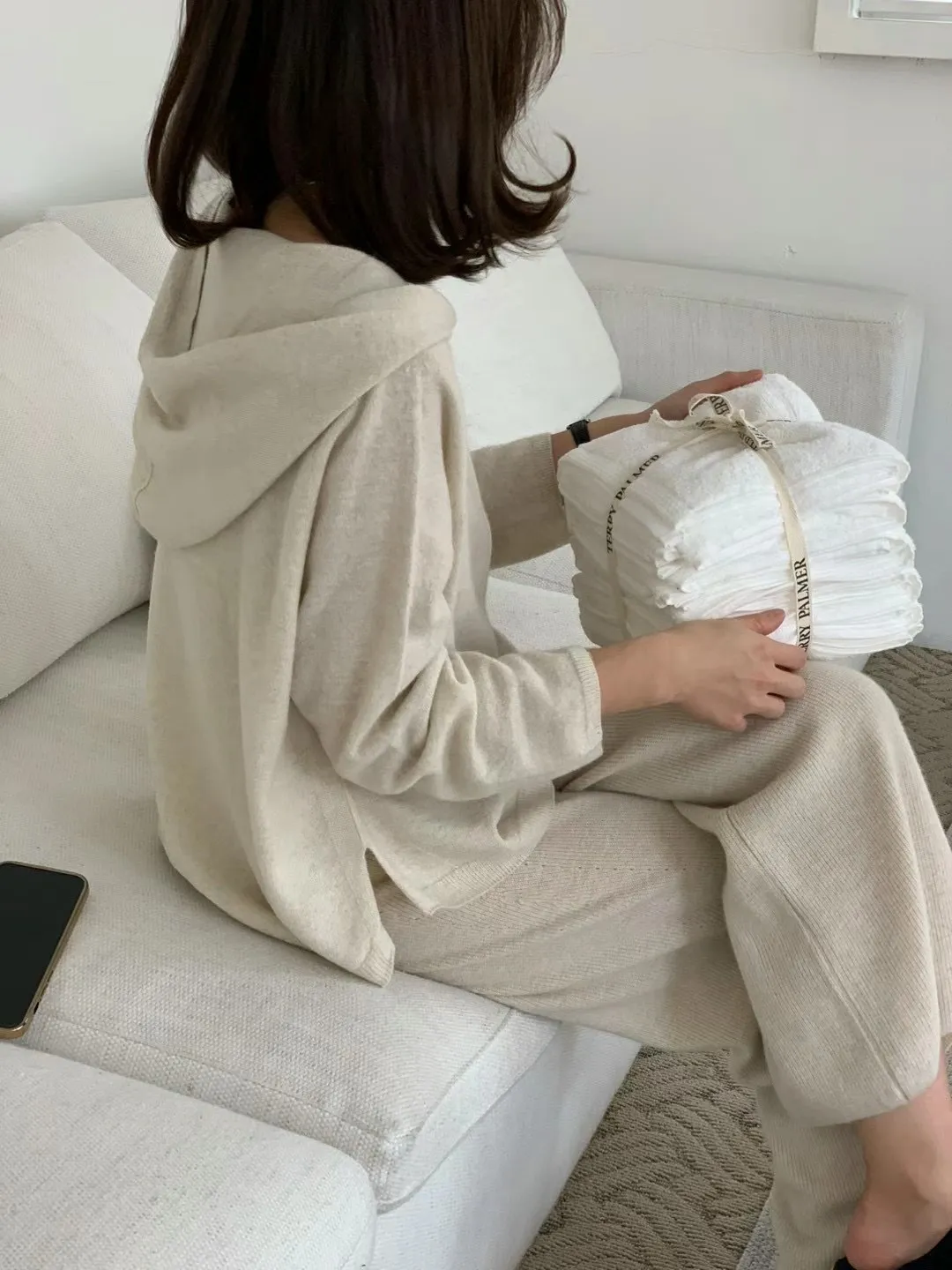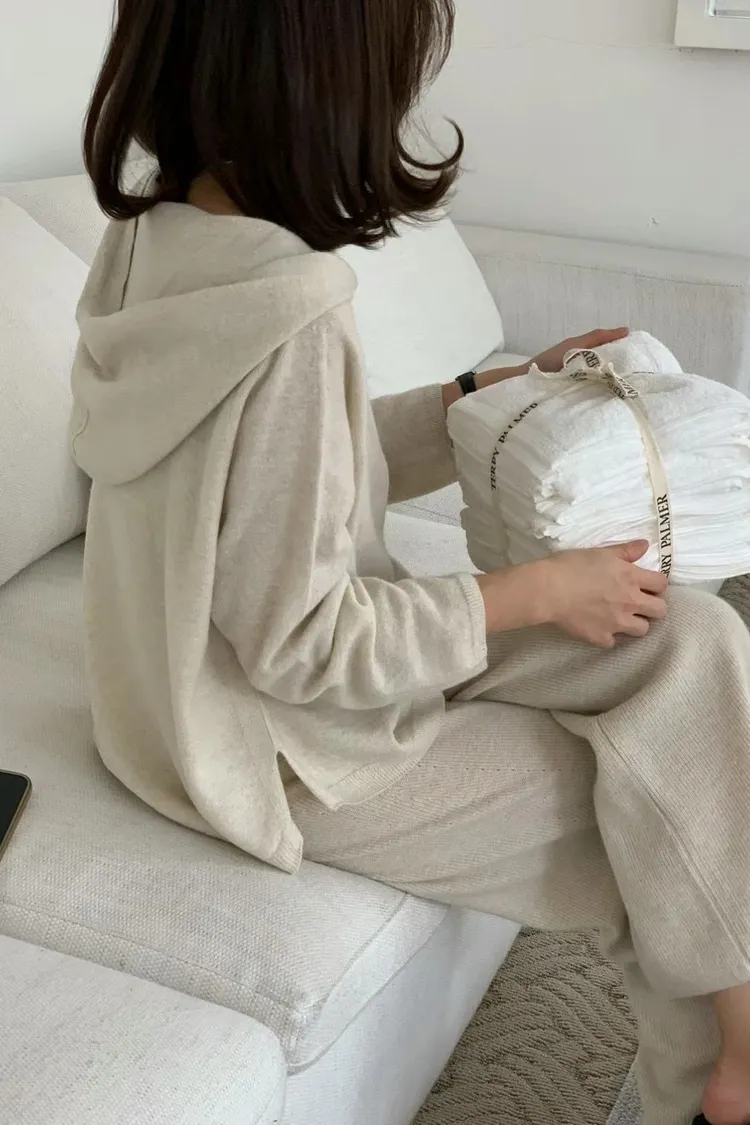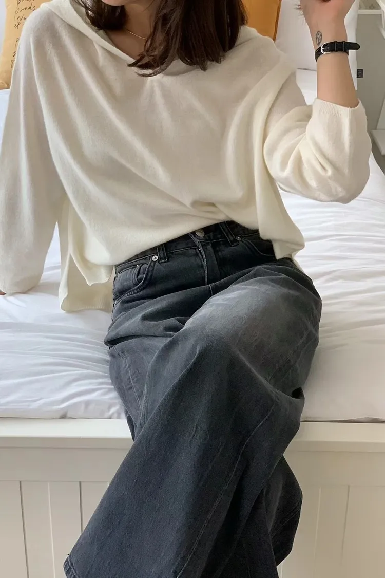 羊毛一體成形 薄款保暖 休閒感大帽子 側開叉 前短後長 空間感顯瘦