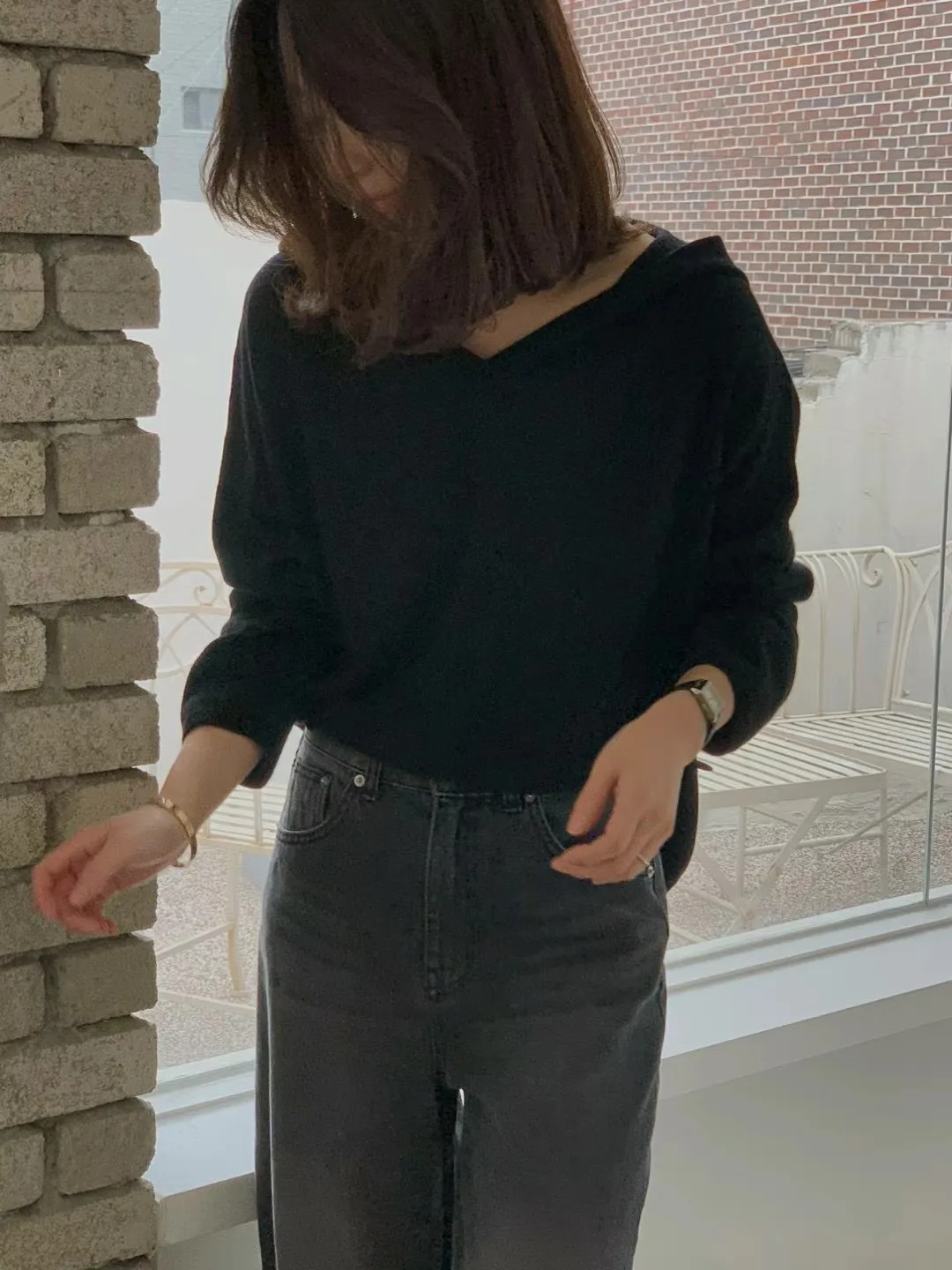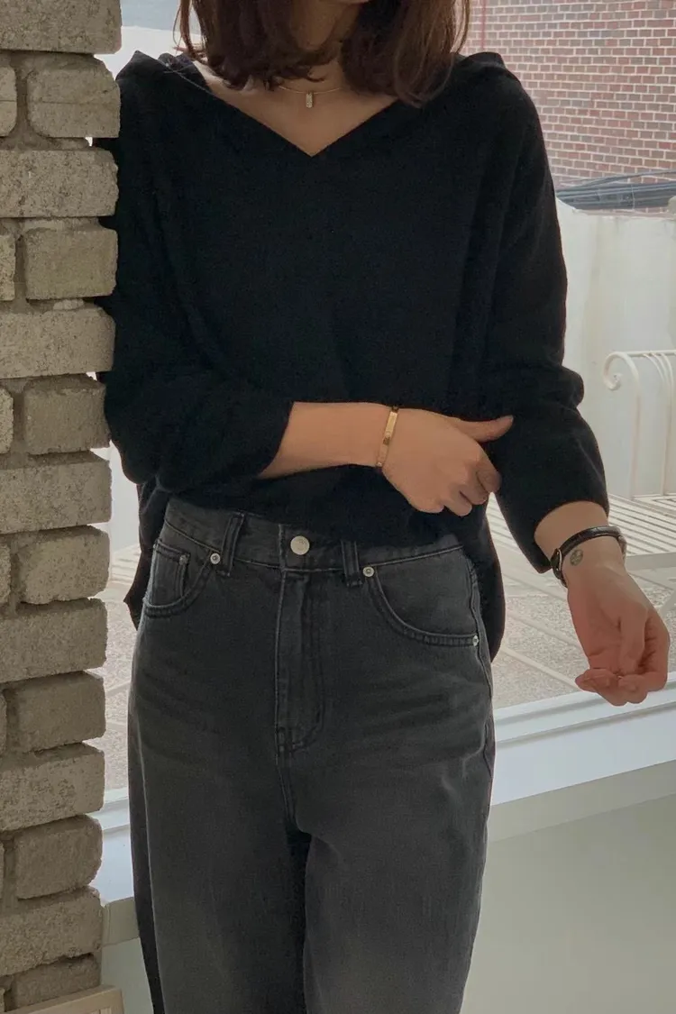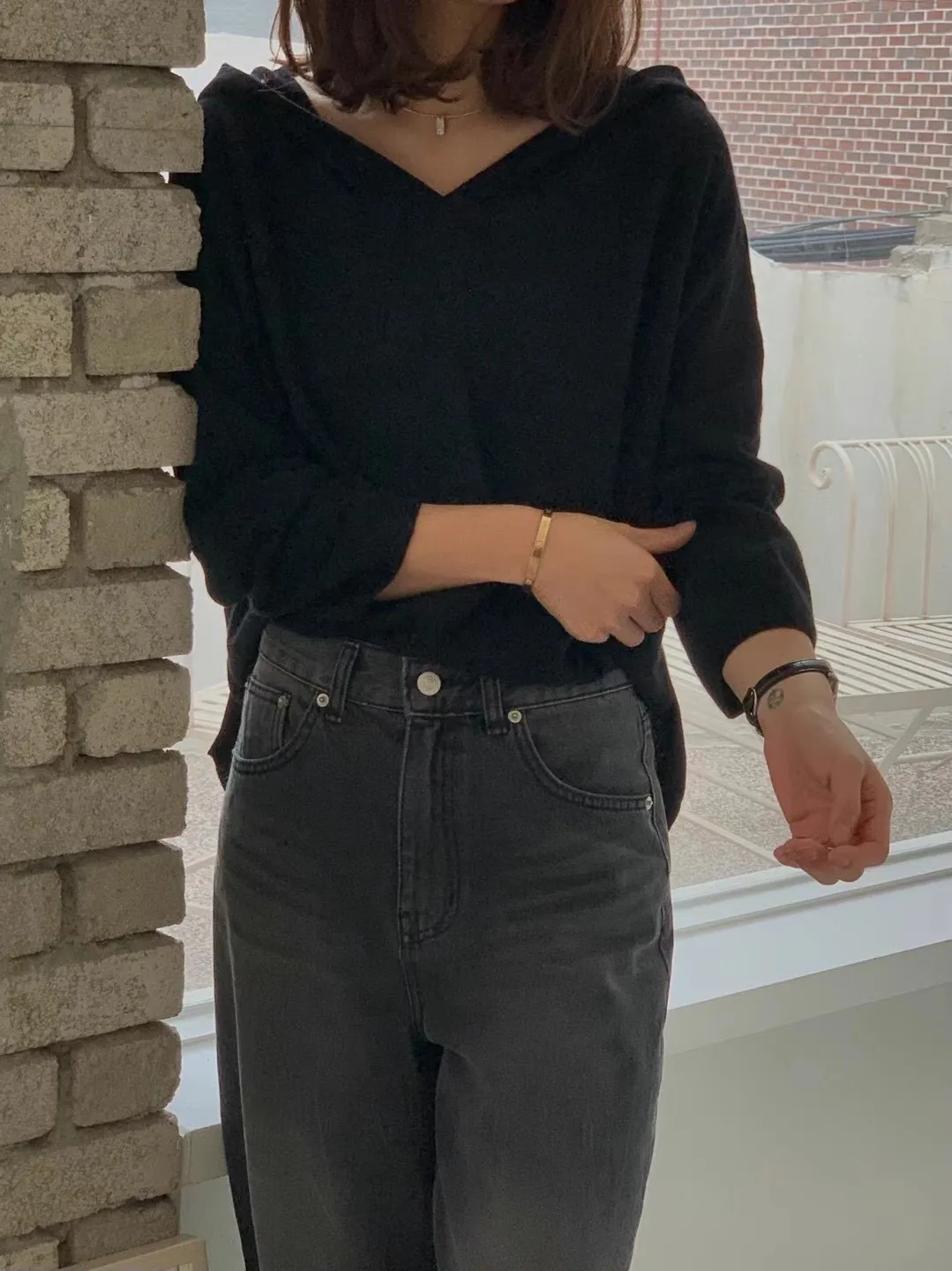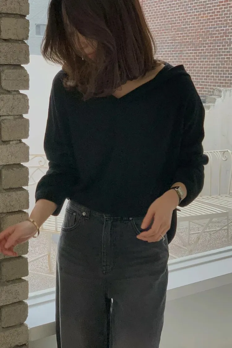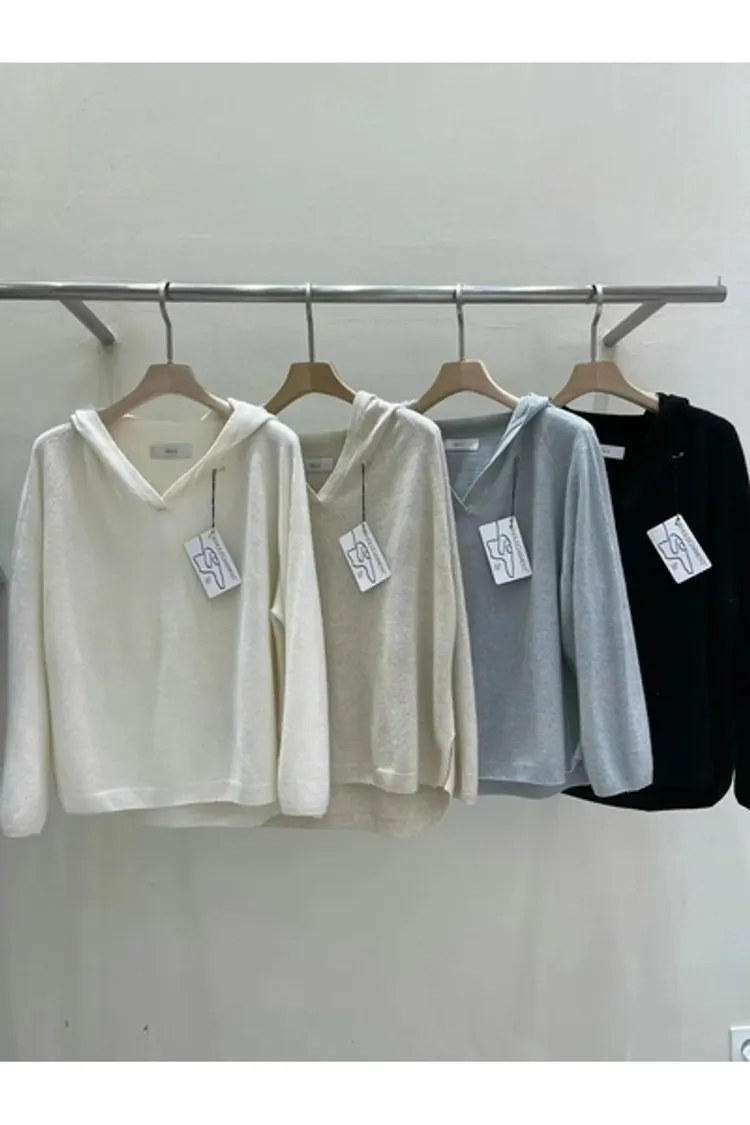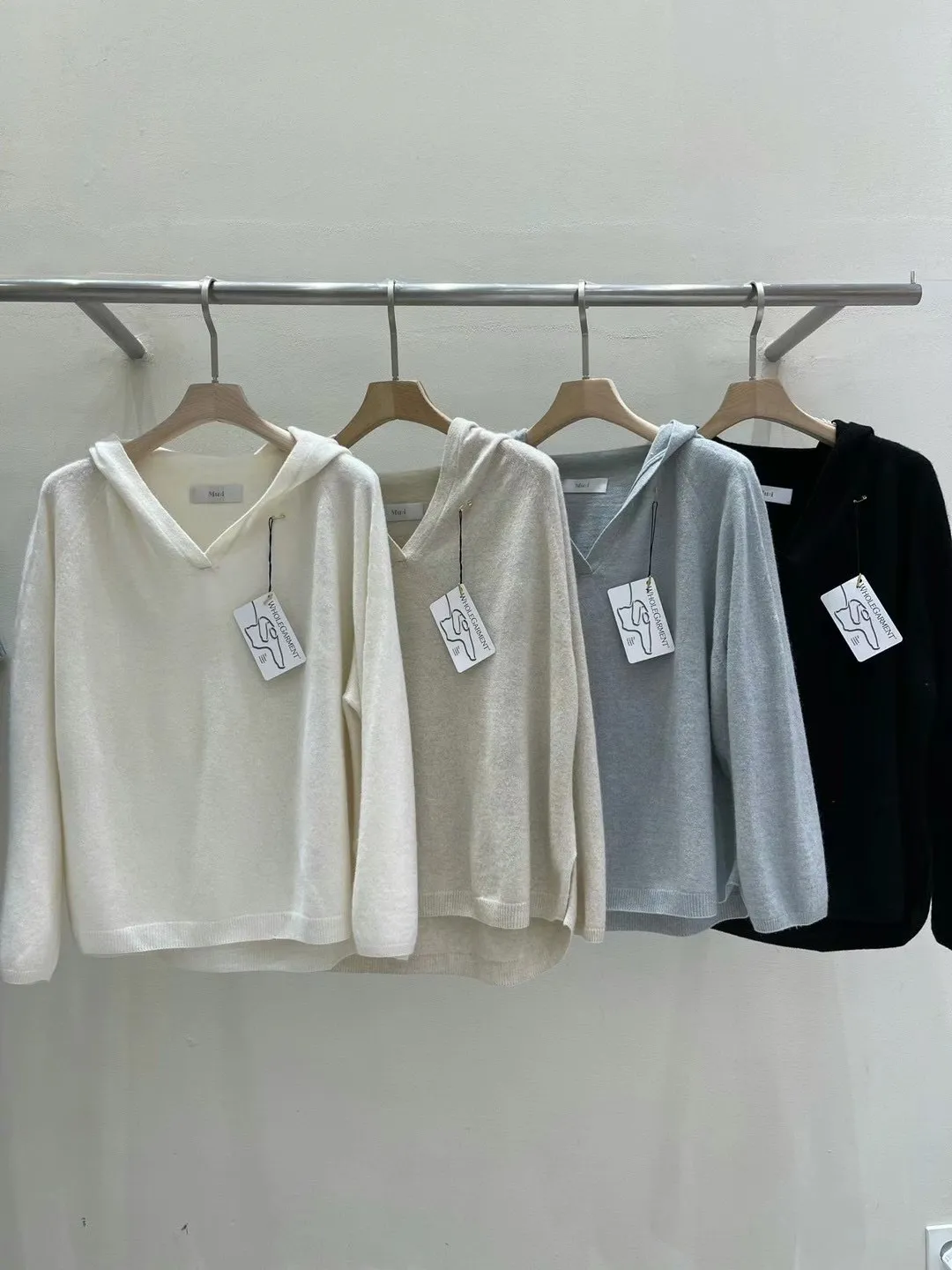 CS945高級感羊毛V領連帽上衣 米 奶茶 藍 黑 線上價$1610 官網價$1640