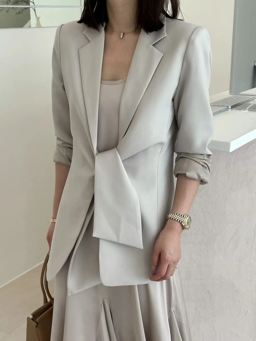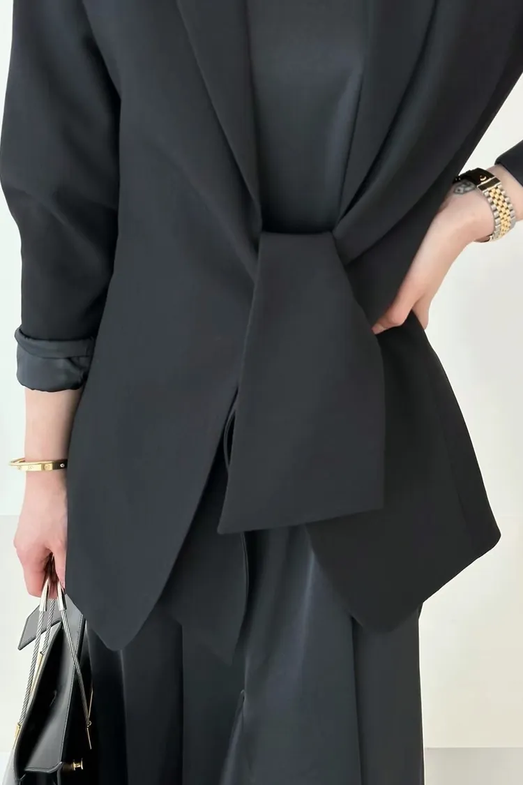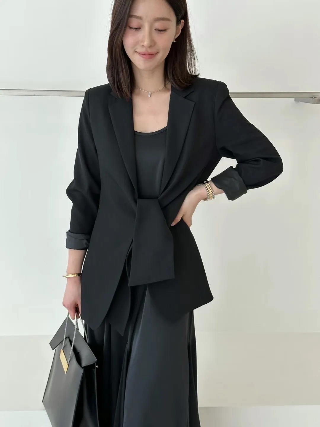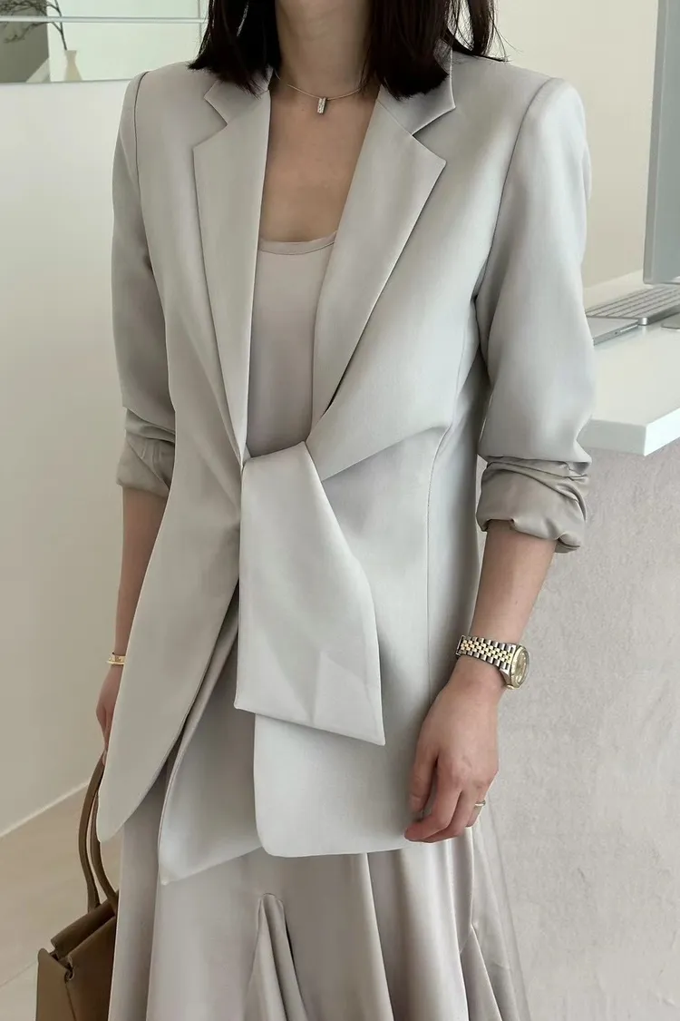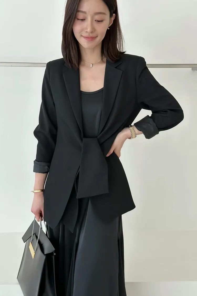 CS948雪紡輕盈前綁帶西裝外套 米 黑 線上價$1720 官網價$1750