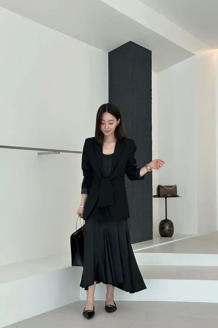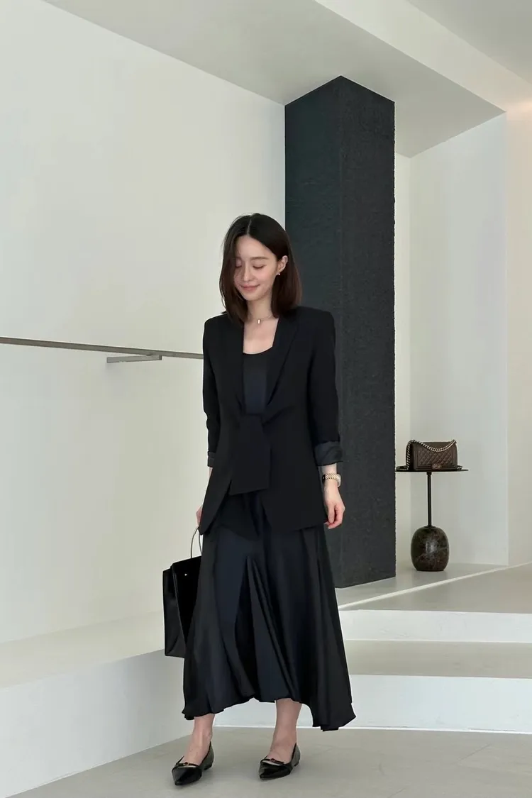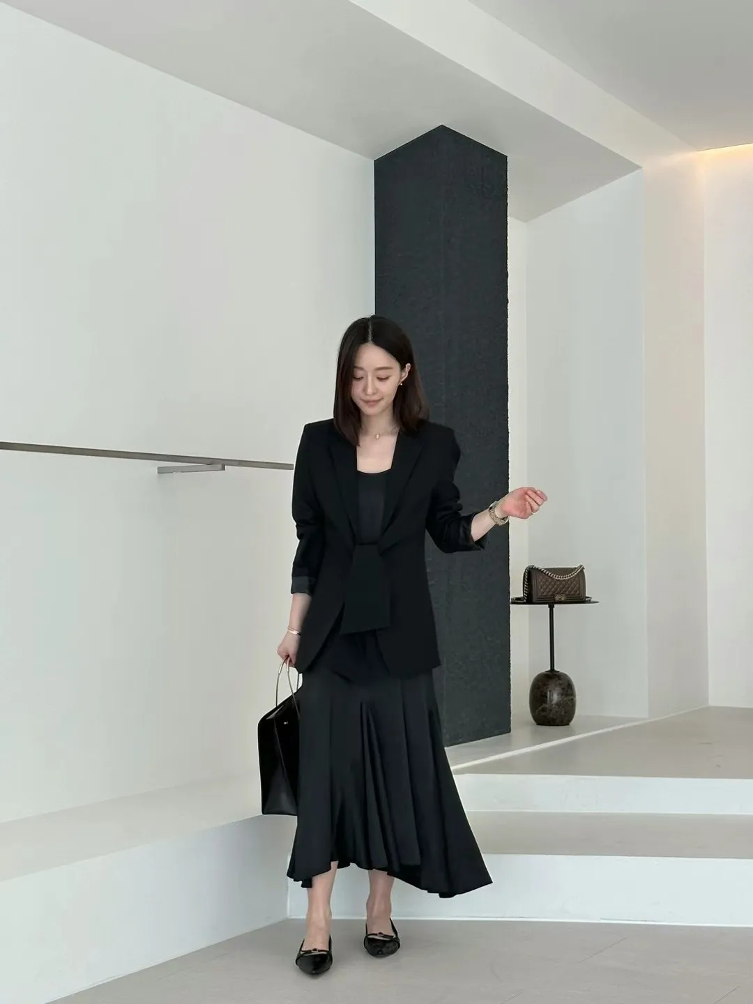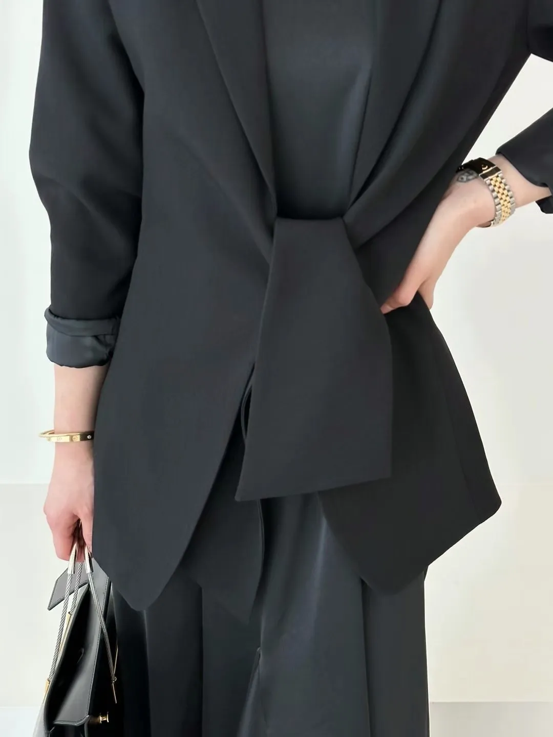 CS948雪紡輕盈前綁帶西裝外套 米 黑 線上價$1720 官網價$1750