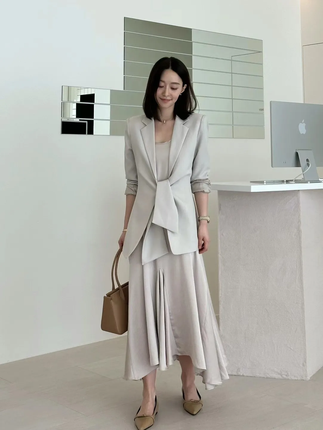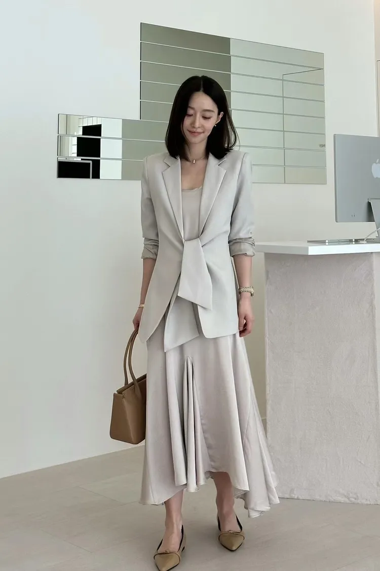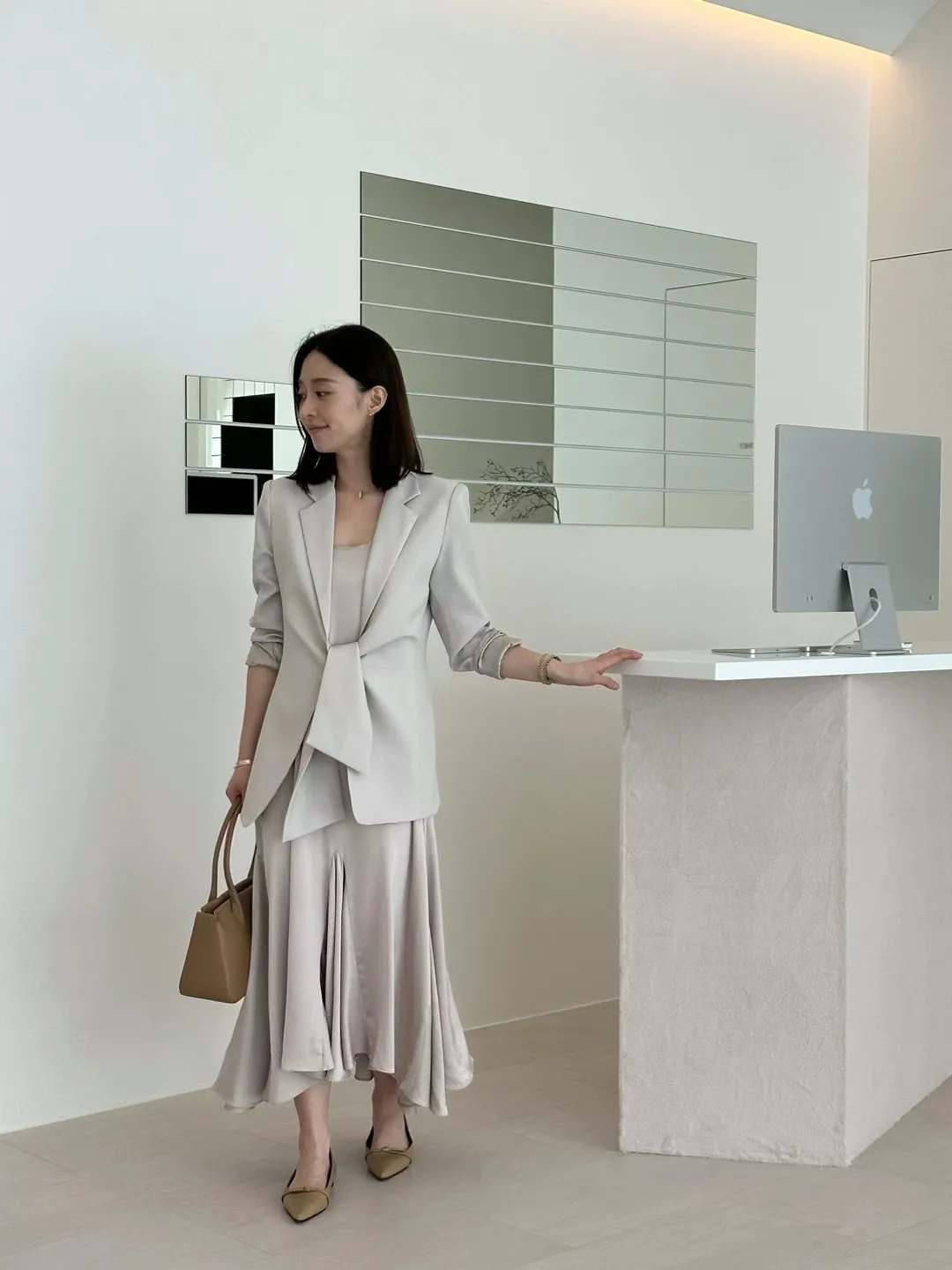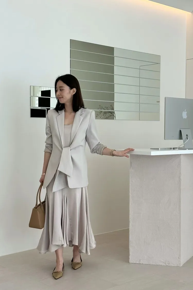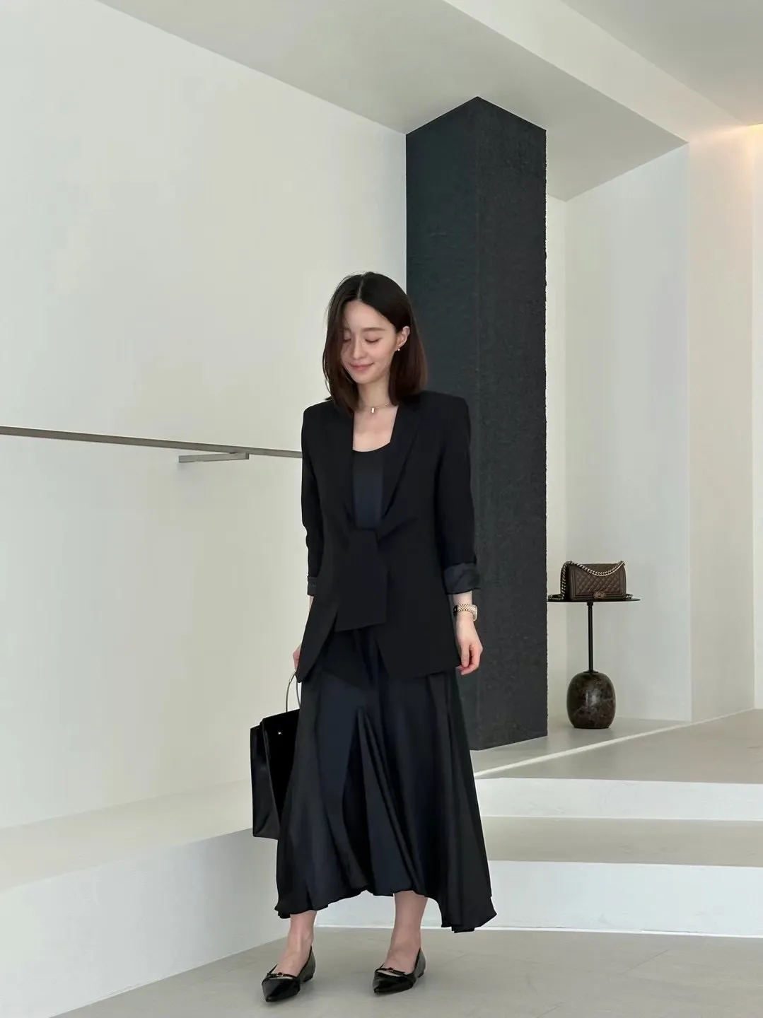 CS948雪紡輕盈前綁帶西裝外套 米 黑 線上價$1720 官網價$1750