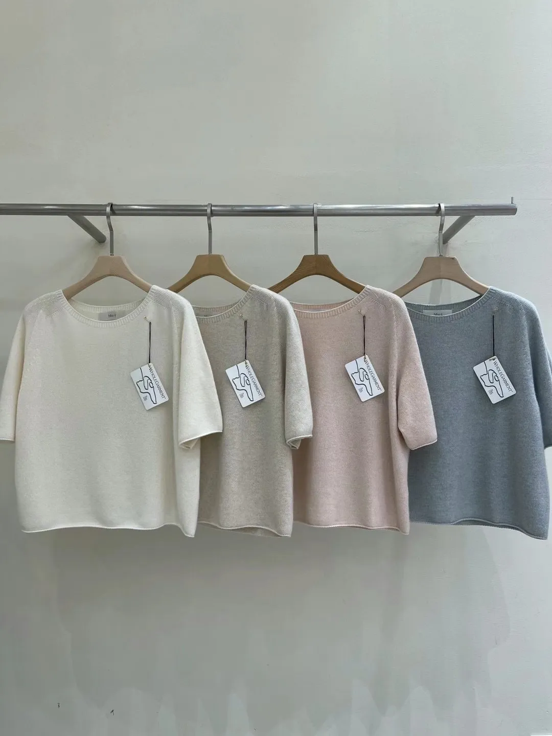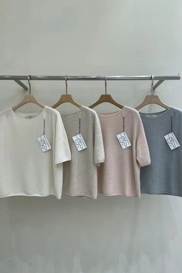 CS951高級一體成形羊毛短袖針織衫 白 米 粉 藍 線上價$1180 官網價$1210