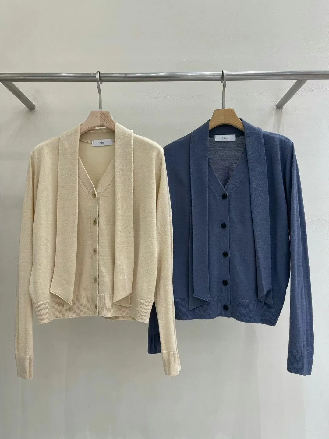 CS954高級胸綁帶羊絨羊毛排釦上衣 米 藍 線上價$ 1180官網價$1210