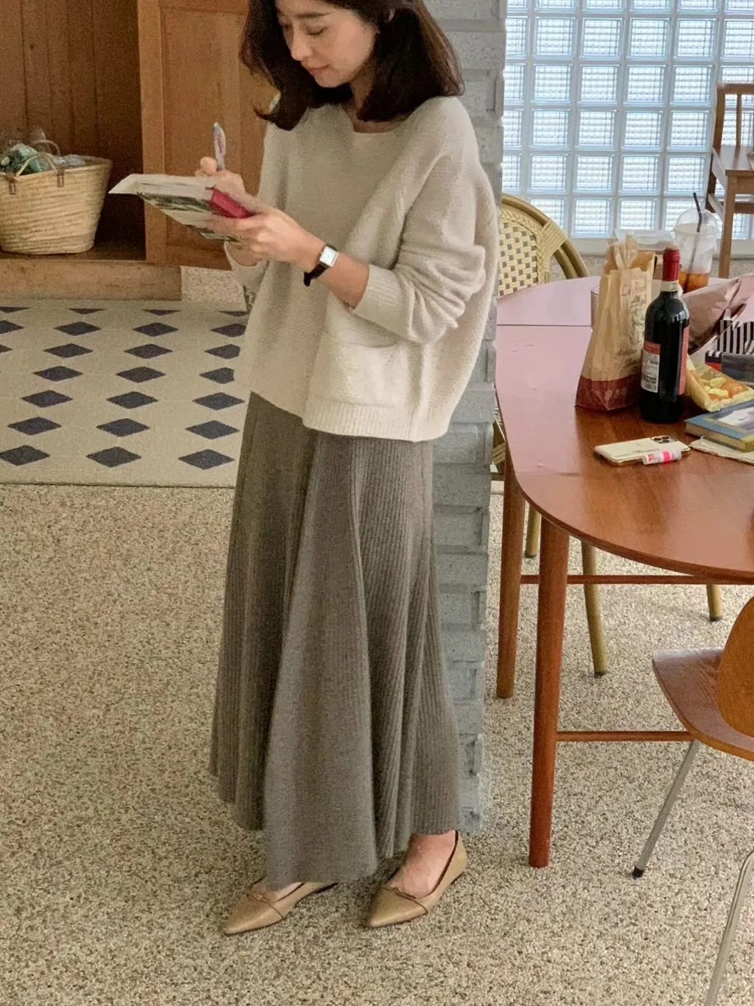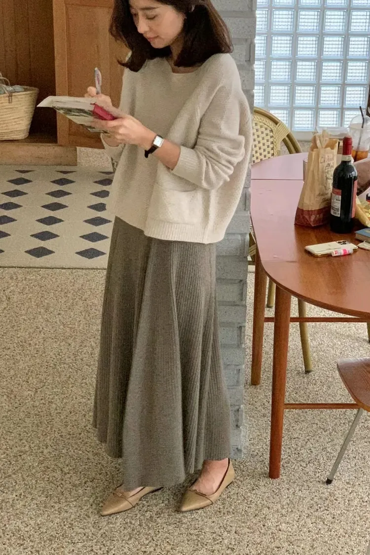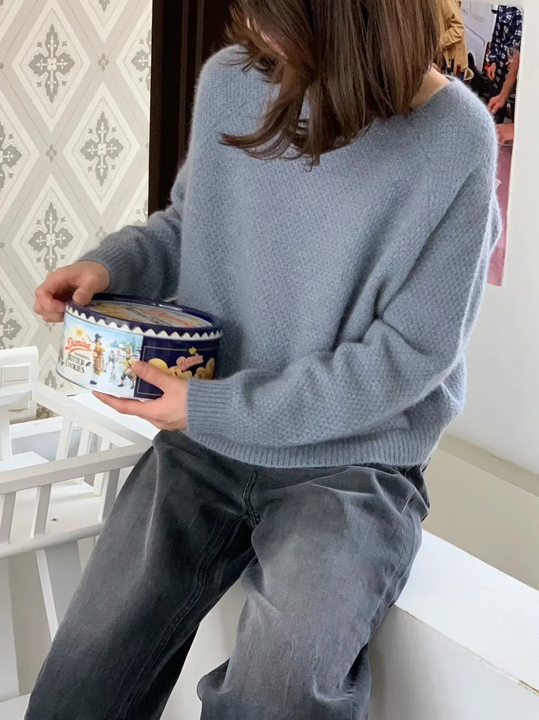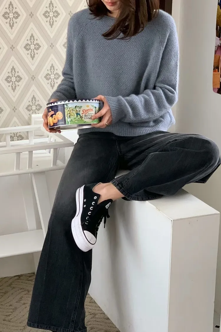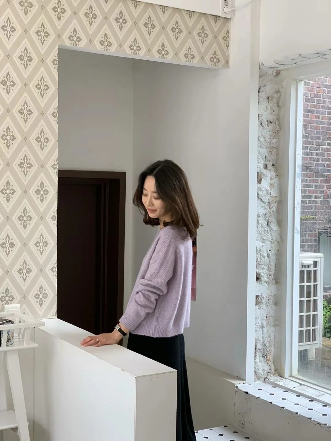 CS956單口袋質感寬圓領針織衫 米 紫 藍 線上價$1300 官網價$1330