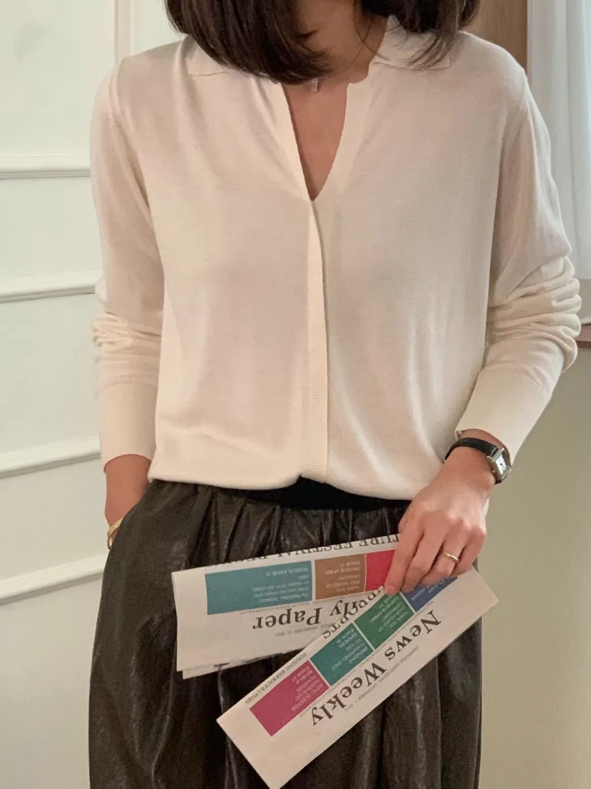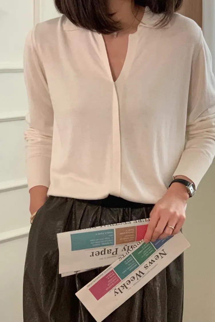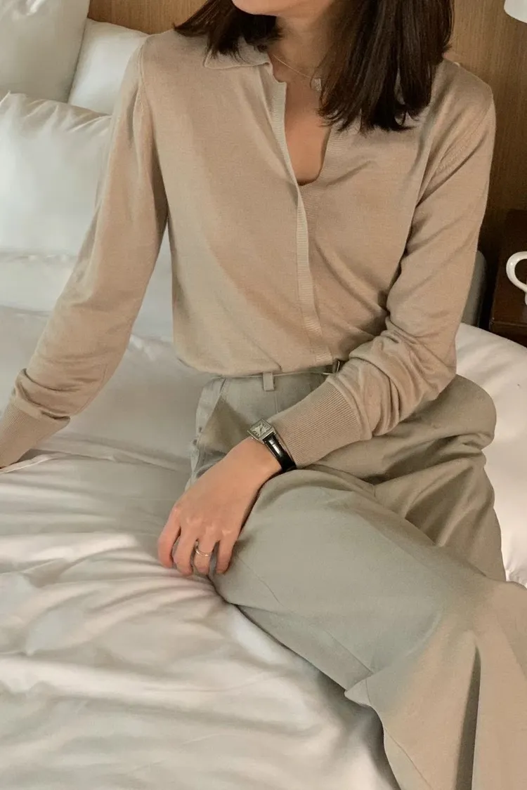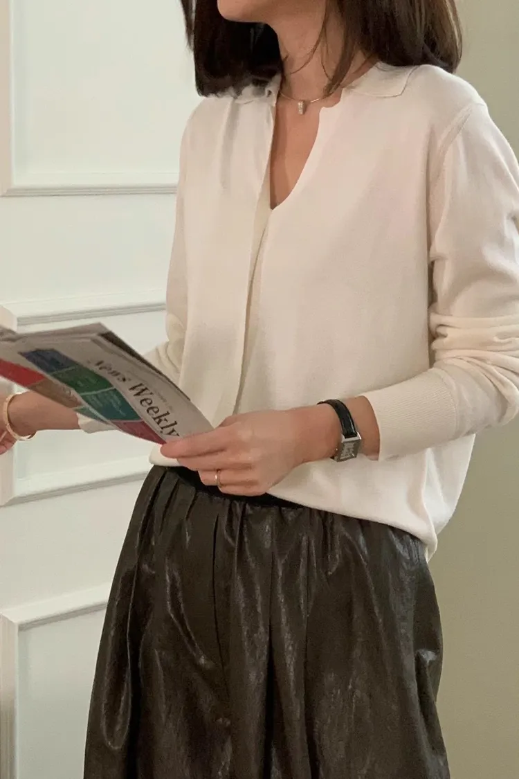 CS958推薦款輕盈薄款V領開襟氣質上衣 白 奶茶 黑 線上價$1060 官網價$1090