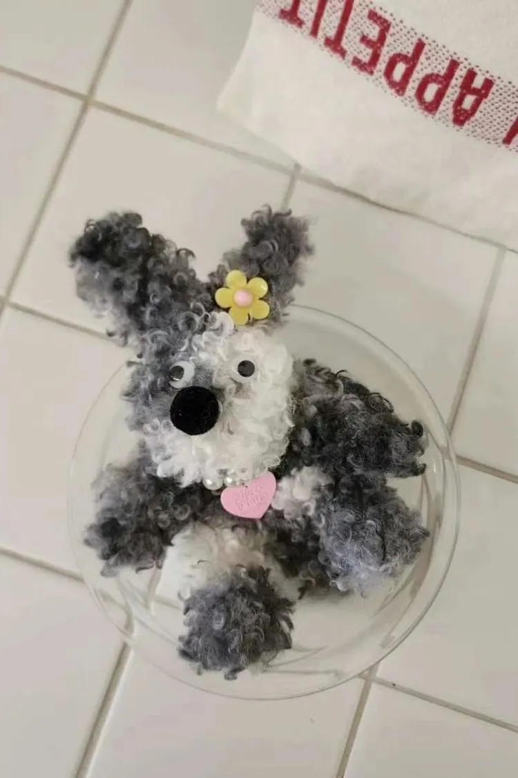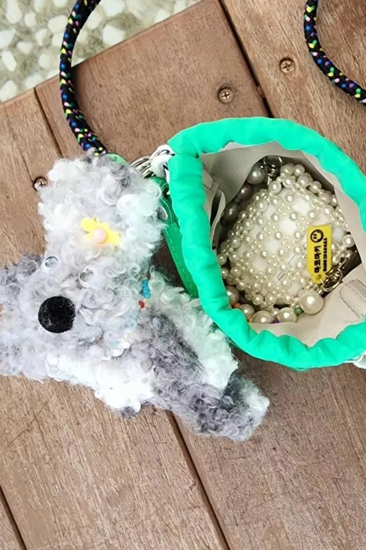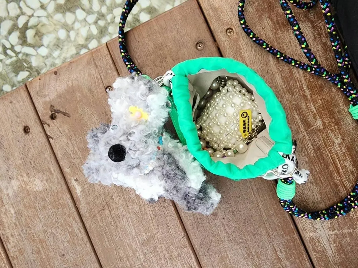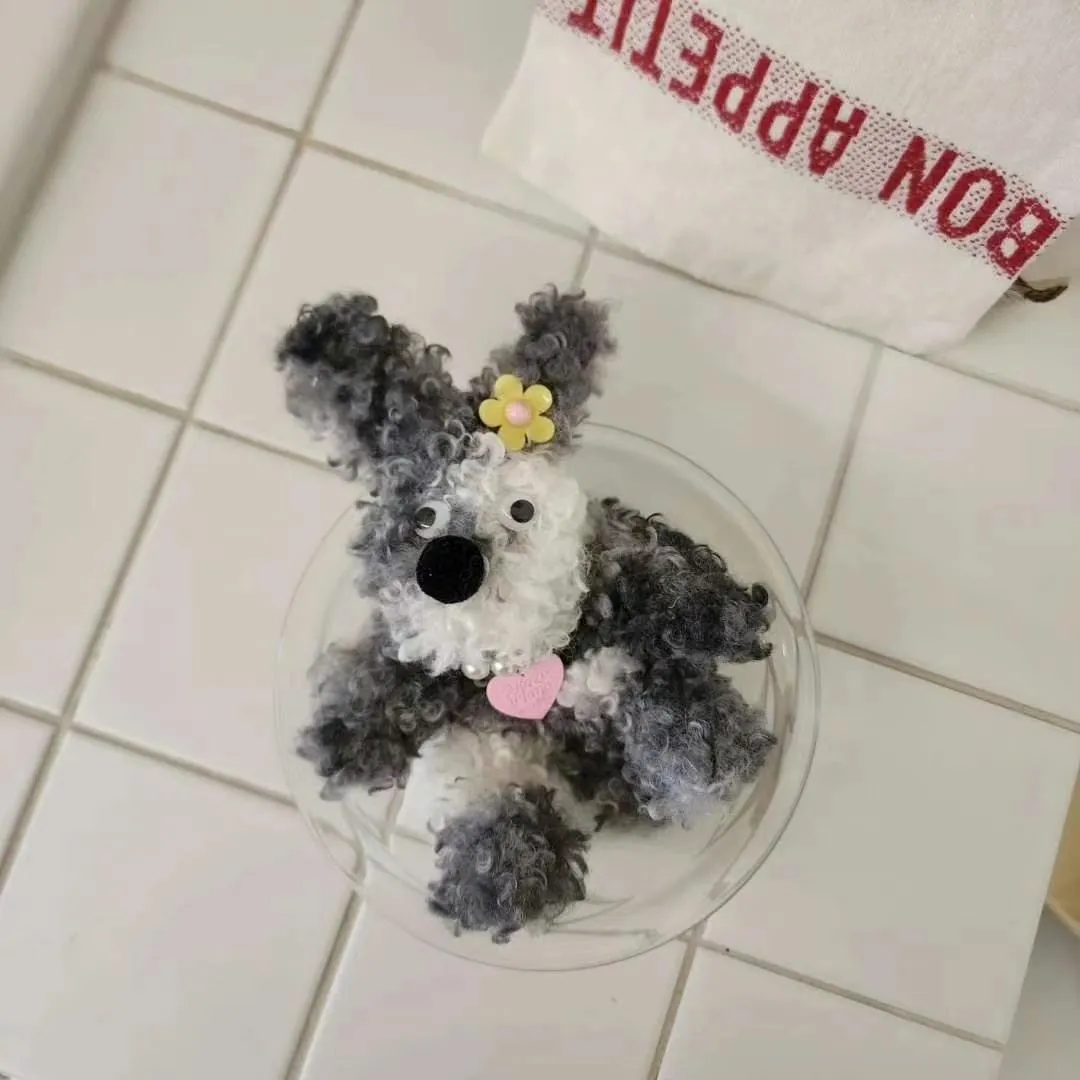 可愛整陀都是捲捲毛 裡面沒有棉花 有細鐵絲 有可愛珍珠項圈