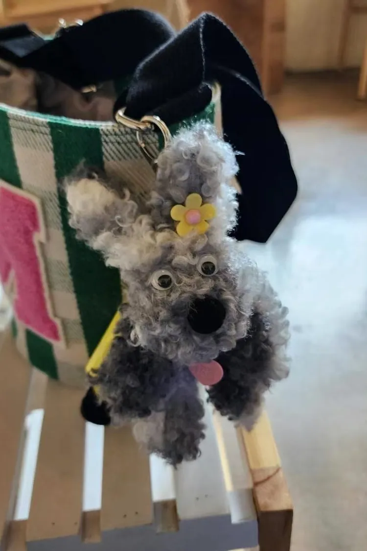 毛料是灰與白混色,為手工製作因此每款成色不同唷